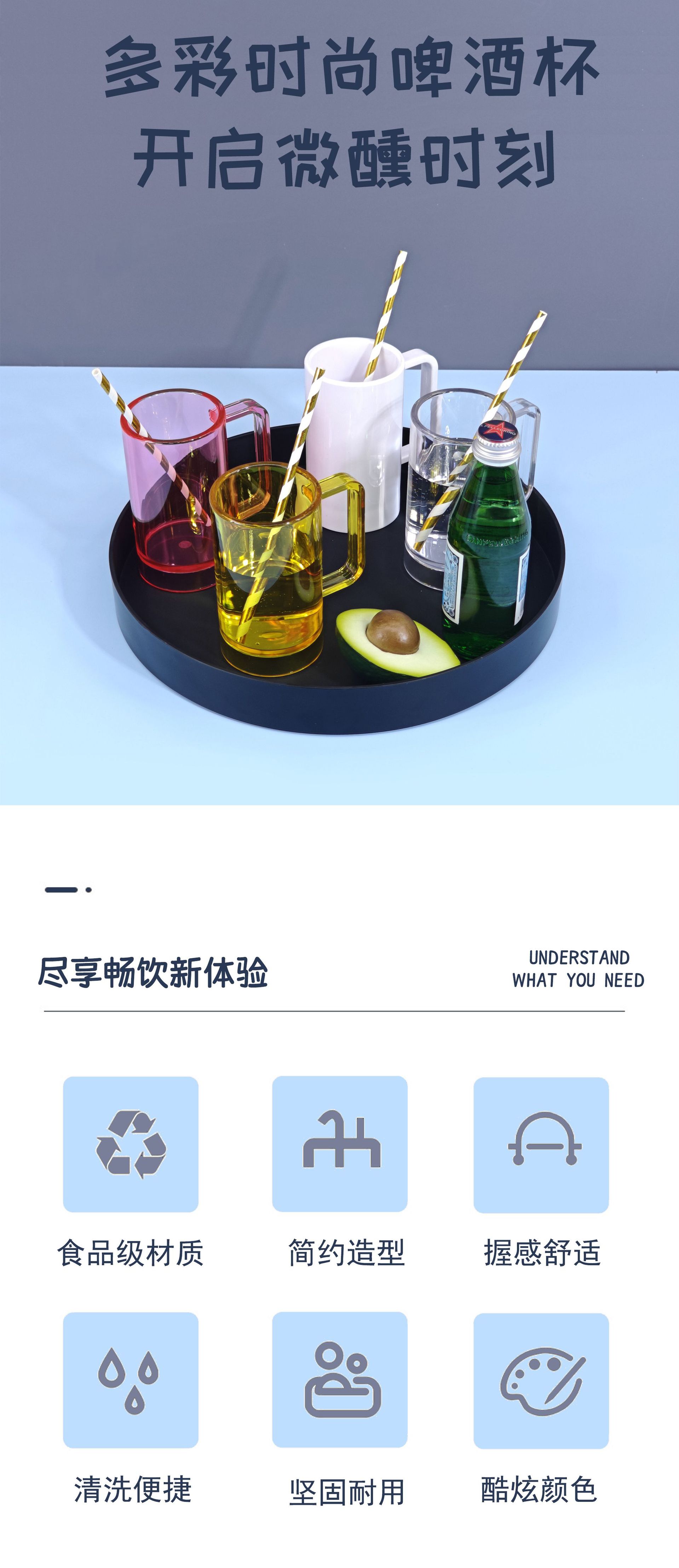 Vaso de cerveza grueso personalizado Jingmao de gran capacidad y alto valor con asa de plástico PC acrílico taza de bar transparente