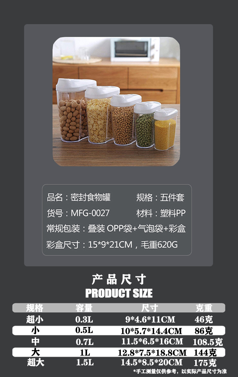 Plástico sellado tarro de granos tarro snack tuerca especias café tarro hogar transparente cocina granos caja de almacenamiento