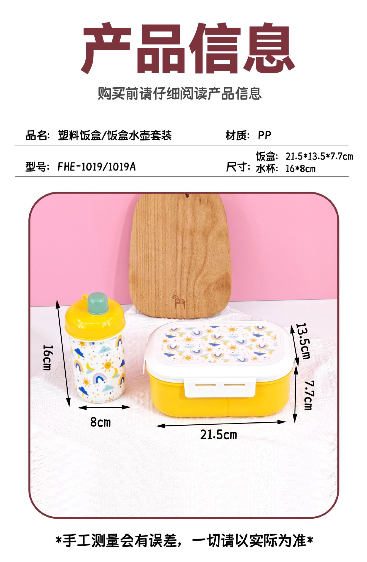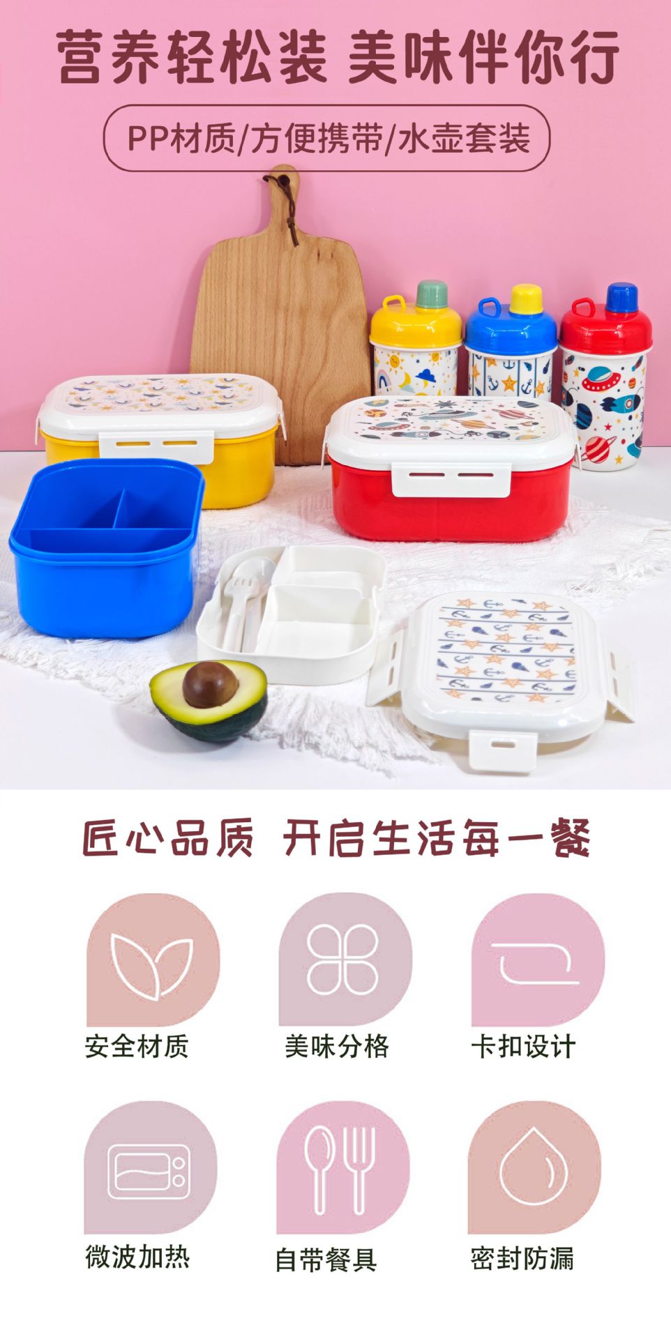 Hot sale de doble almuerzo de plástico hervidor conjunto de estudiantes y niños lindo caja de almuerzo portable taza de agua directa