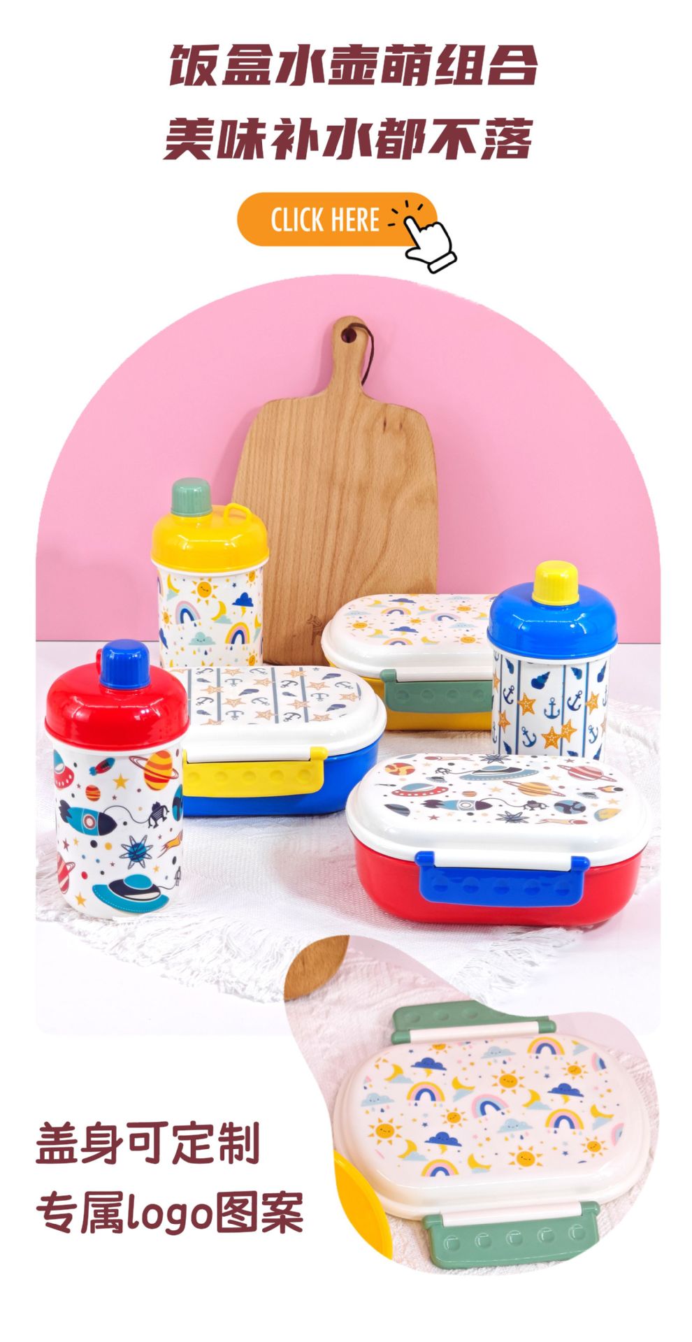 Postaje gratuito, caja de comidas, hervidor de agua, estudiantes y niños, dibujos animados lindos, caja de comidas portátil, tazas de agua potable directas para el hogar