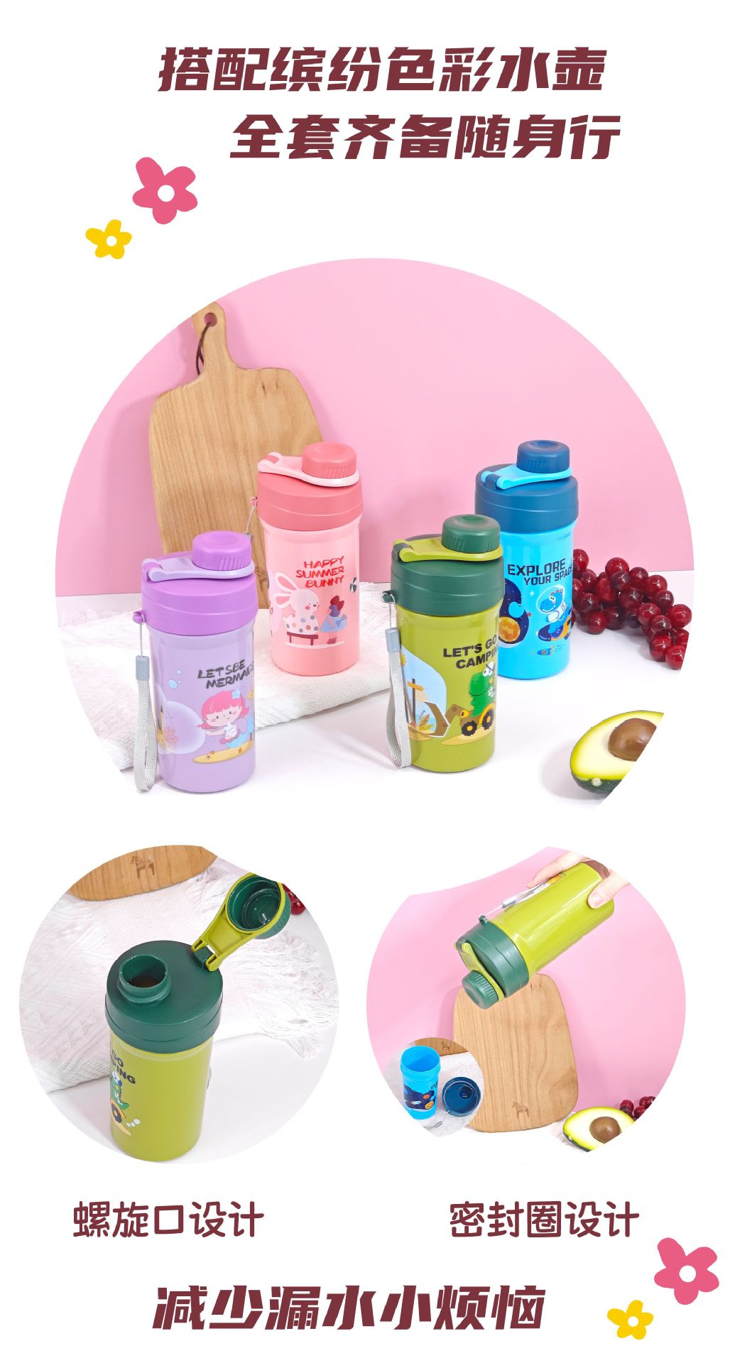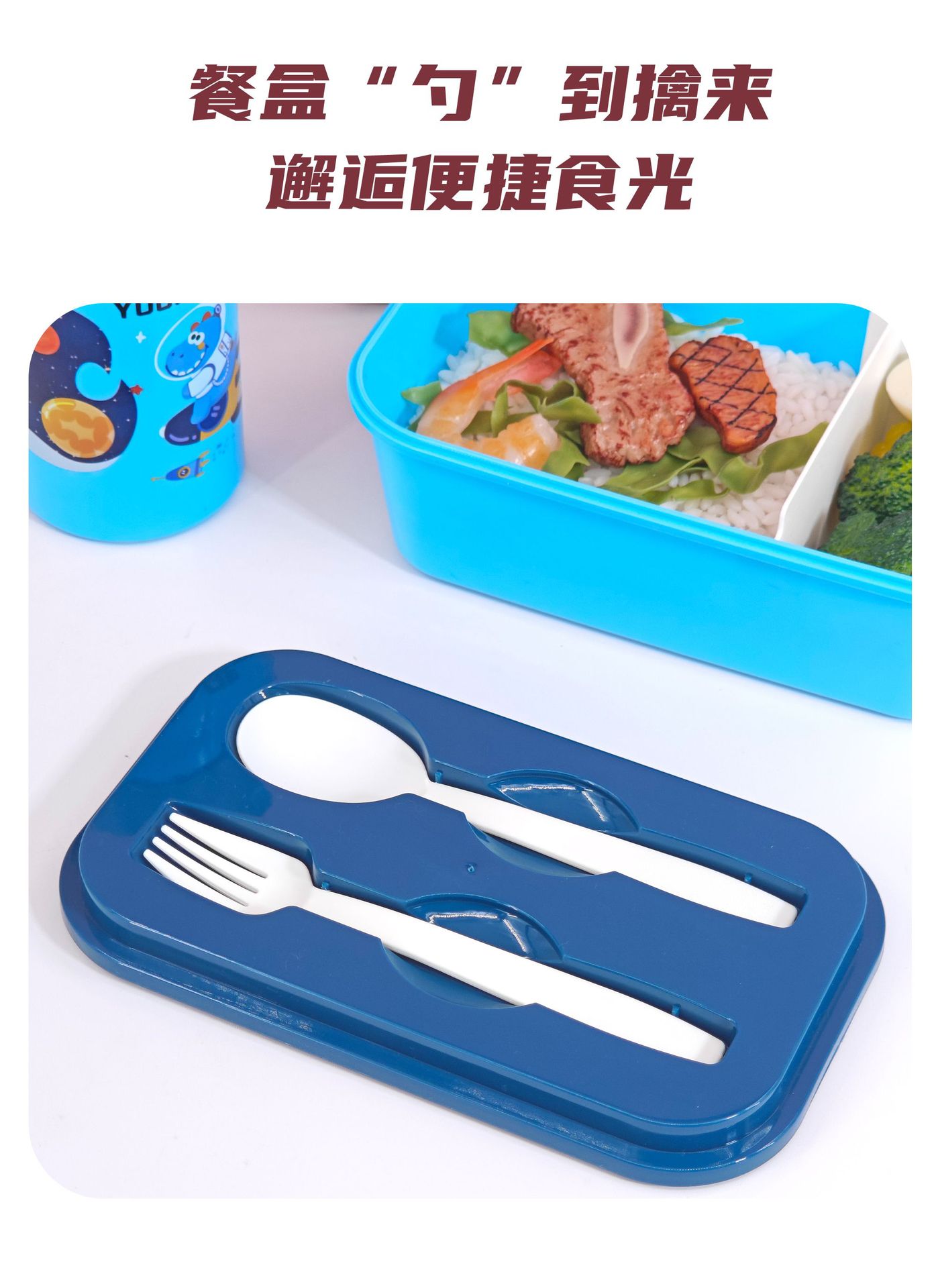Nuevos productos sin franqueo para niños caja de almuerzo set hervidor de agua escuela de dibujos animados de plástico caja de almuerzo portátil de doble capa caja de almuerzo
