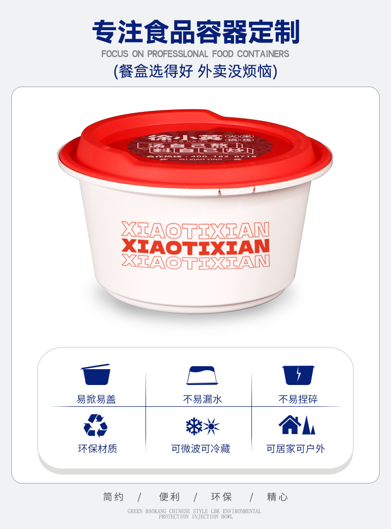 Lvbaokang caja de embalaje desechable tazón hebilla antirrobo lonchera caja de plástico gruesa redonda para llevar con tapa al por mayor