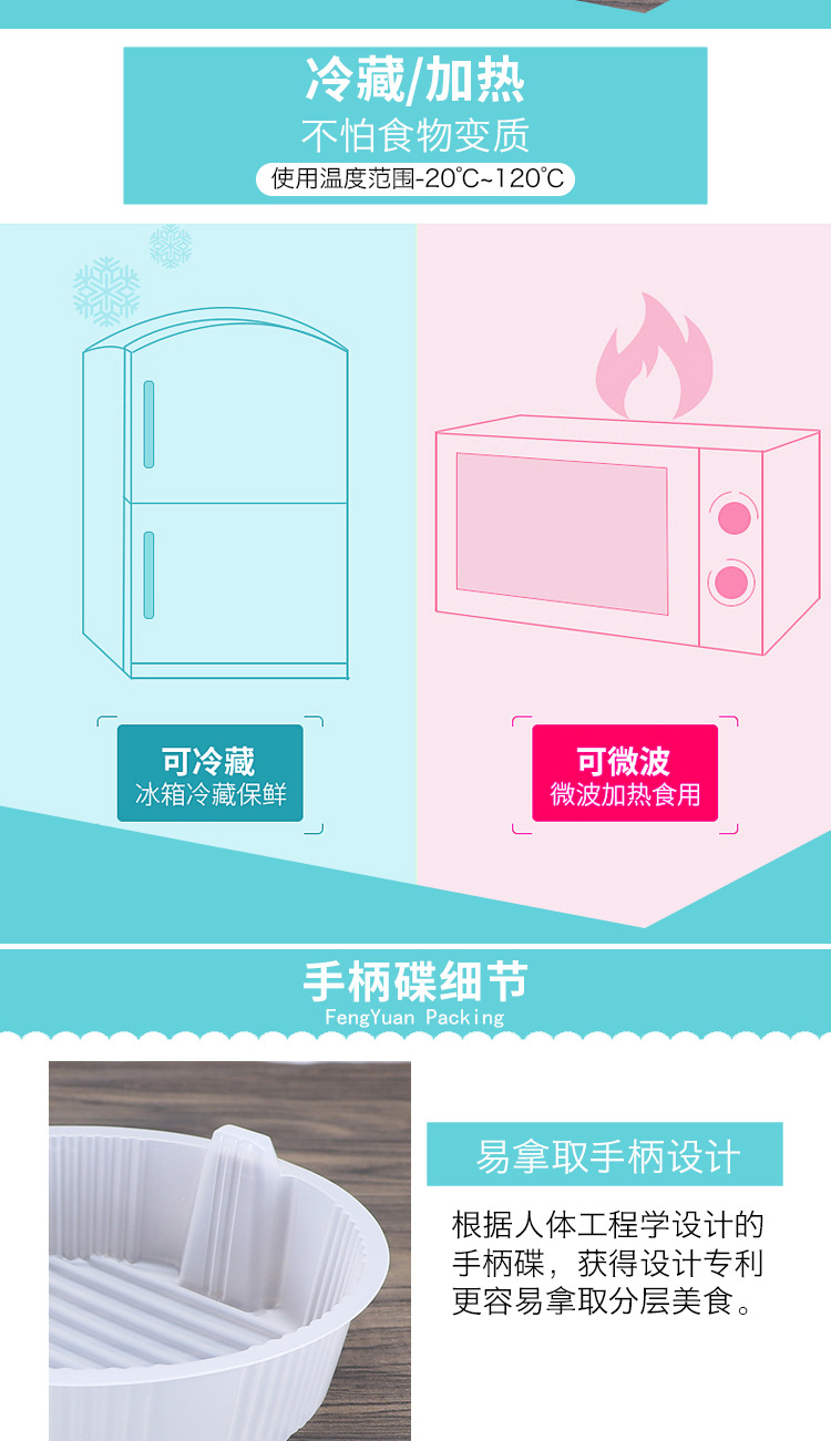 Fábrica de calibre 178 compartimiento de plástico desechable doble rejilla bandeja interior comida sopa polvo superficie separada plato interior