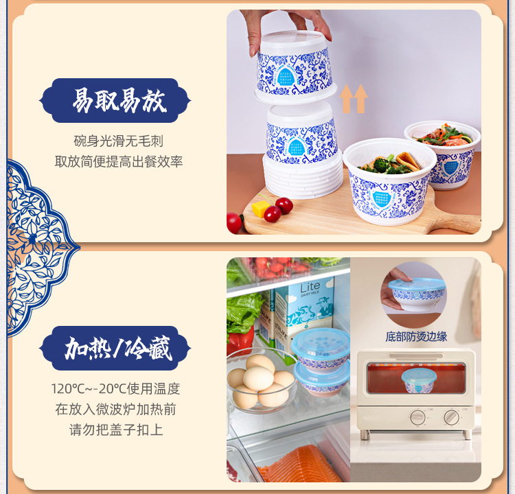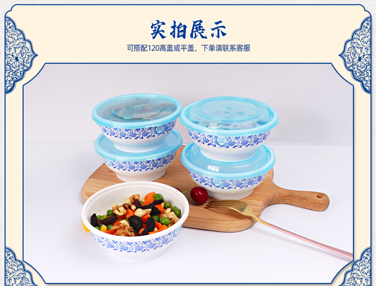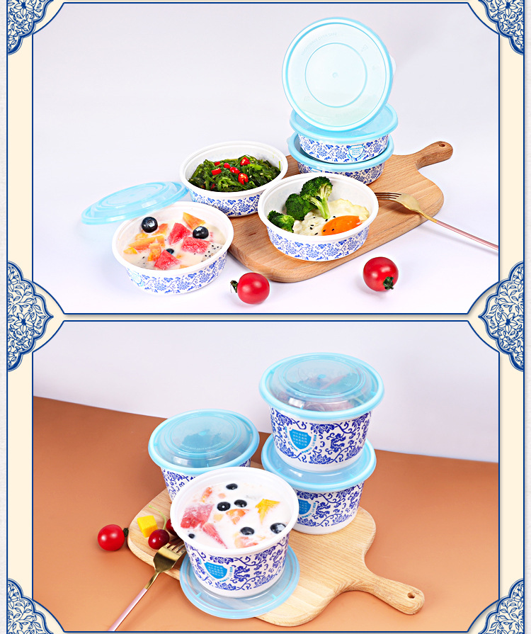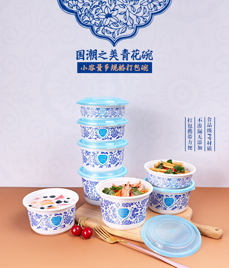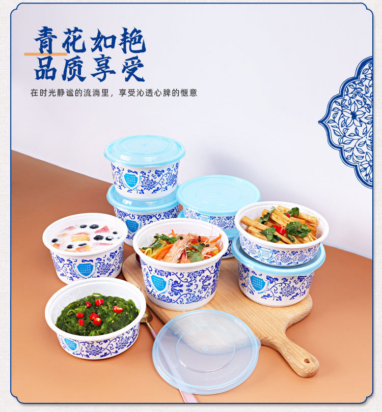 Caja de comida rápida desechable de plástico grueso para llevar paquete tazón redondo bento picante con tapa caja de arroz caliente para microondas
