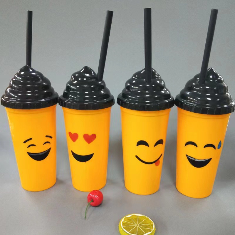 Dibujos animados creativos transfronterizos linda cara sonriente en forma de helado taza de plástico recto pajita desechable bebida botella de té con leche