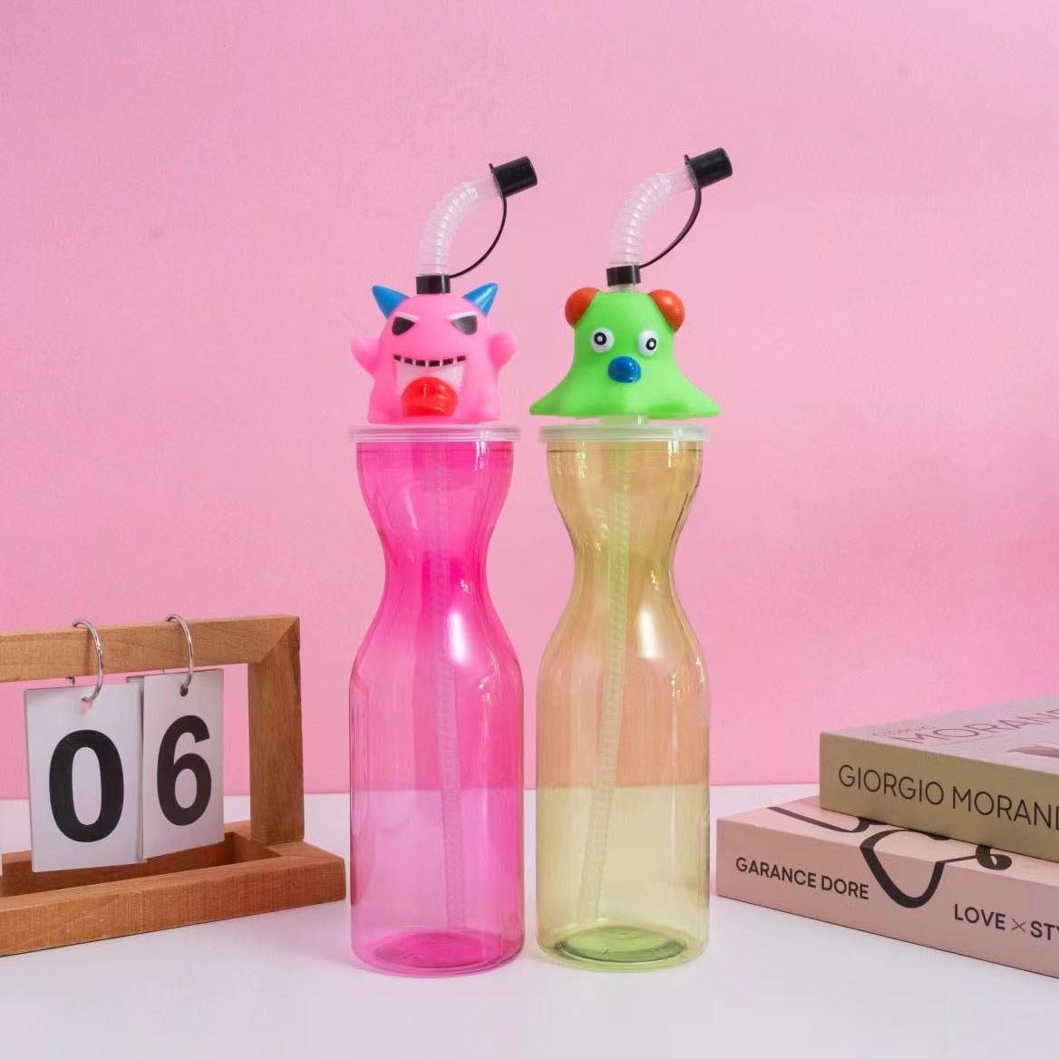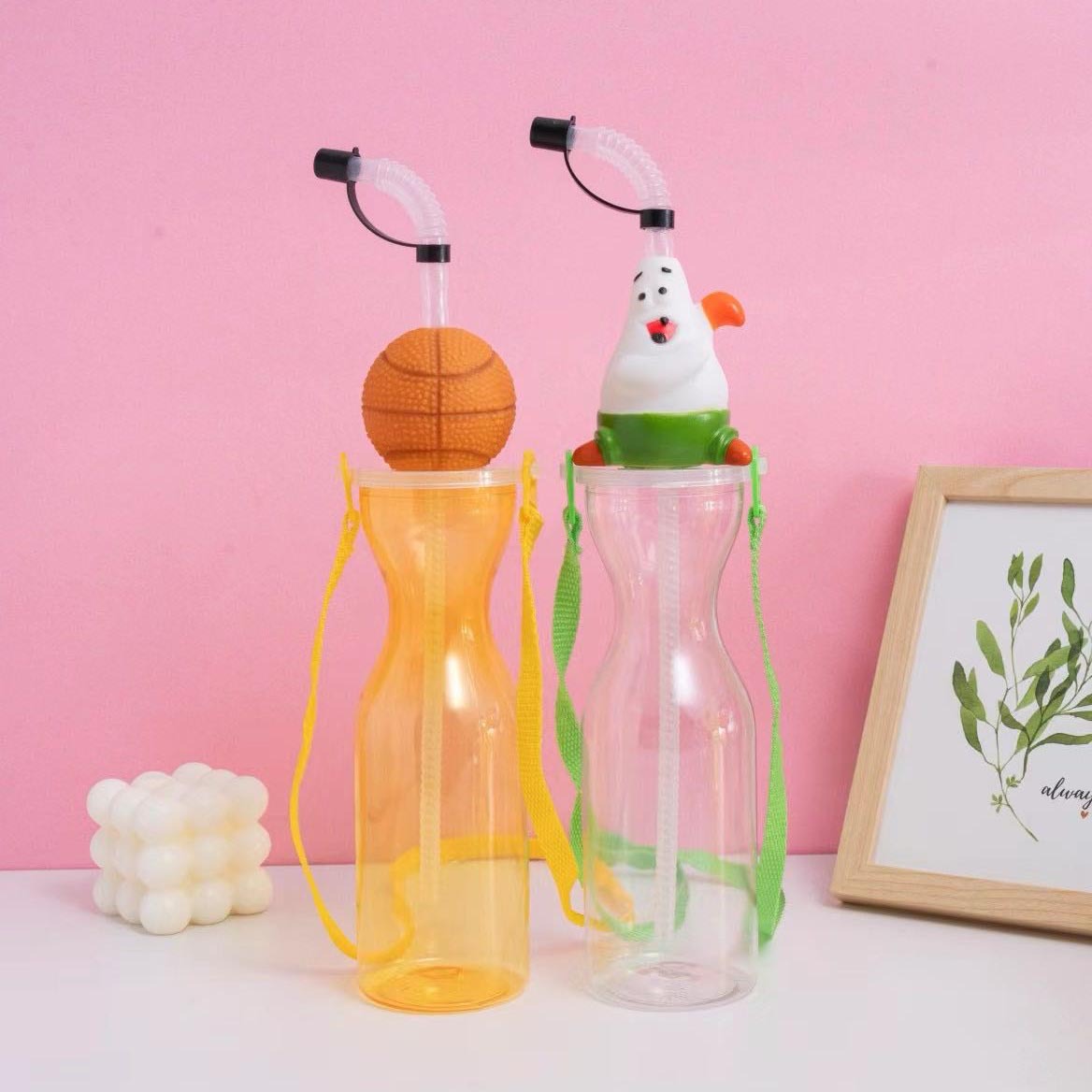 Fábrica directa de dibujos animados 450ml taza de agua taza de té de leche roja taza de jugo con cuerdas taza de agua de plástico