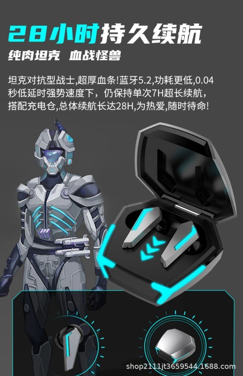 auriculares bluetooth de juegos de deportes electrónicos sin retraso de alta calidad de sonido de pollo ancla en el oído tipo de audición de posición de alta duración de la batería