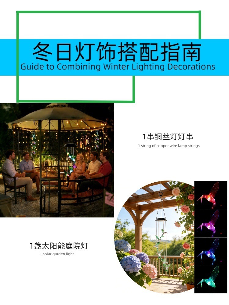 Lámpara solar transfronteriza campana de viento exterior lámpara de campo lámpara de luz LED interior y exterior luz de atmósfera de alta potencia