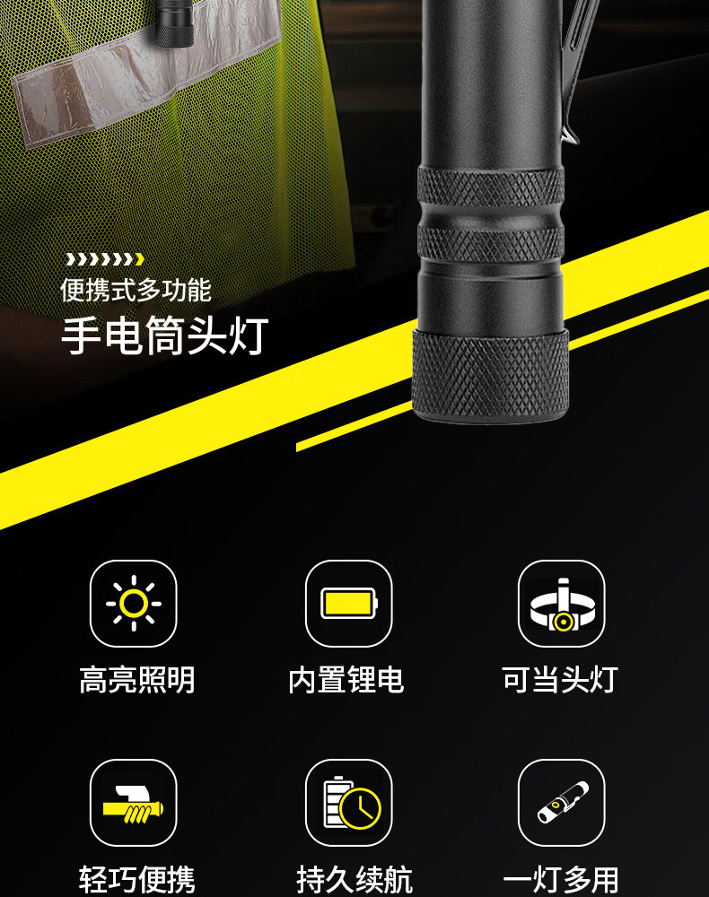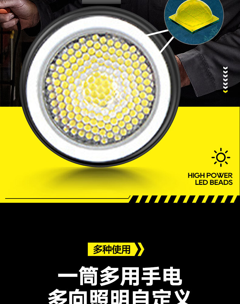 Luz intensa P50 iluminación LED portátil multifuncional linterna faro doble carga de batería incorporada larga duración