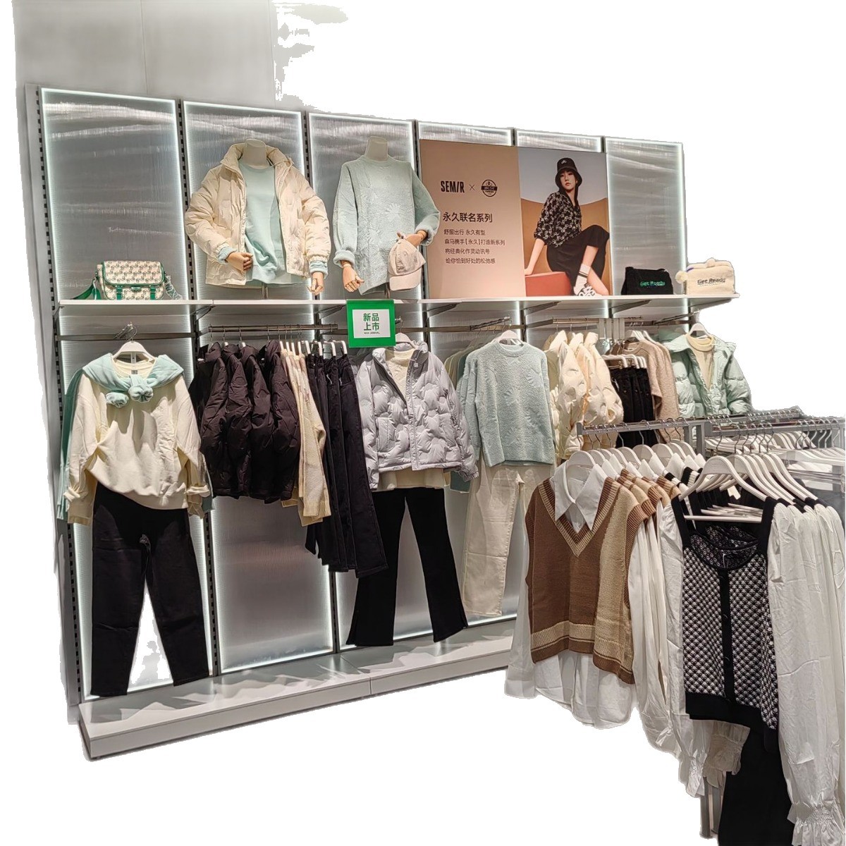 Tienda de descuento de marca estante de exhibición de ropa personalizado estante de ropa de hombre estante de exhibición de tiendas de ropa de piso multicapa