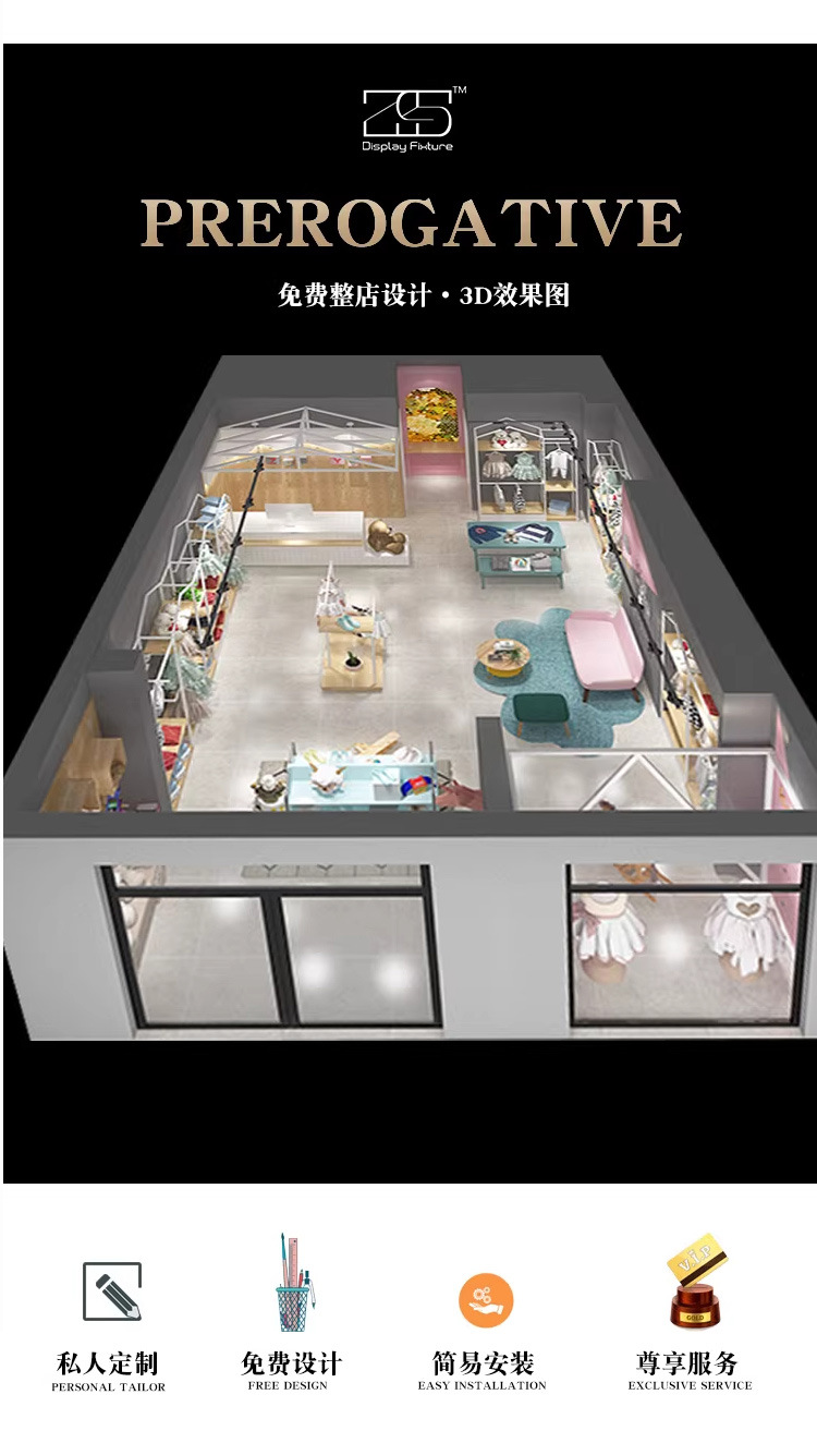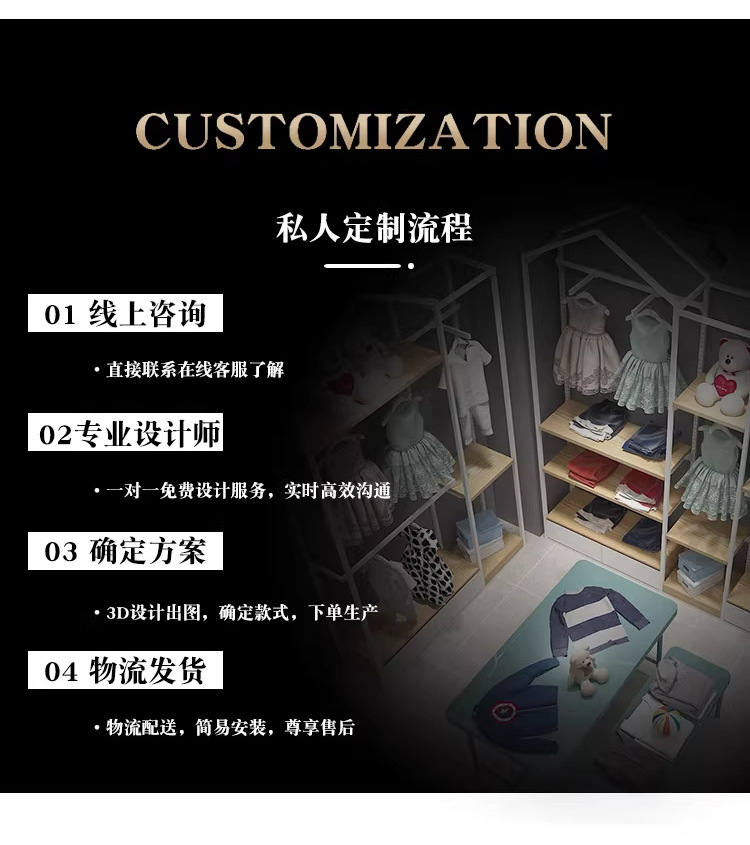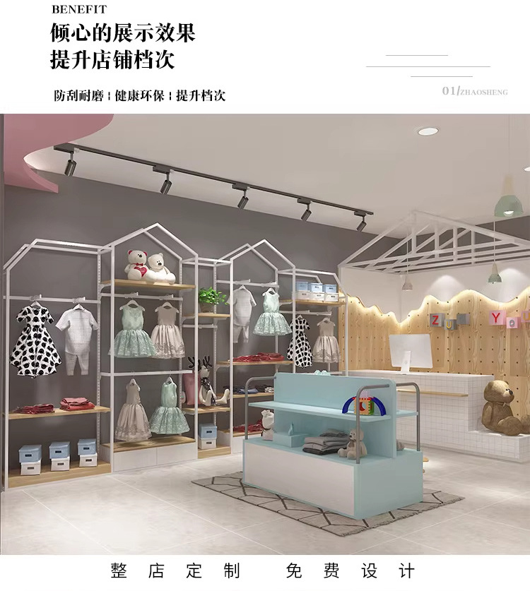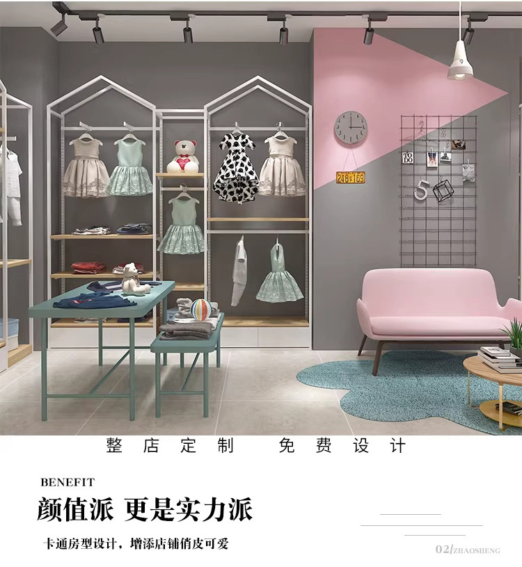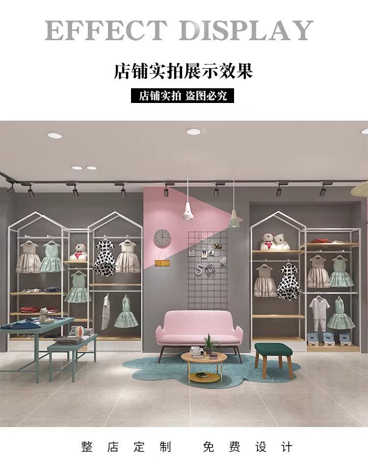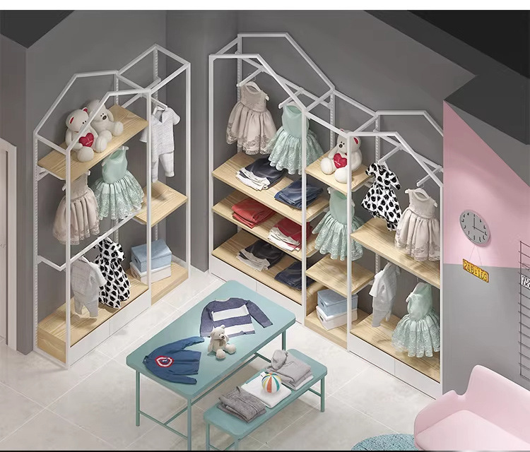 Estante de exhibición de la tienda de ropa para niños Tipo de habitación Estante de ropa de piso a techo Estante de exhibición de la tienda de ropa para niños Estante de exhibición de perchas de la tienda de ropa para niños
