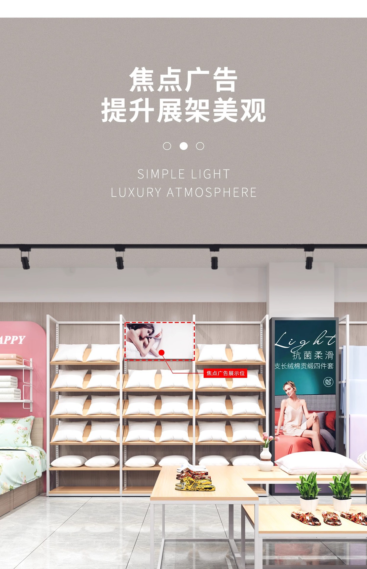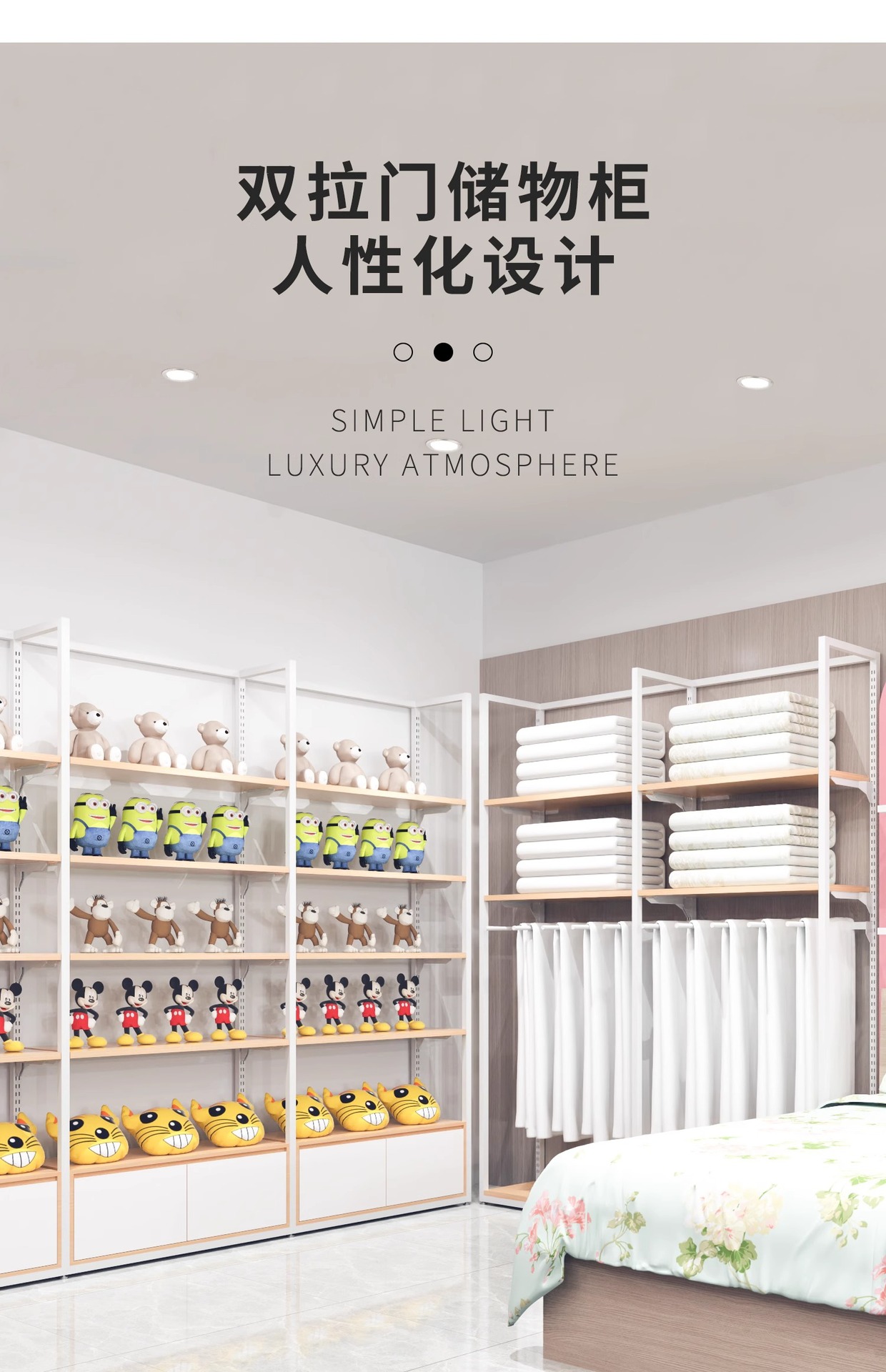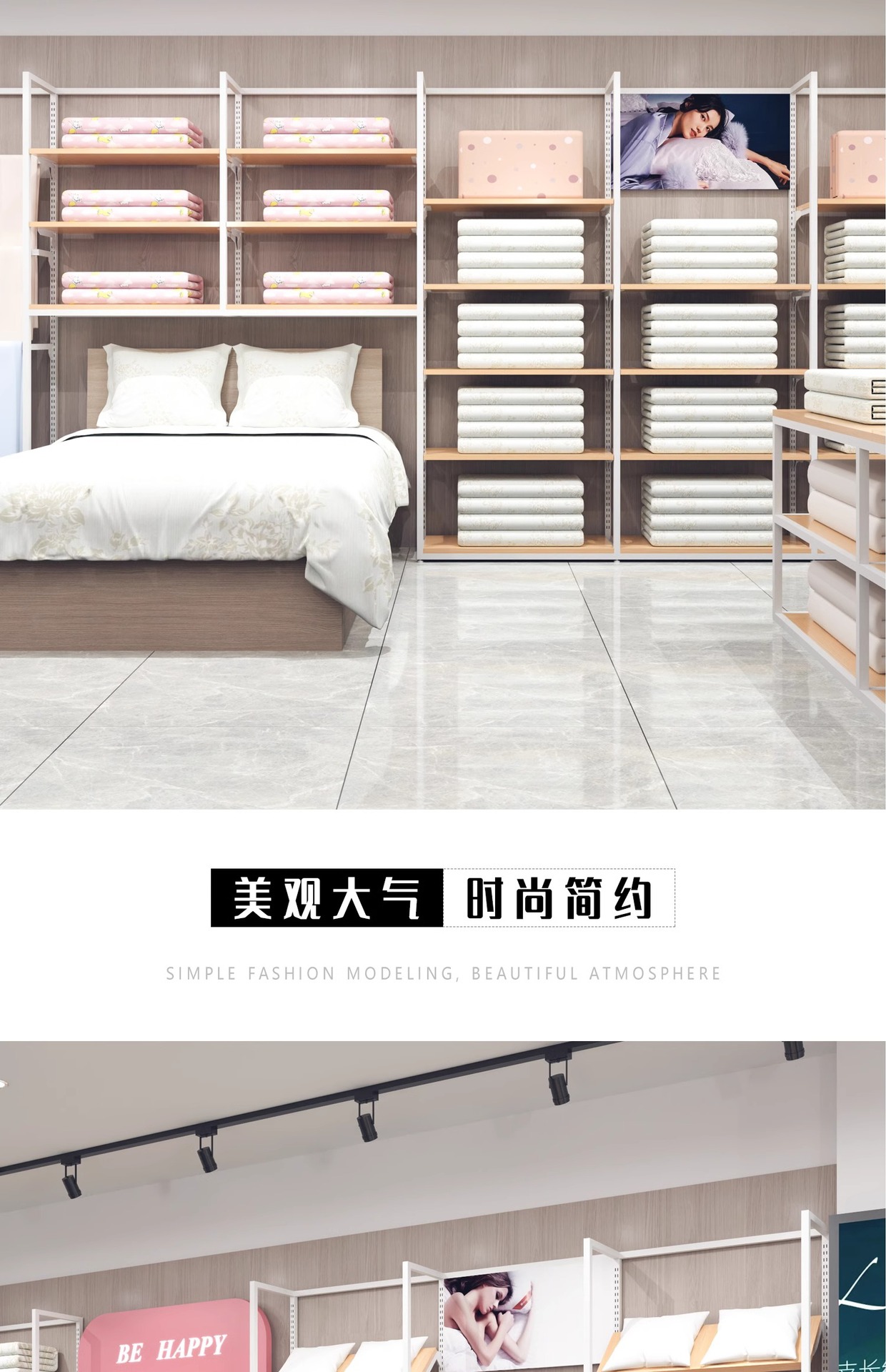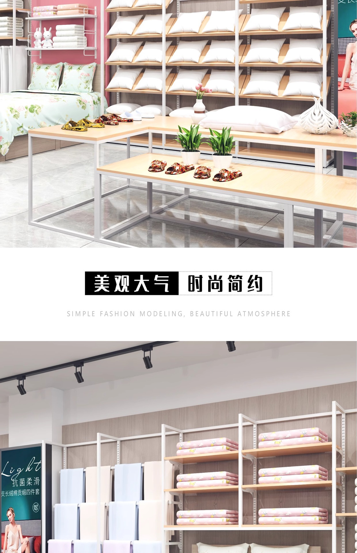 Estante de tienda textil casera almohada edredón estante de exhibición de cuatro piezas conjunto de ropa de cama pijamas estante de exhibición Gabinete