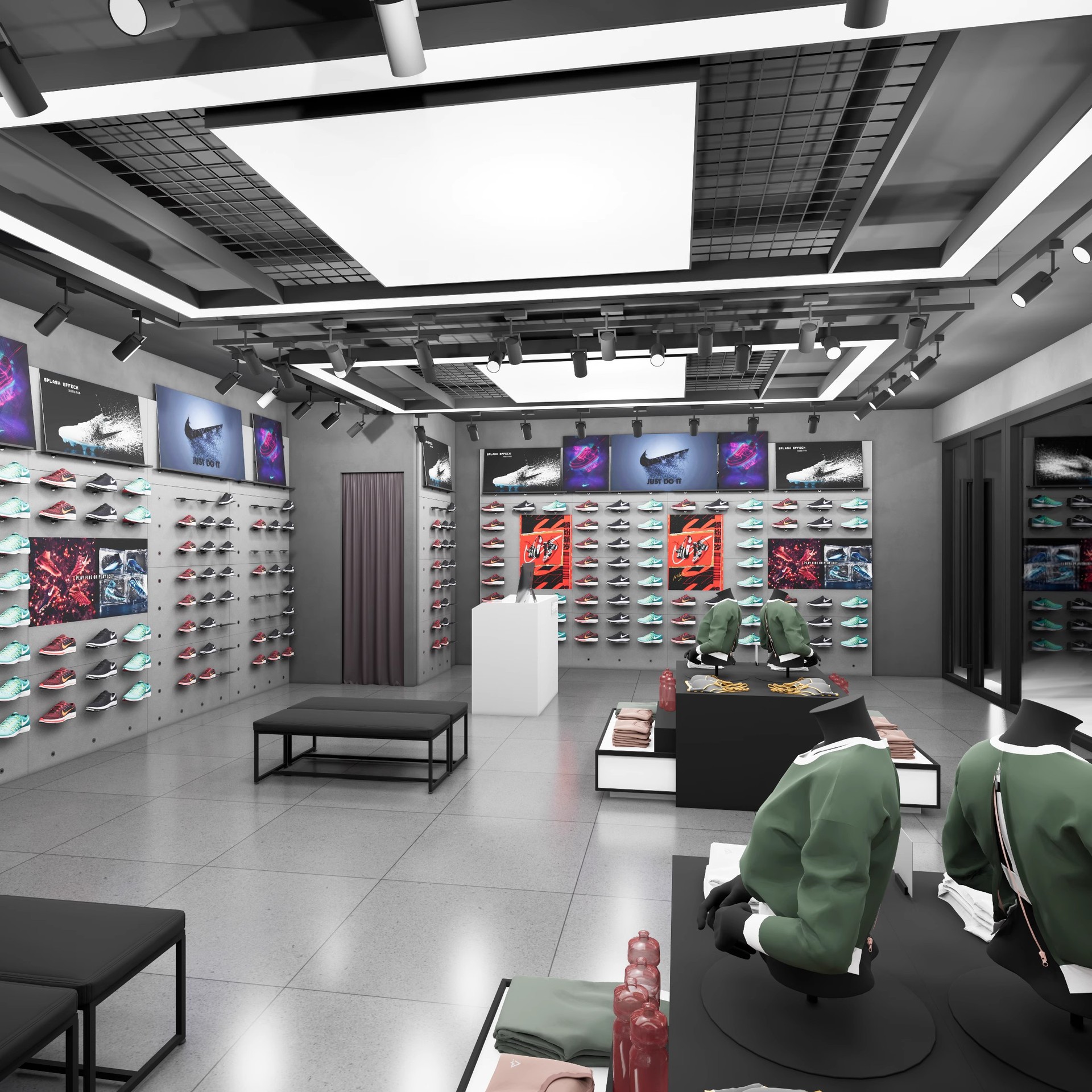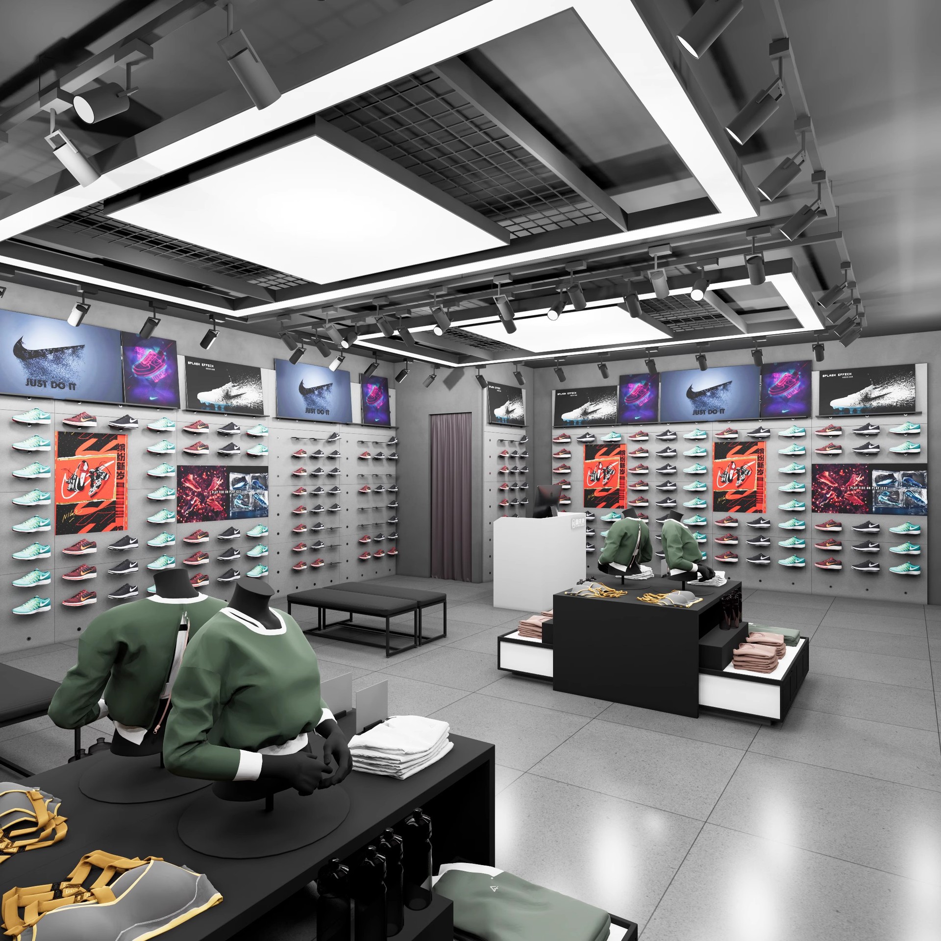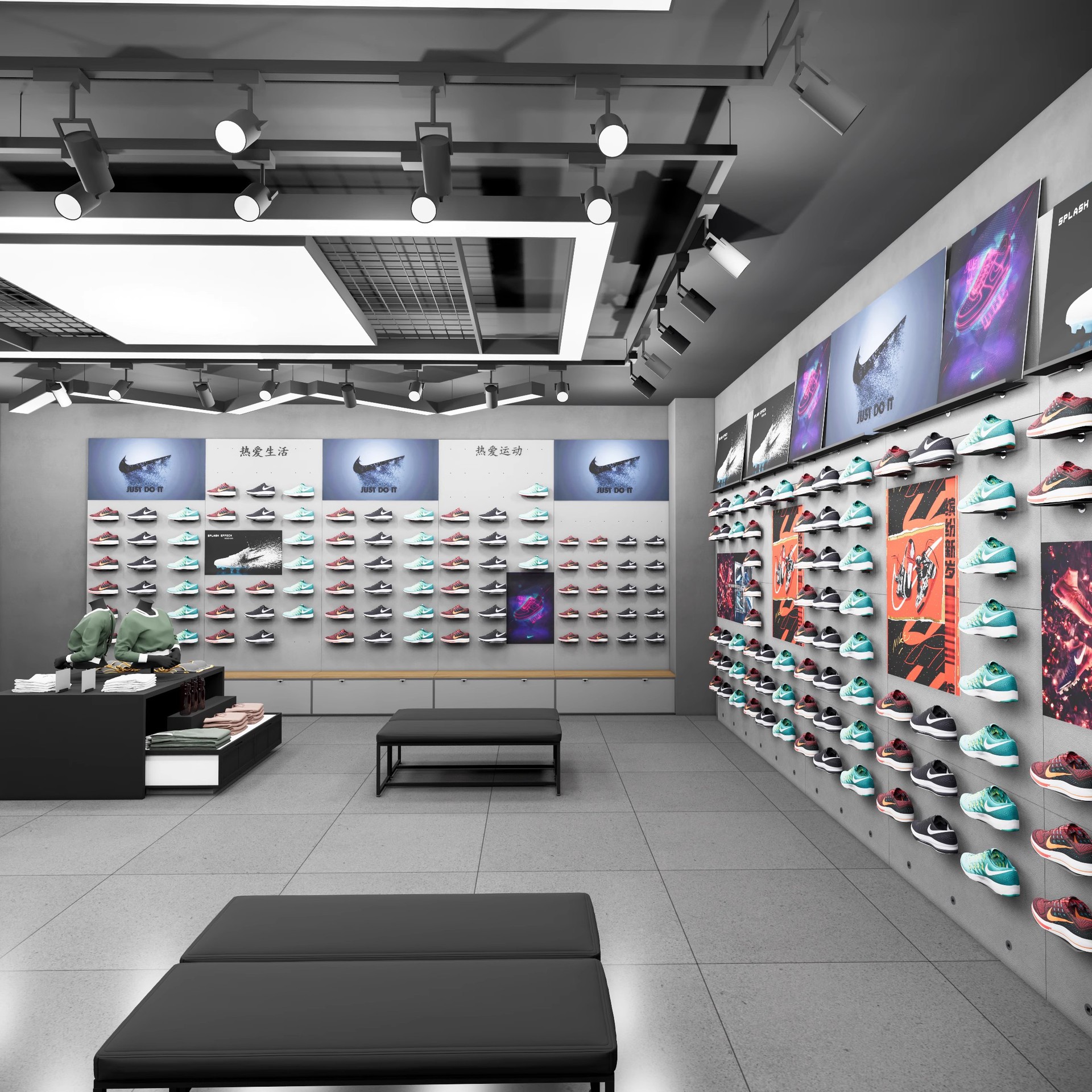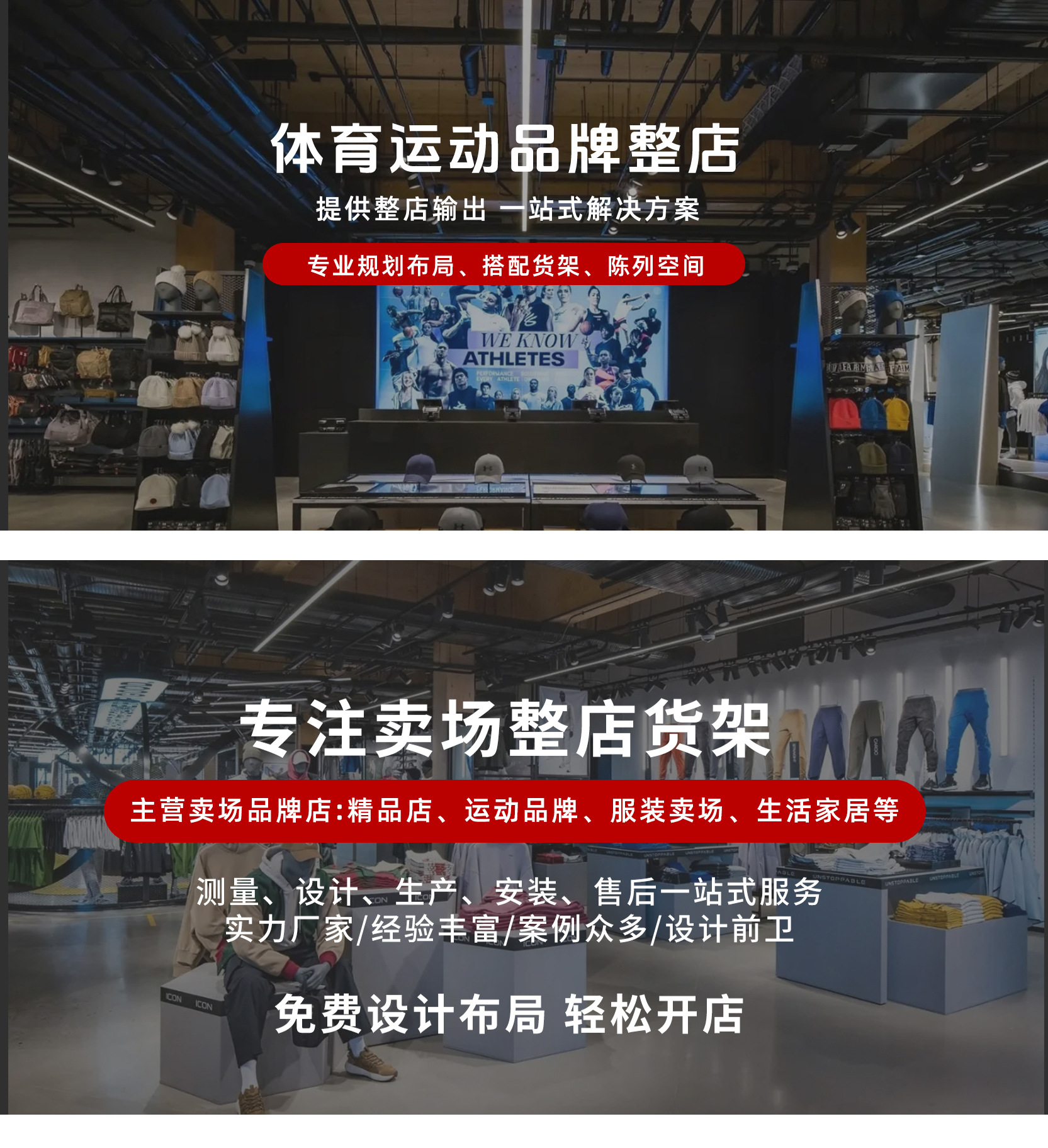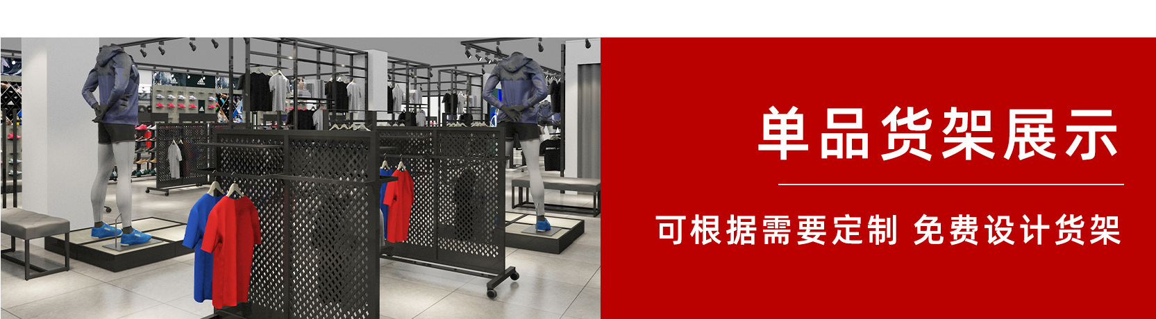 Estante de exhibición de marca deportiva transfronteriza tienda de ropa personalizada tienda de ropa de hombre marco de hierro estante de piso de pared grueso