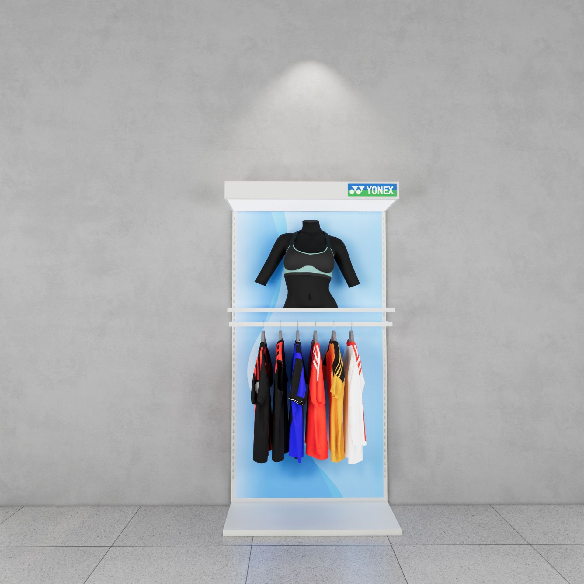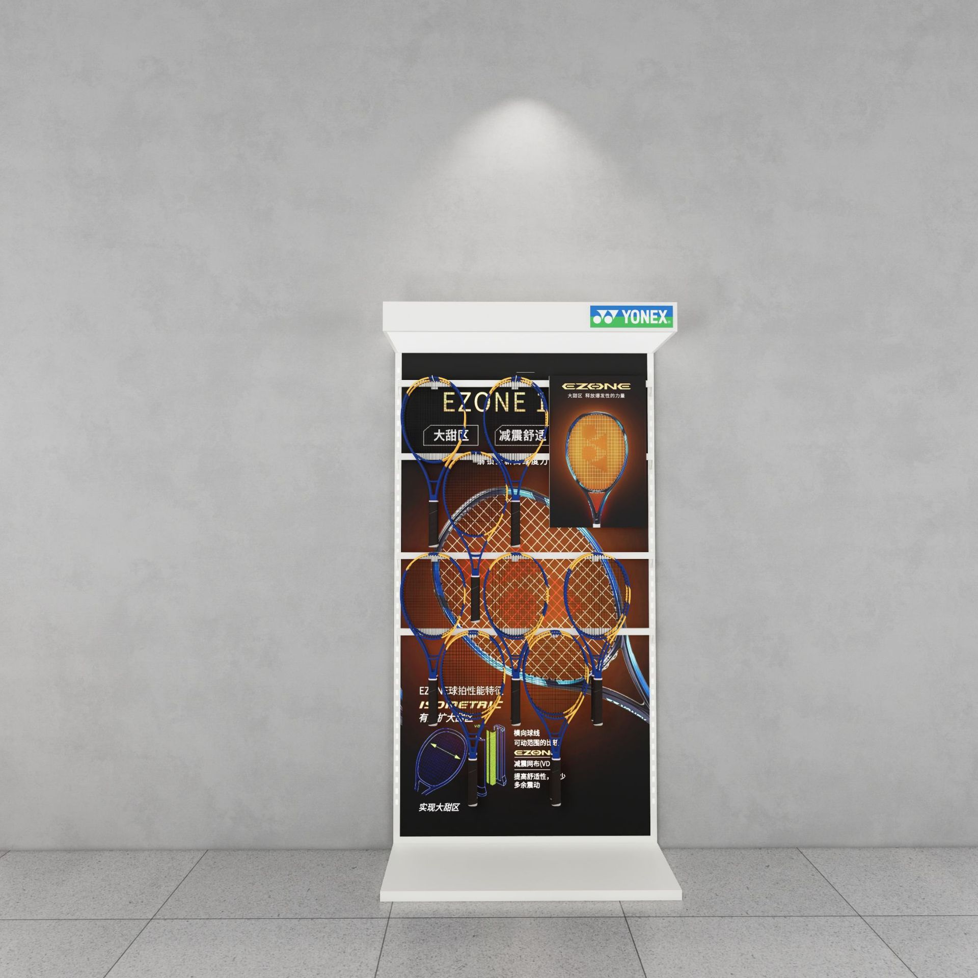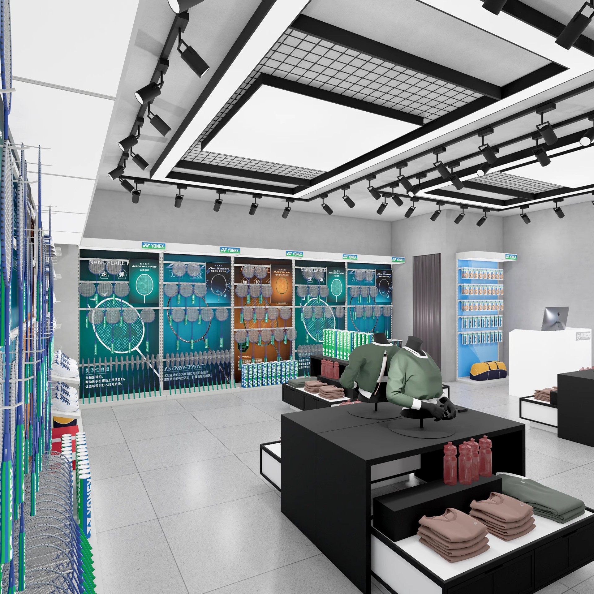 Rack de exhibición de artículos deportivos rack de exhibición de bádminton personalizado raqueta rack de isla rack de pared
