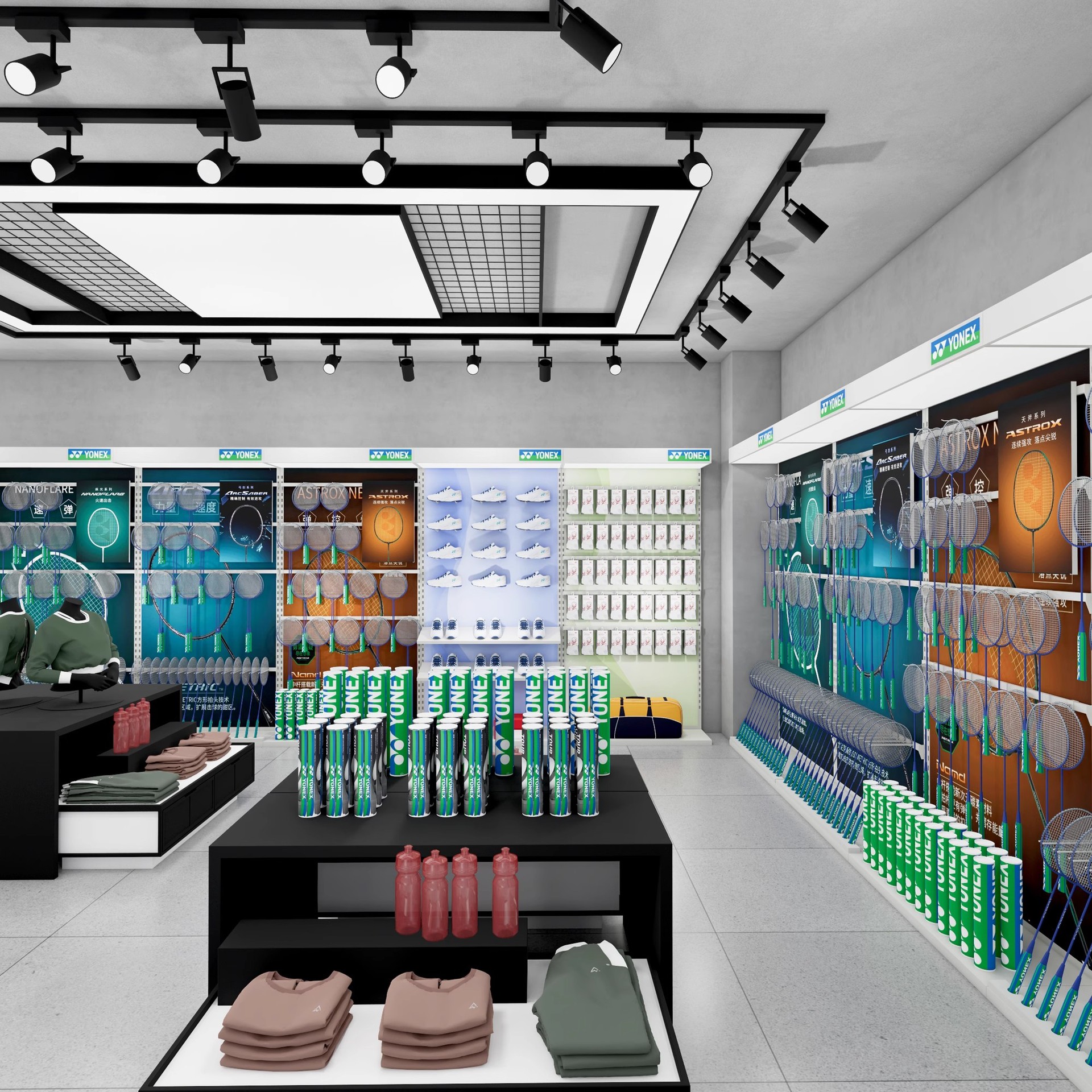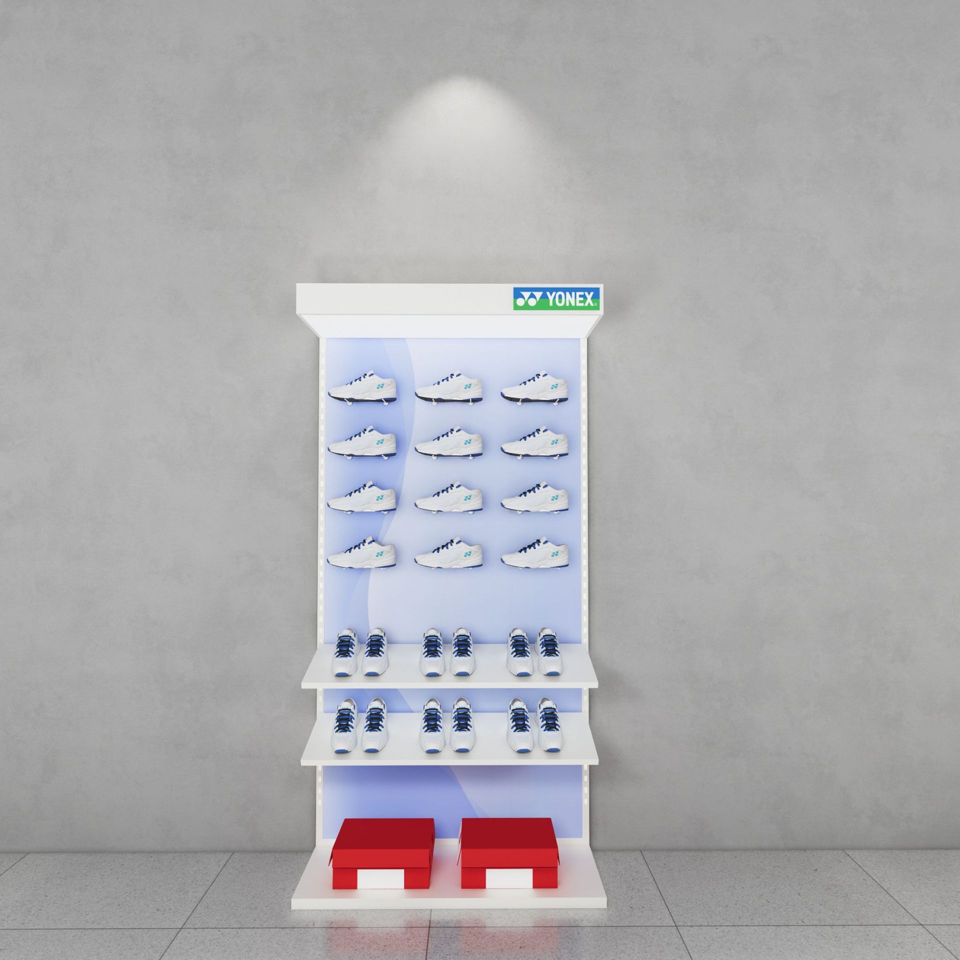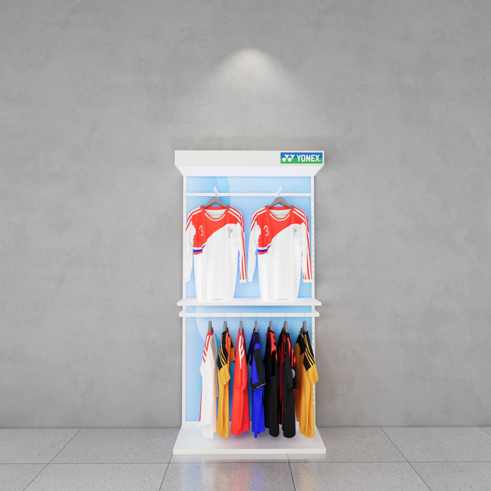 Rack de exhibición de artículos deportivos rack de exhibición de bádminton personalizado raqueta rack de isla rack de pared