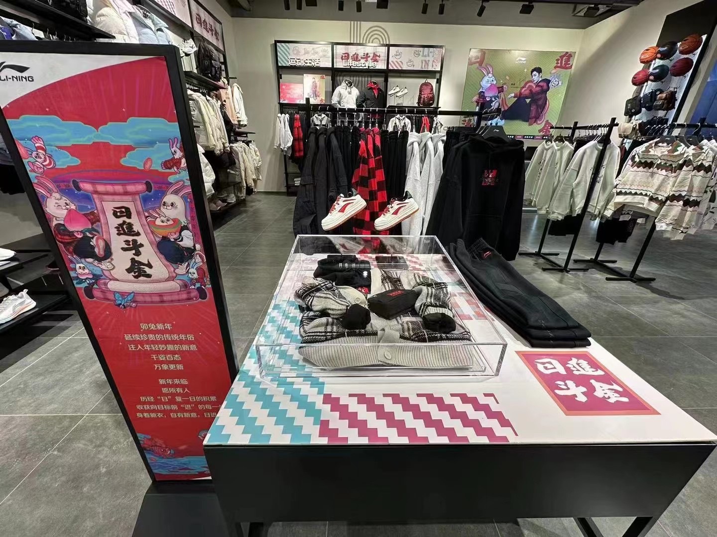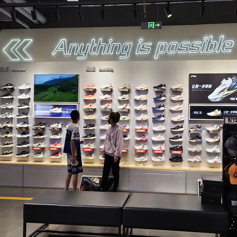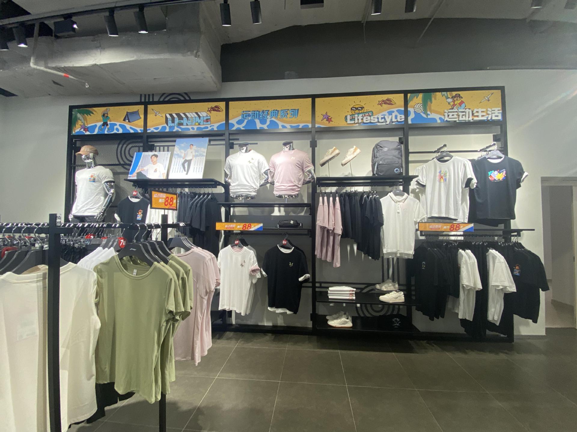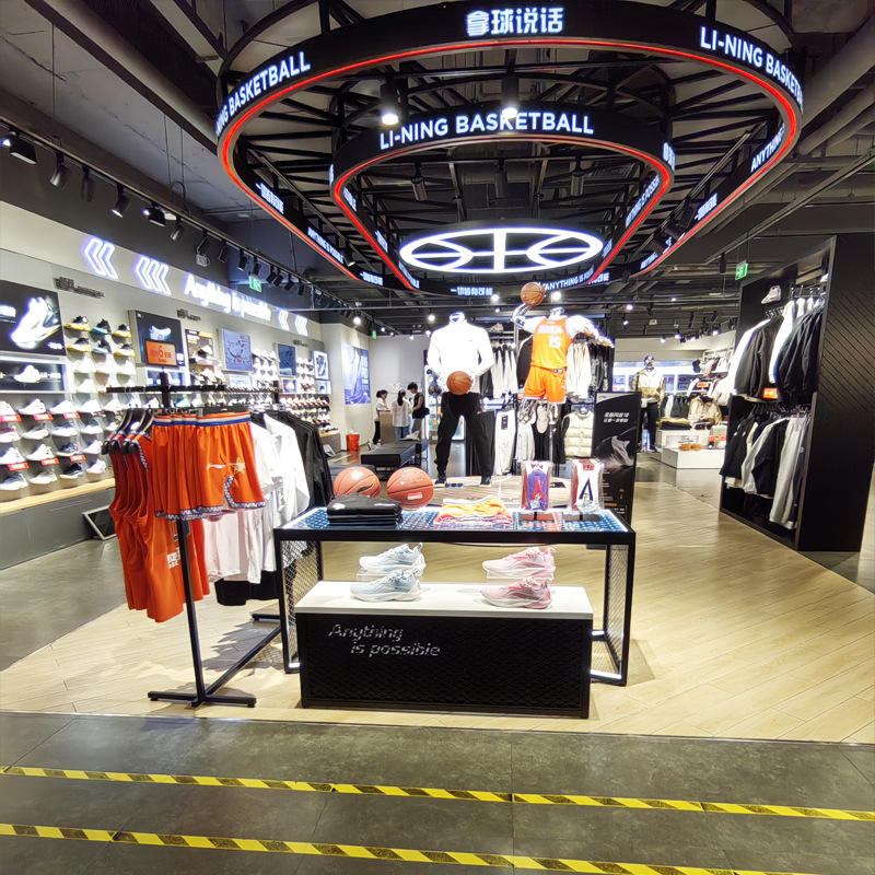 2025 nuevo estante de exhibición de tiendas de ropa deportiva estante de exhibición tienda de descuento centro comercial tipo piso de pared superior estante de doble capa