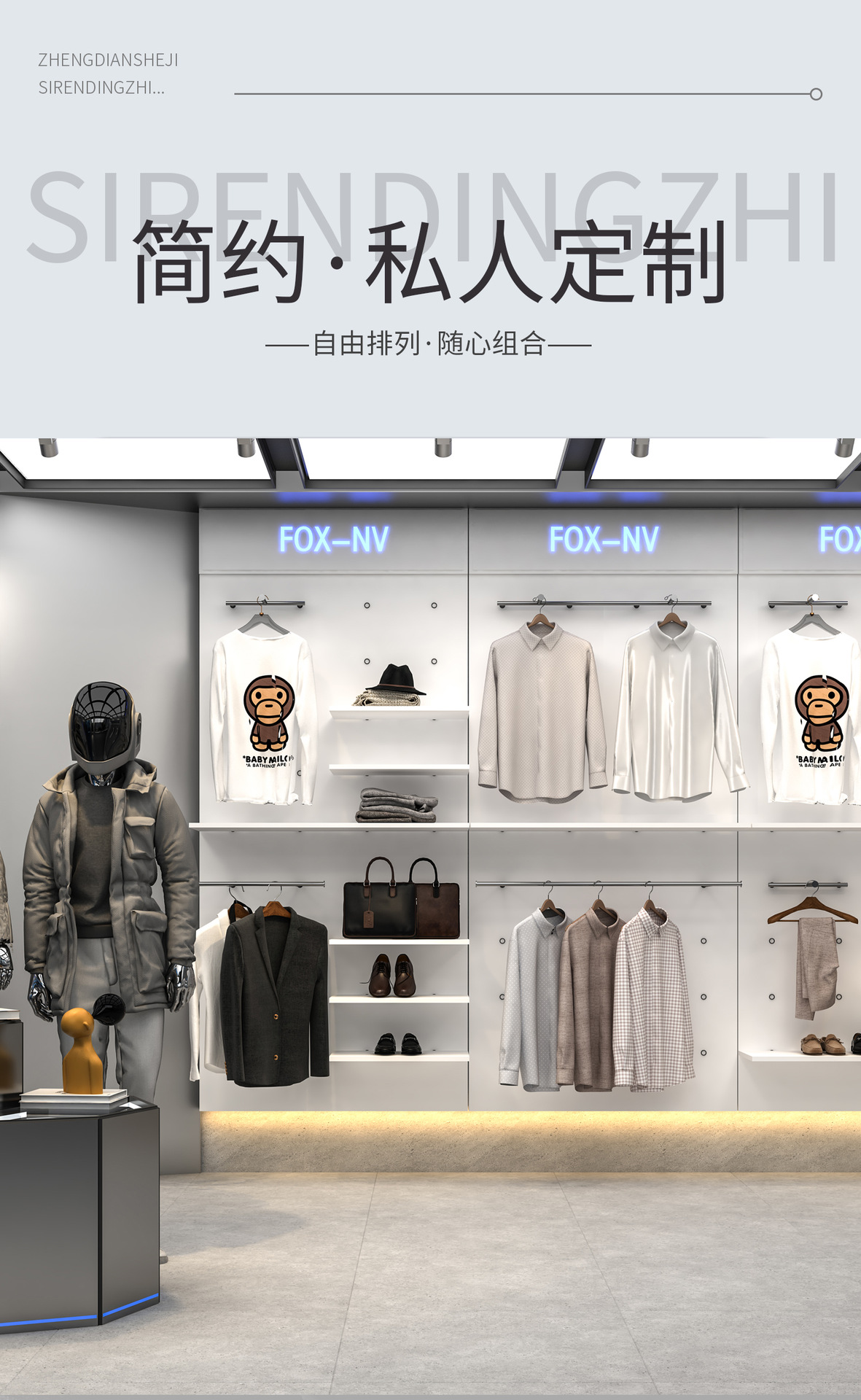 Tienda de ropa de alta calidad estante de exhibición de ropa de hombre estante de exhibición de piso deportivo al aire libre tienda de ropa estante