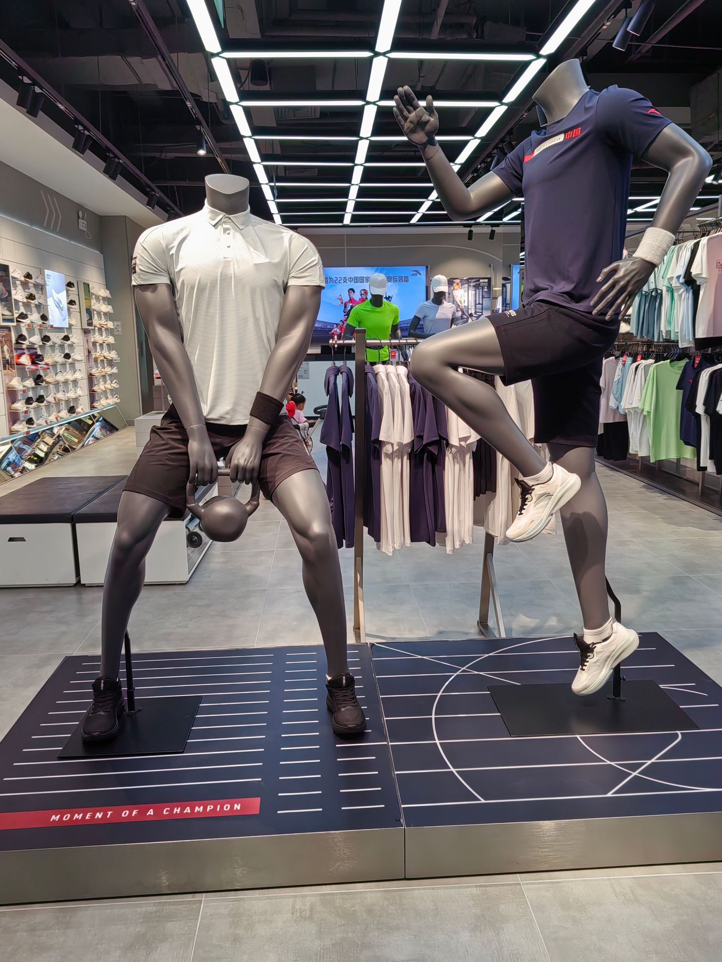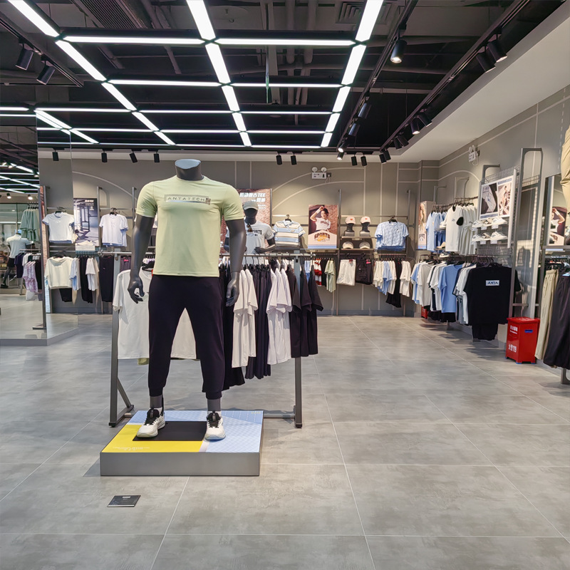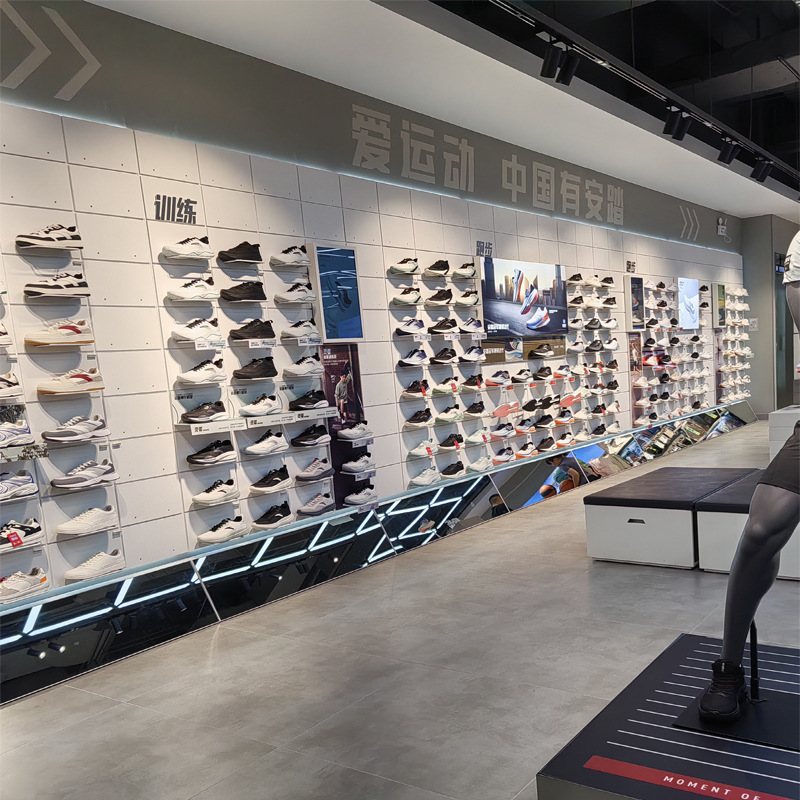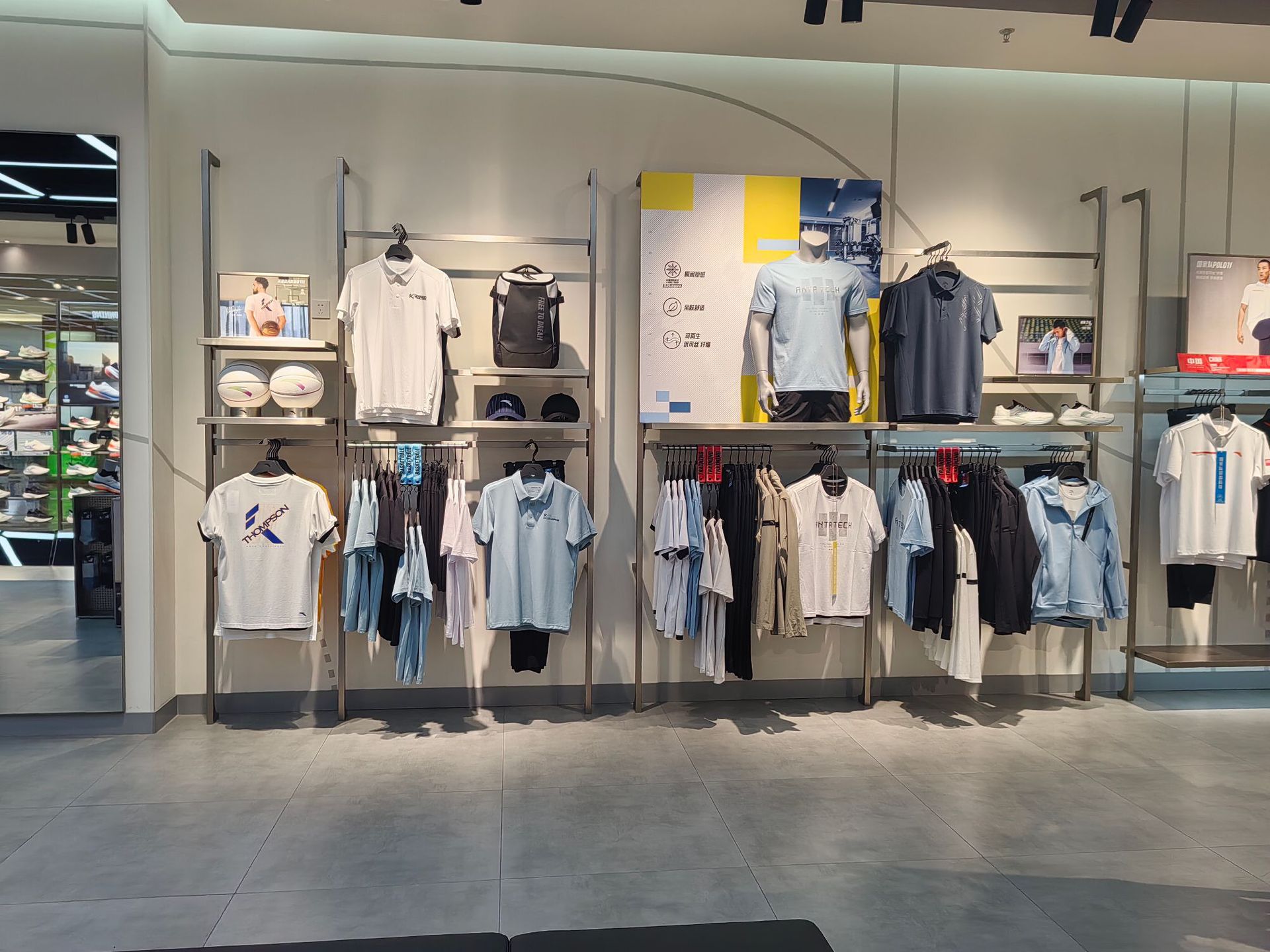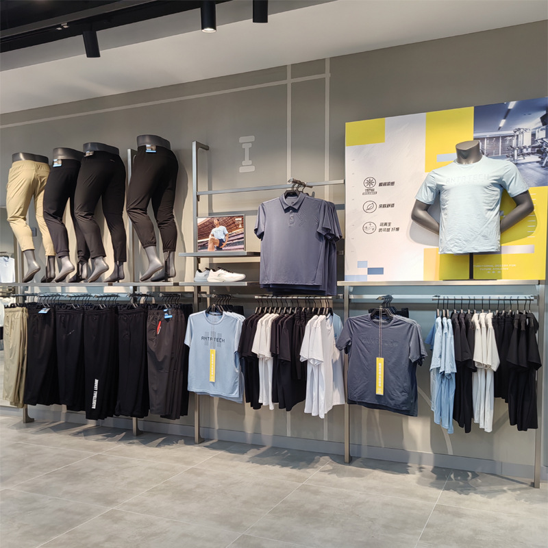 Estante de exhibición de ropa de marca Anta de acero inoxidable de pared de tienda de ropa estante de exhibición deportiva al aire libre estante multicapa grueso