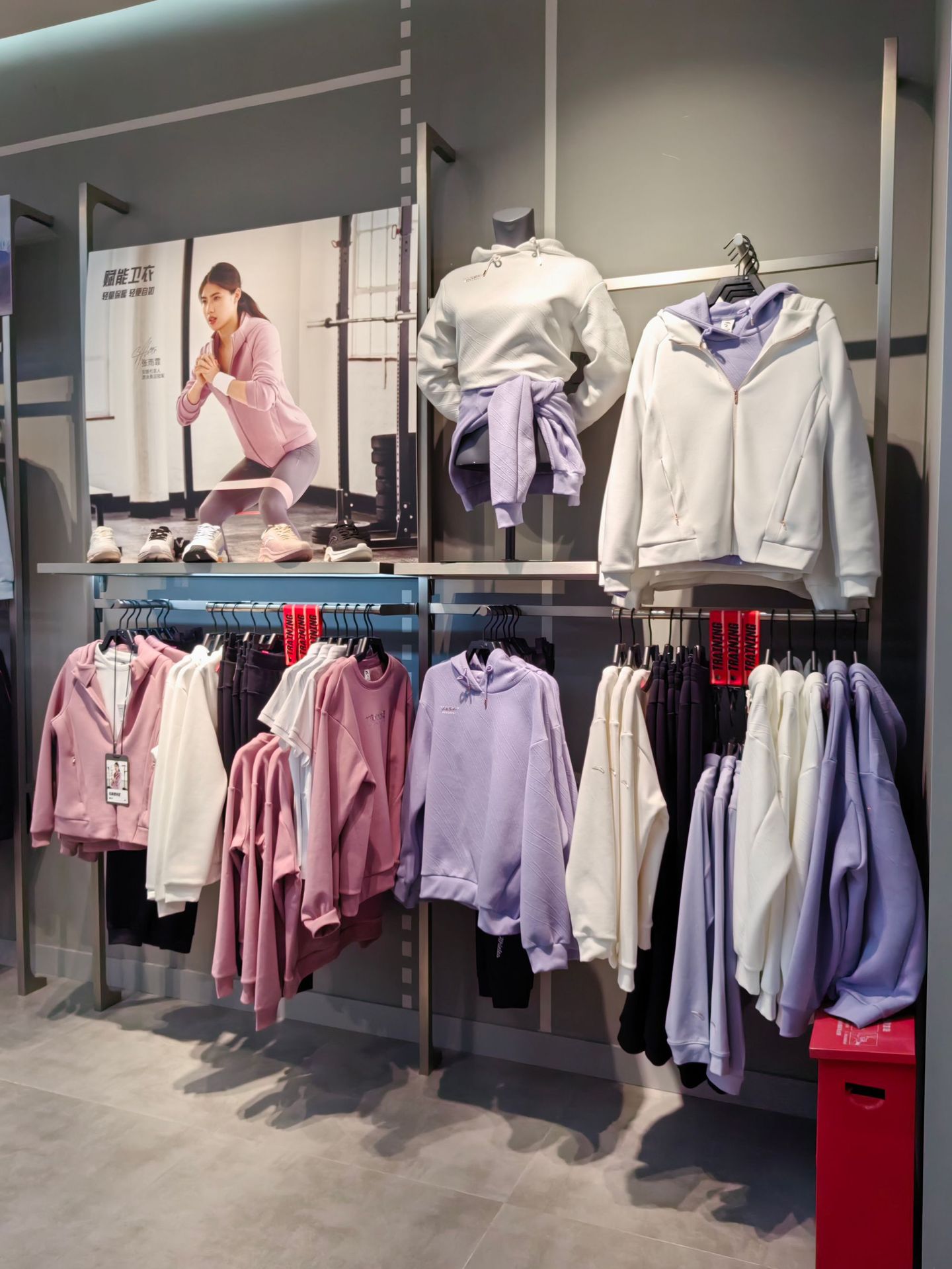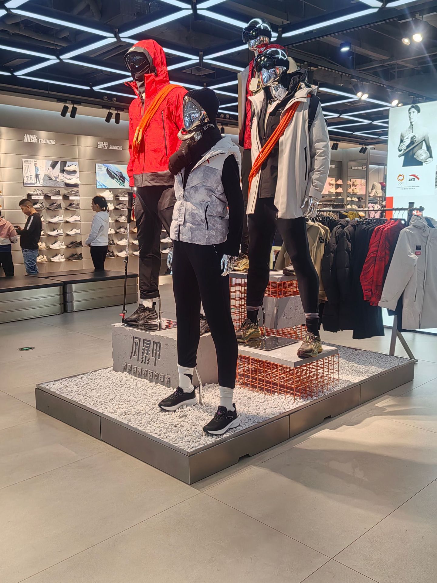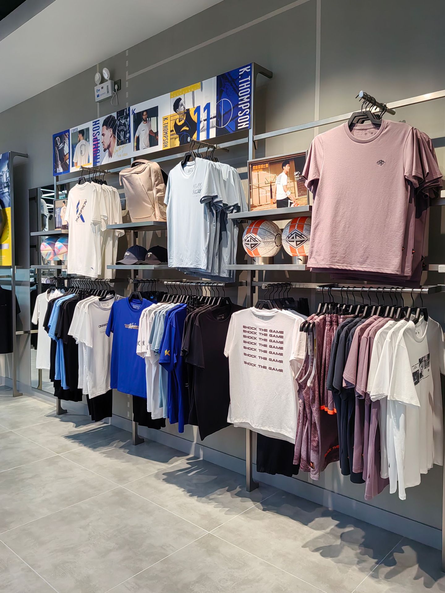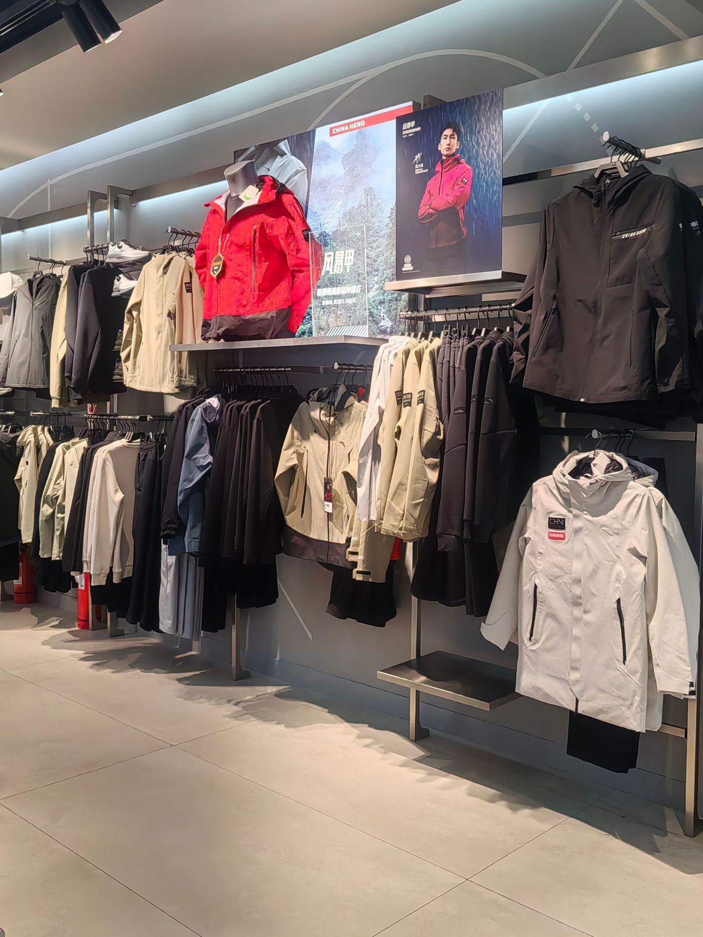 Estante de exhibición de ropa de marca Anta de acero inoxidable de pared de tienda de ropa estante de exhibición deportiva al aire libre estante multicapa grueso