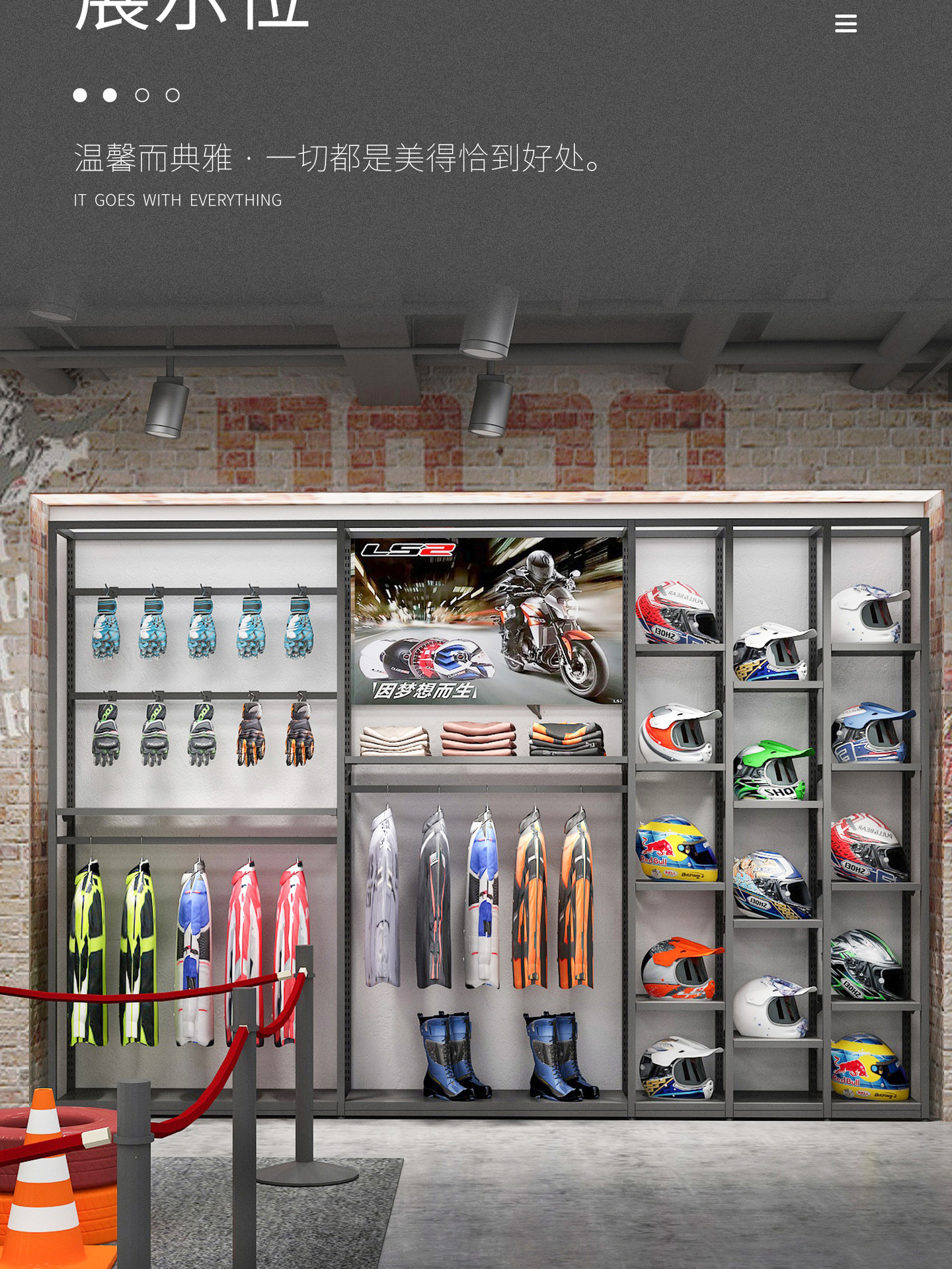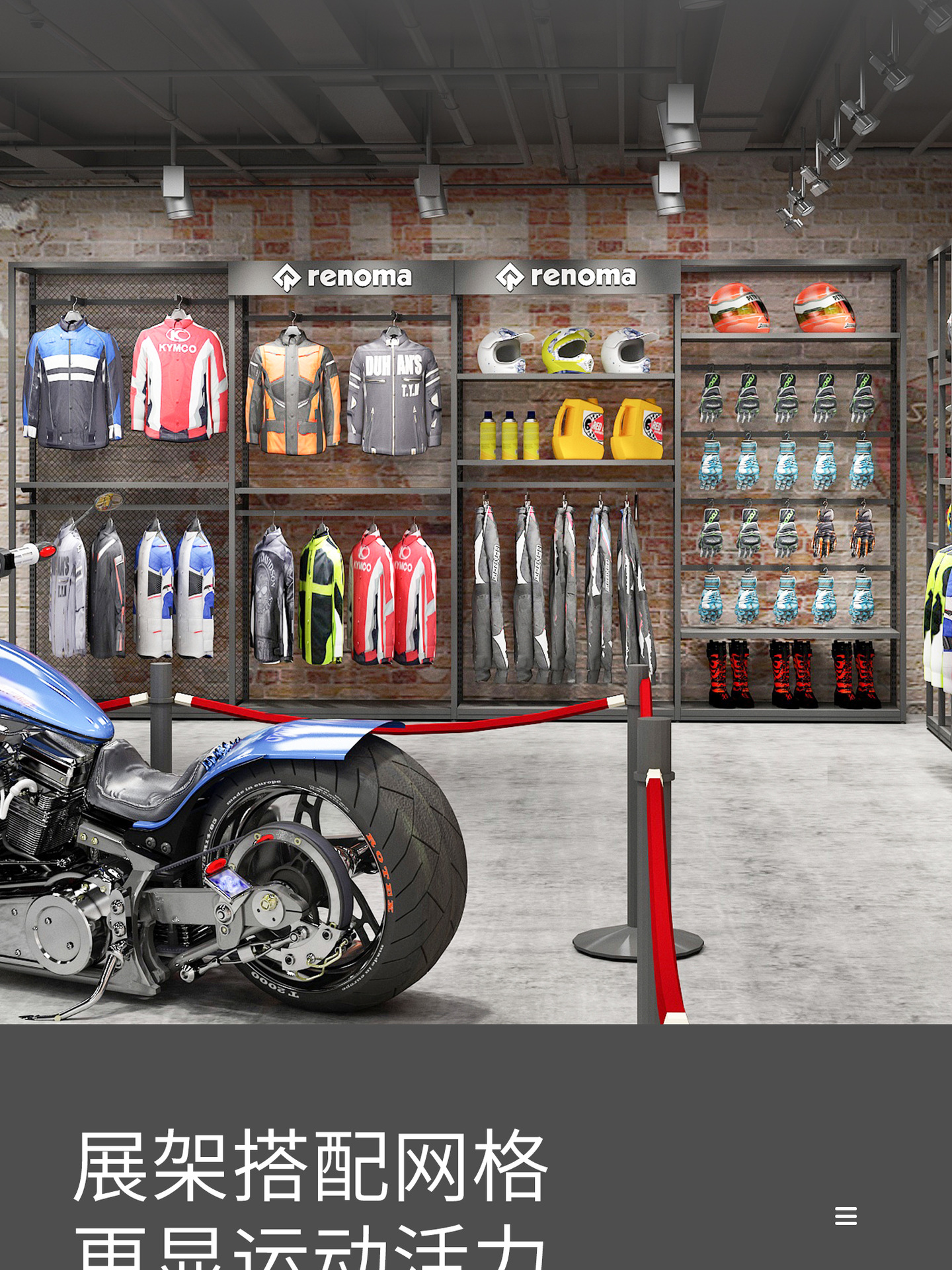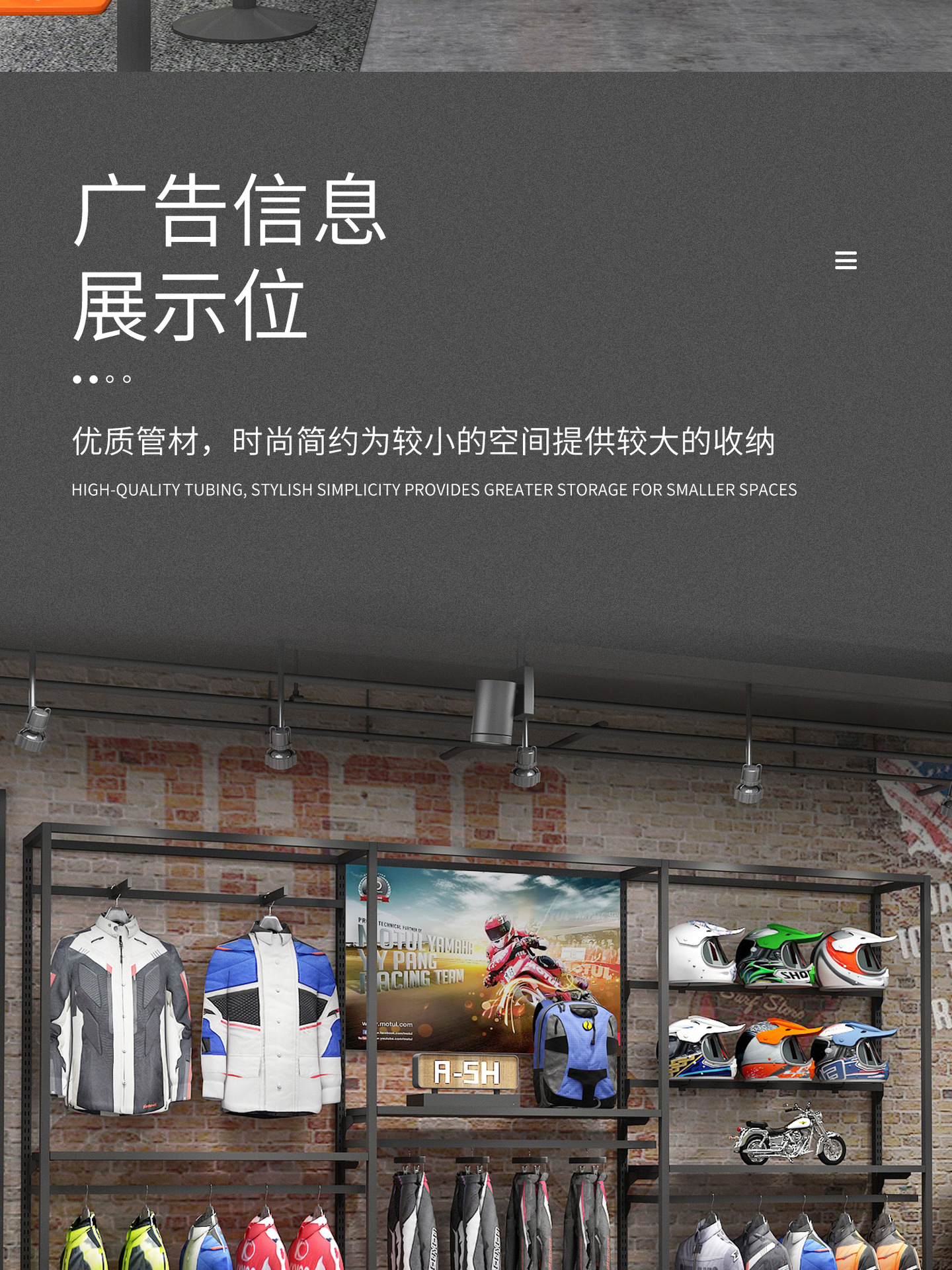 Equipo de la motocicleta eléctrica pantalla rack ciclismo ropa vitrina bicicleta motocicleta casco rack ropa deportiva rack