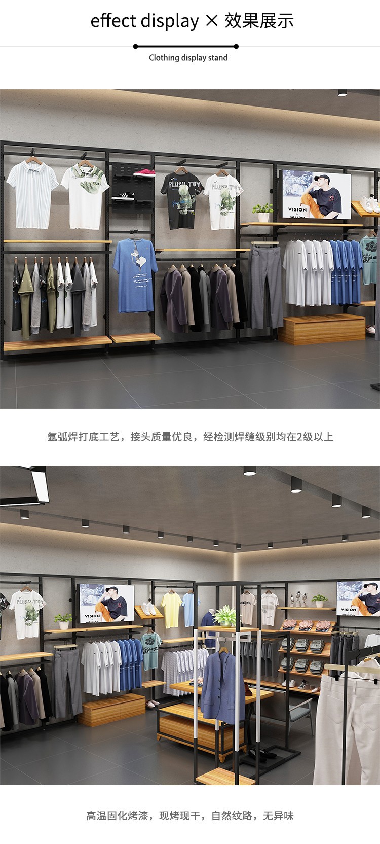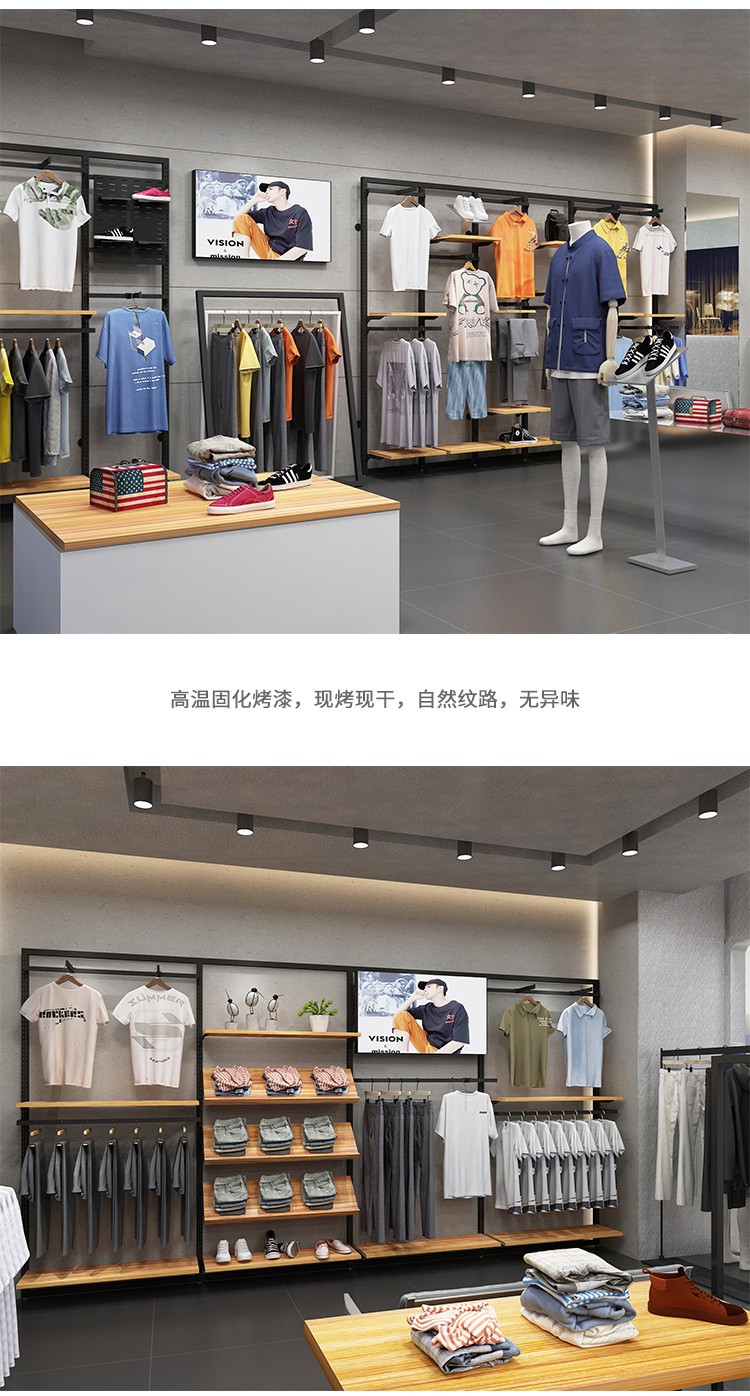 Tienda de ropa deportiva soporte de exhibición piso estante para hombres centro comercial estante de ropa casual de gama alta pared tienda de ropa para hombres