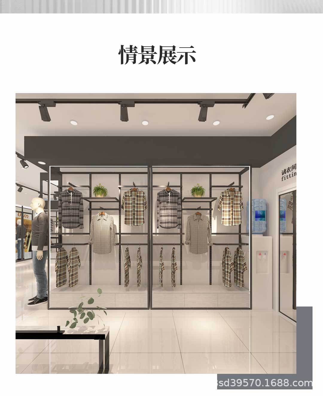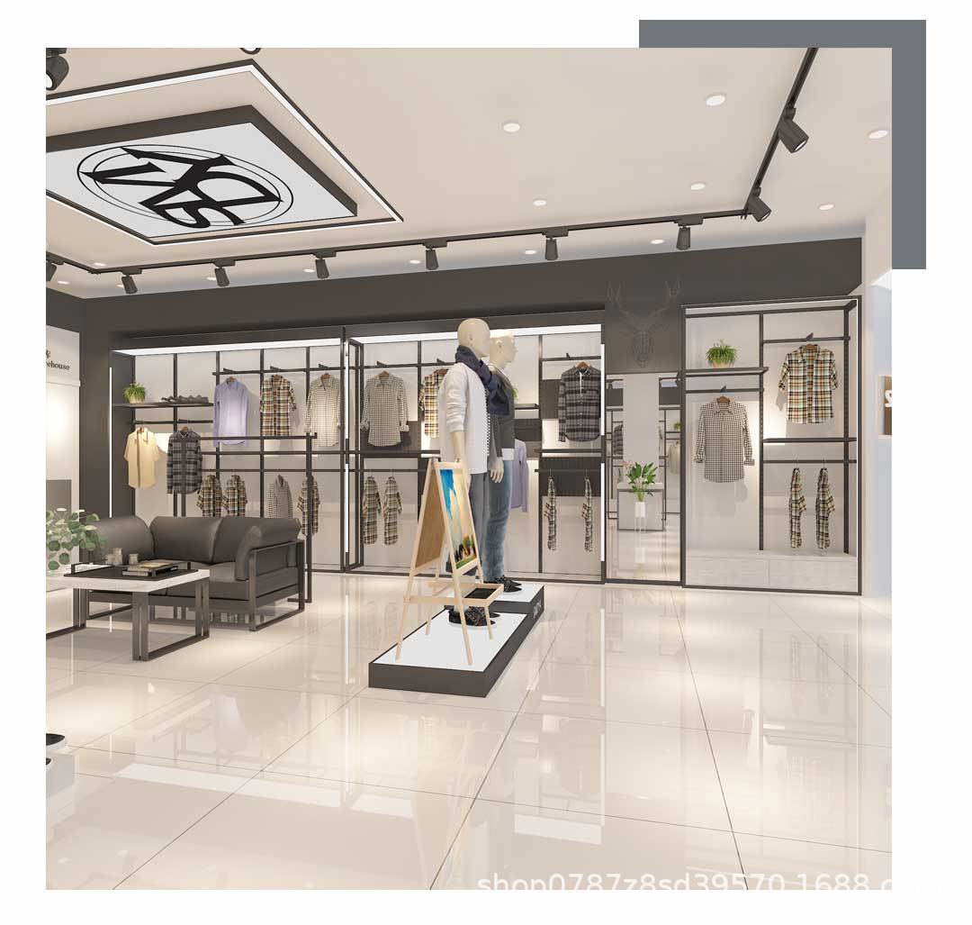 Tienda de exhibición tipo piso con iluminación, estante de exhibición, estante de exhibición de tienda de ropa para hombres, estante de exhibición de tienda de ropa gruesa