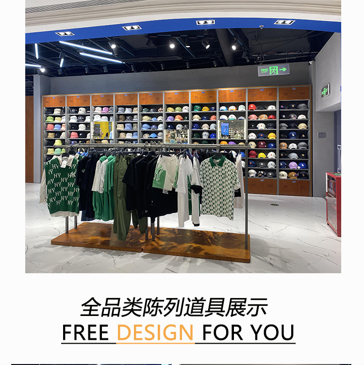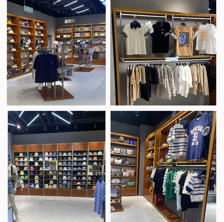 Tienda de ropa deportiva marca estante de exhibición personalizado estante de descuento tienda de sombreros mostrador de zapatos y ropa mostrador de productos