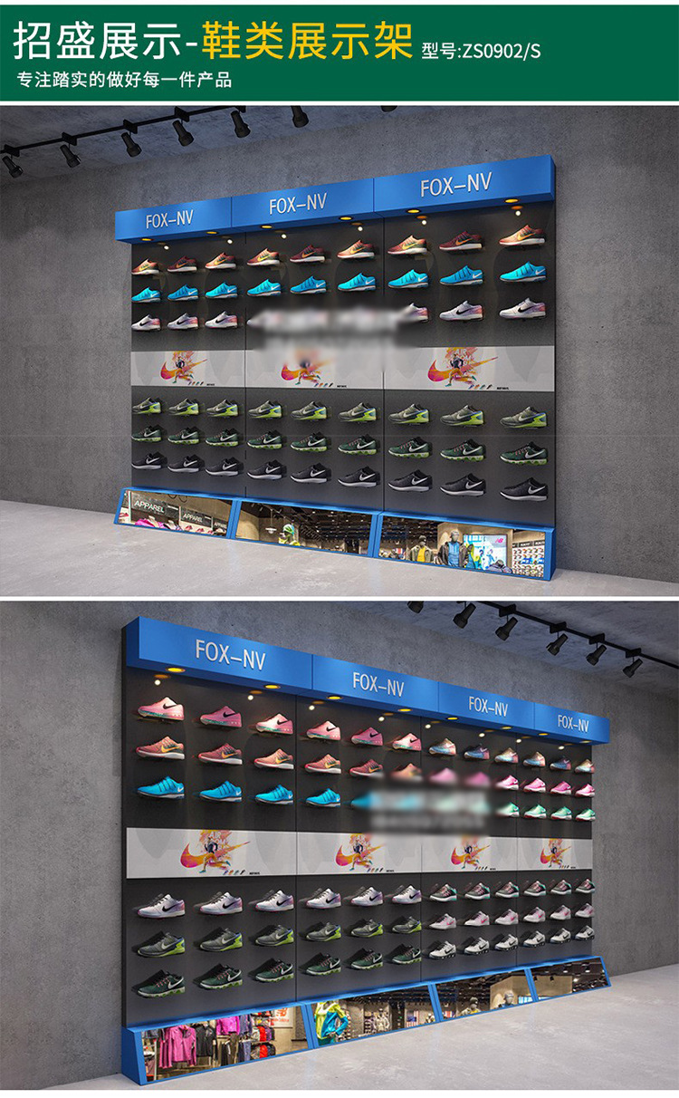 Tienda de ropa estante de exhibición gabinete de exhibición de pared Zapatero tienda de zapatilla de deporte estante centro comercial tienda de zapatos estante de zapatos