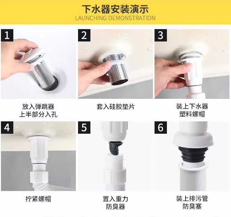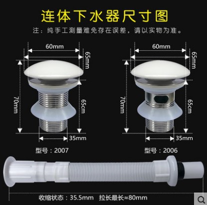 Bounce escurridor cubierta cerámica blanca integrada bajante rebote cuenca lavabo tubo de drenaje