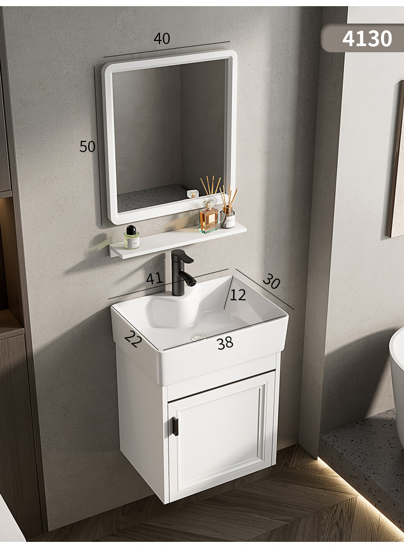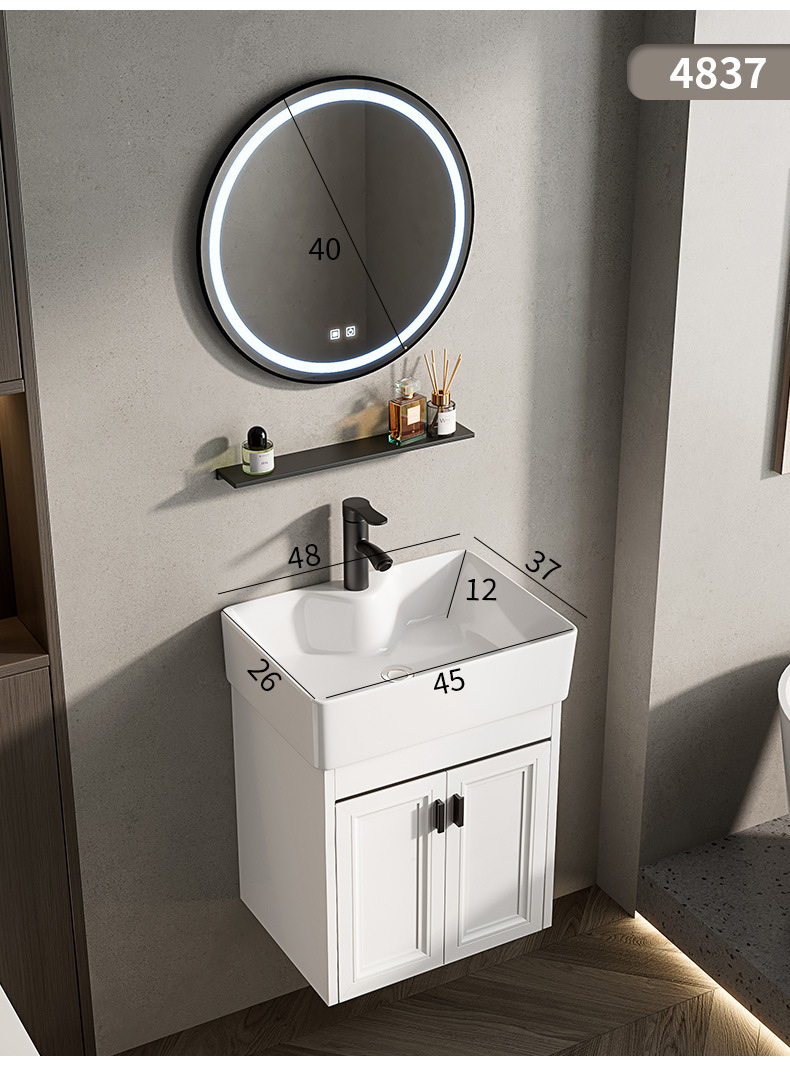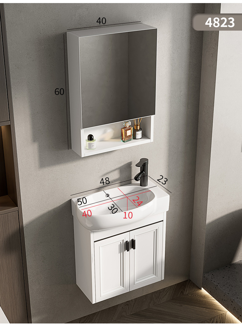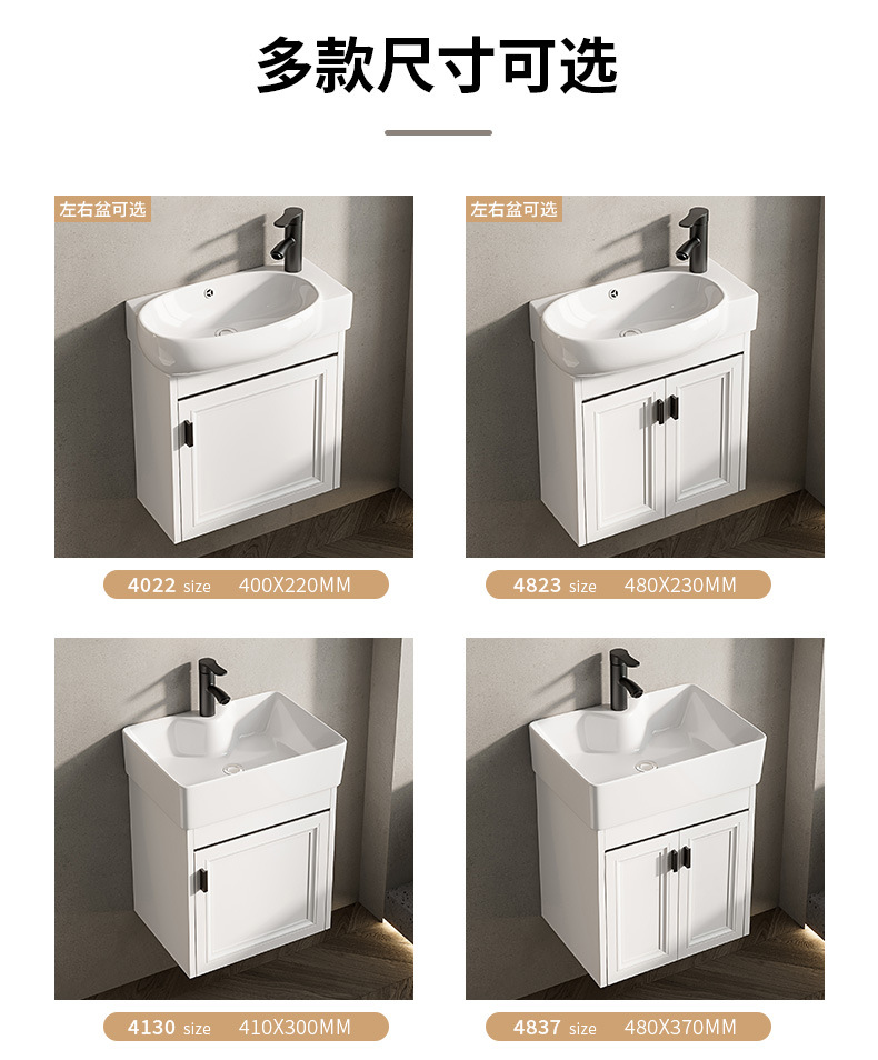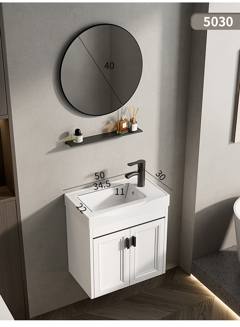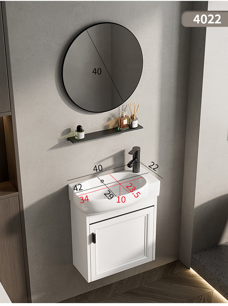 Baño de pared de apartamento pequeño, baño de aluminio espacial, mini cerámica, lavabo ultra estrecho, armario de lavabo transfronterizo