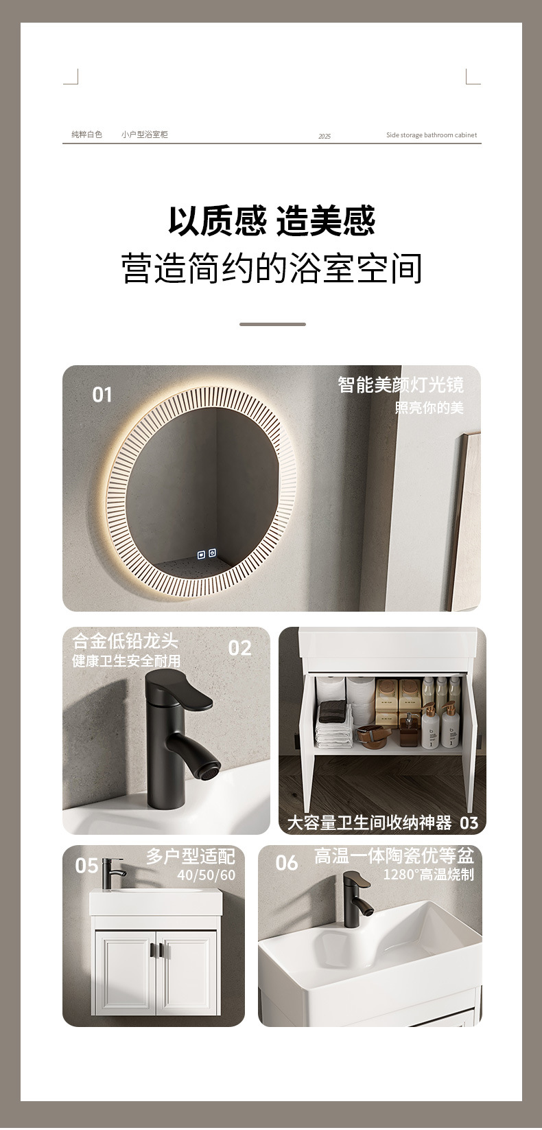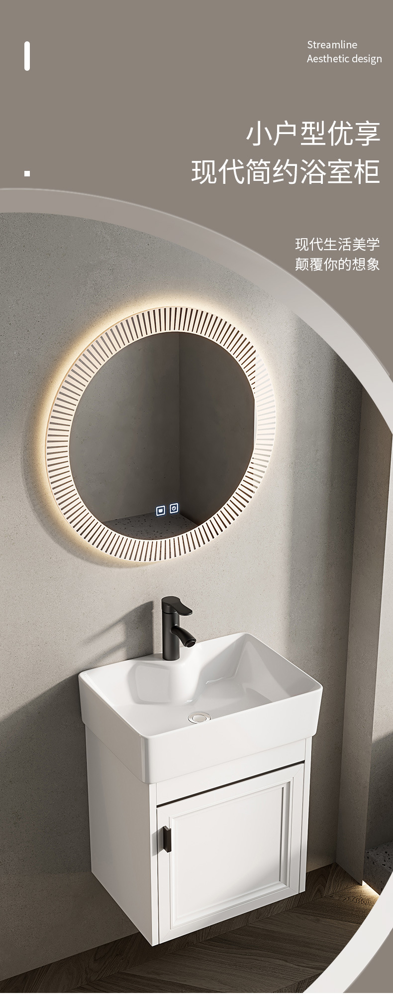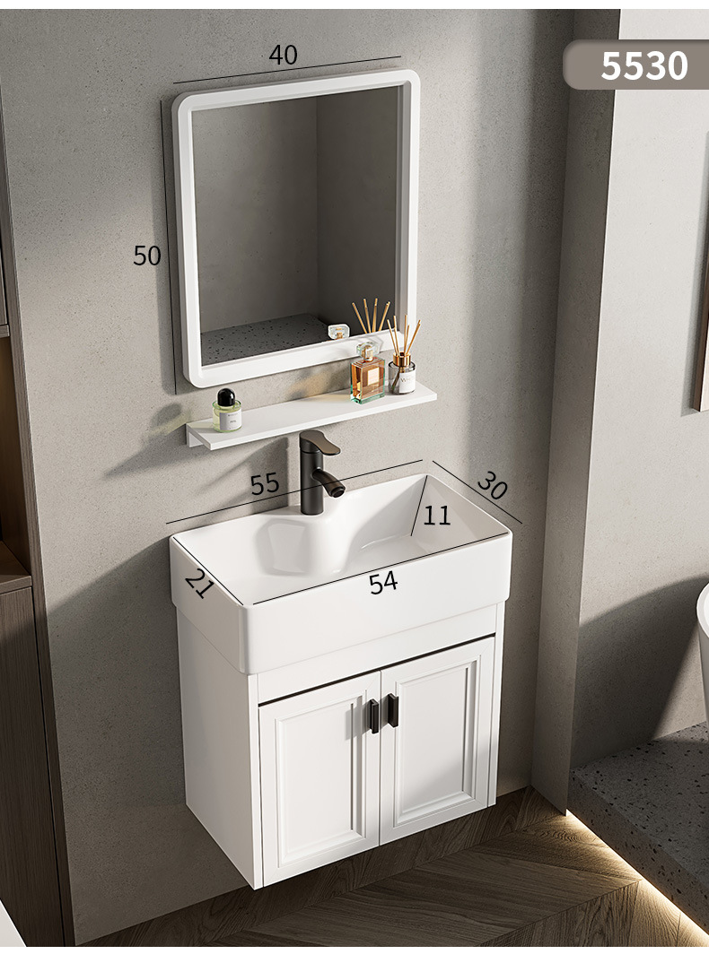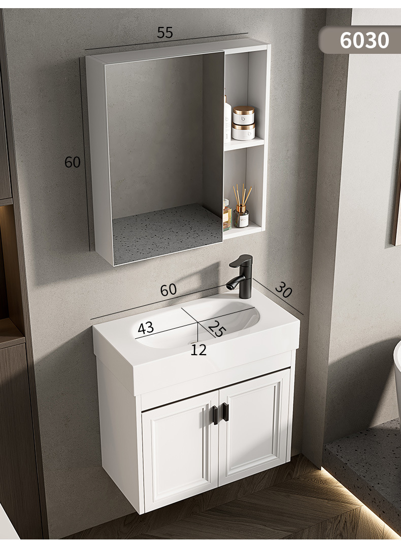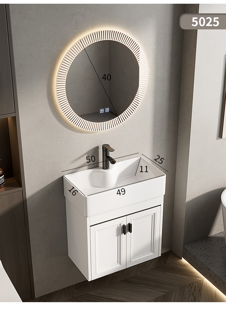 Baño de pared de apartamento pequeño, baño de aluminio espacial, mini cerámica, lavabo ultra estrecho, armario de lavabo transfronterizo