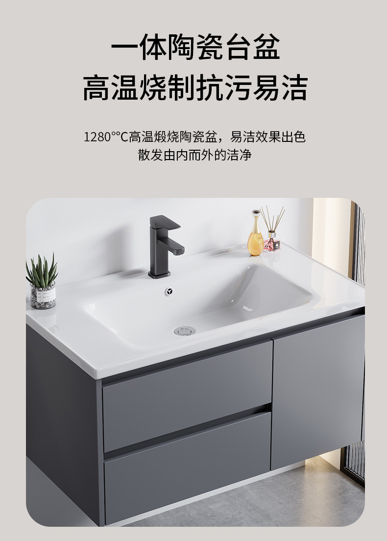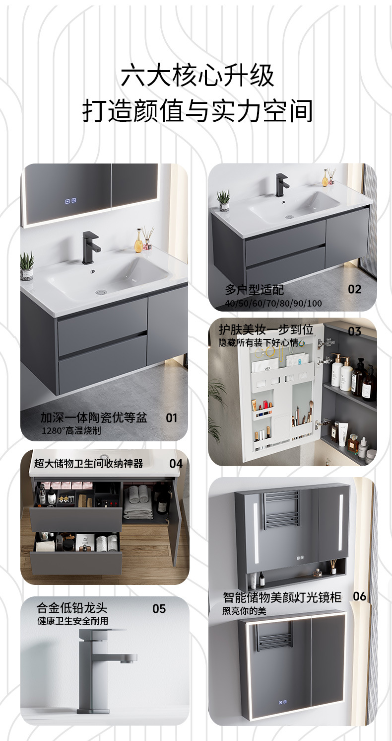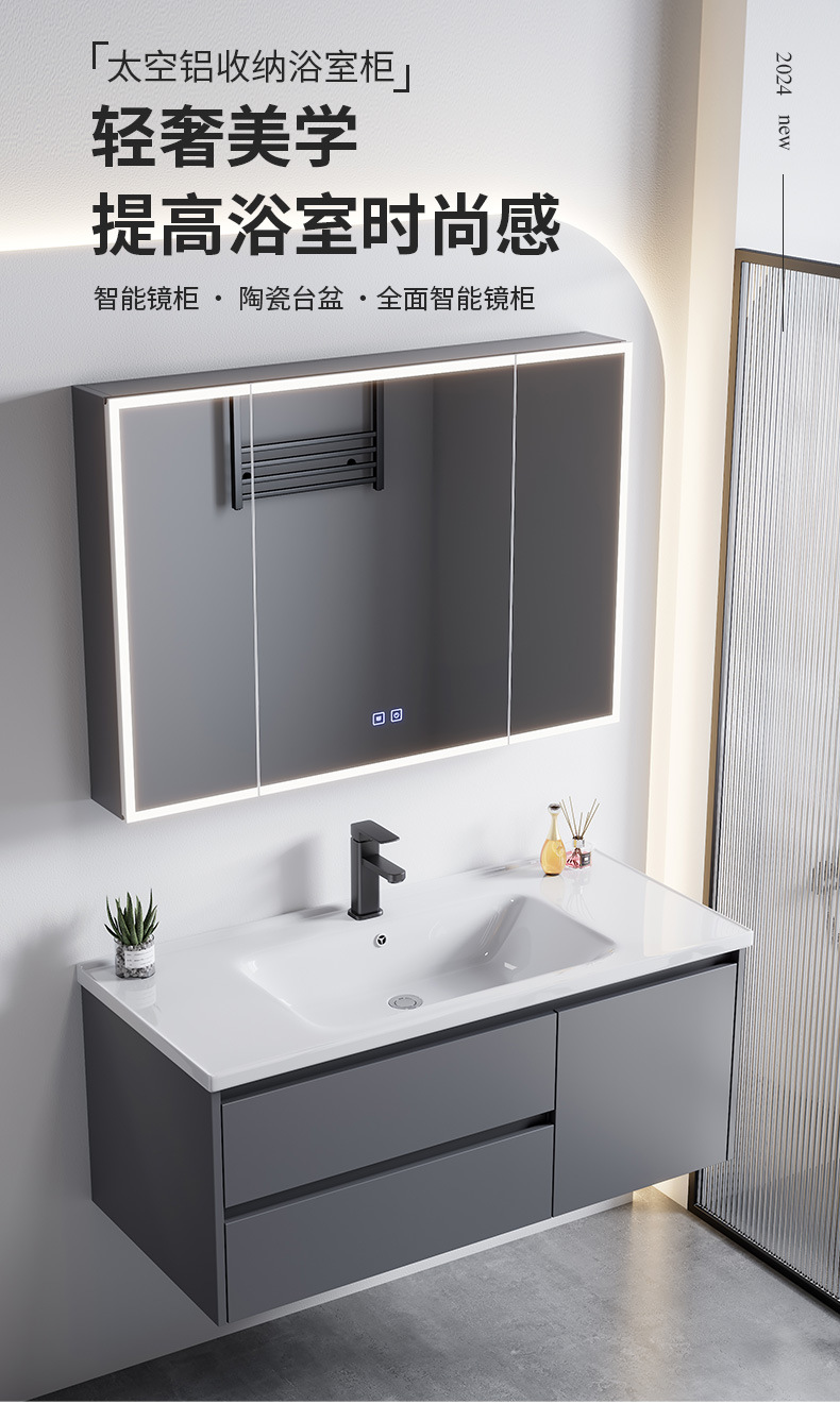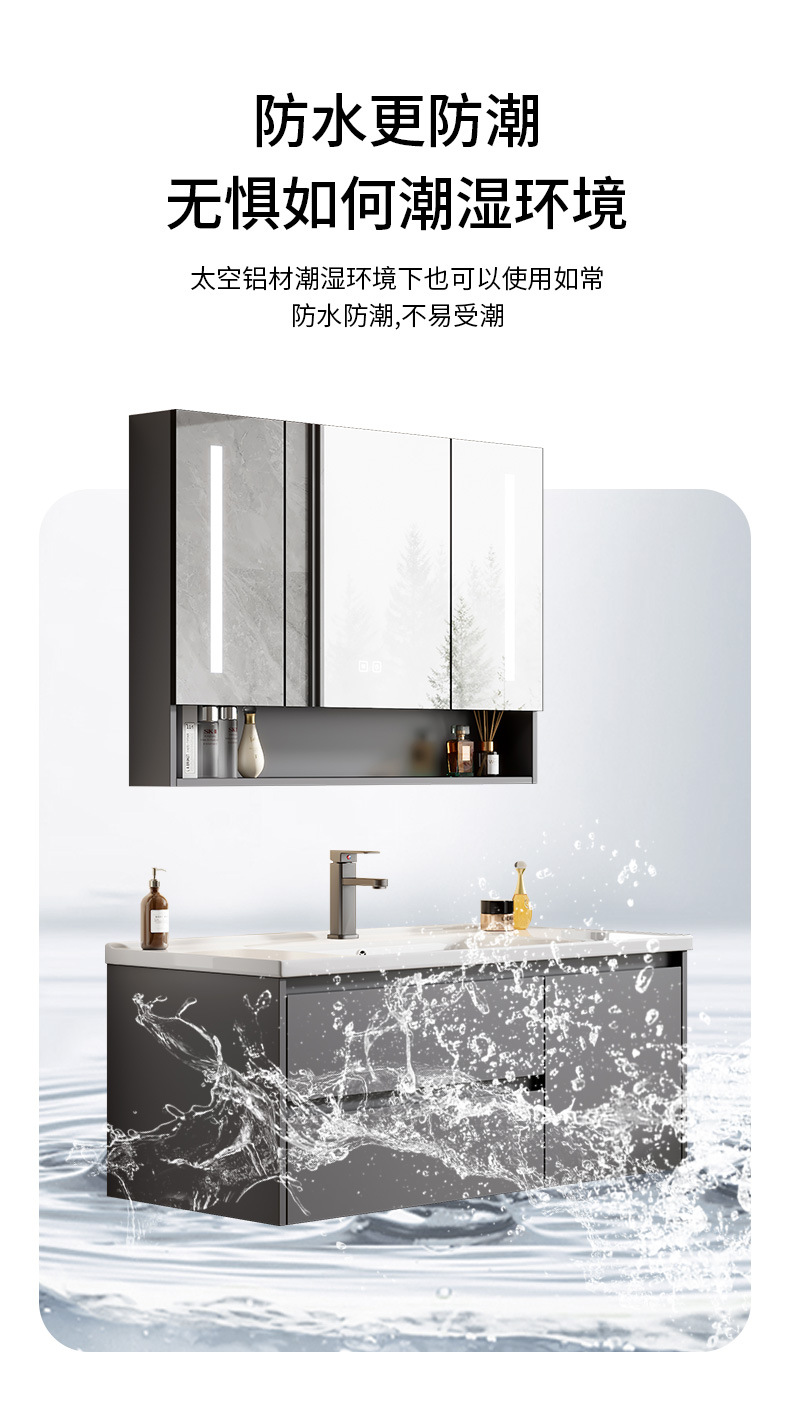 Cajón de aluminio de aluminio espacial gabinete de baño cerámica todo en una bañera sellado inteligente gabinete de espejo de almacenamiento conjunto de gabinete de lavabo de baño