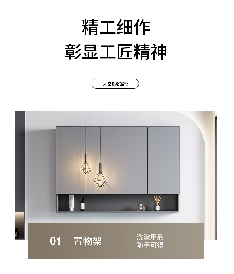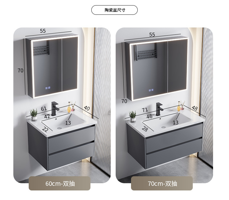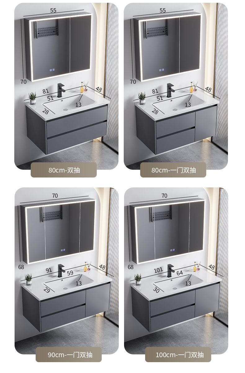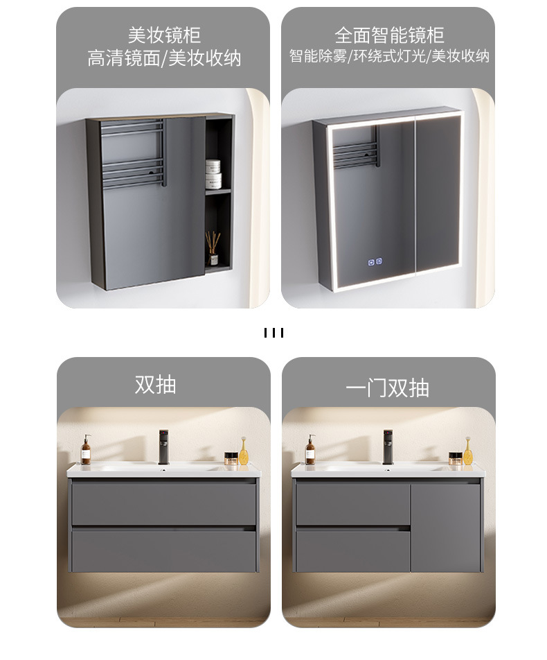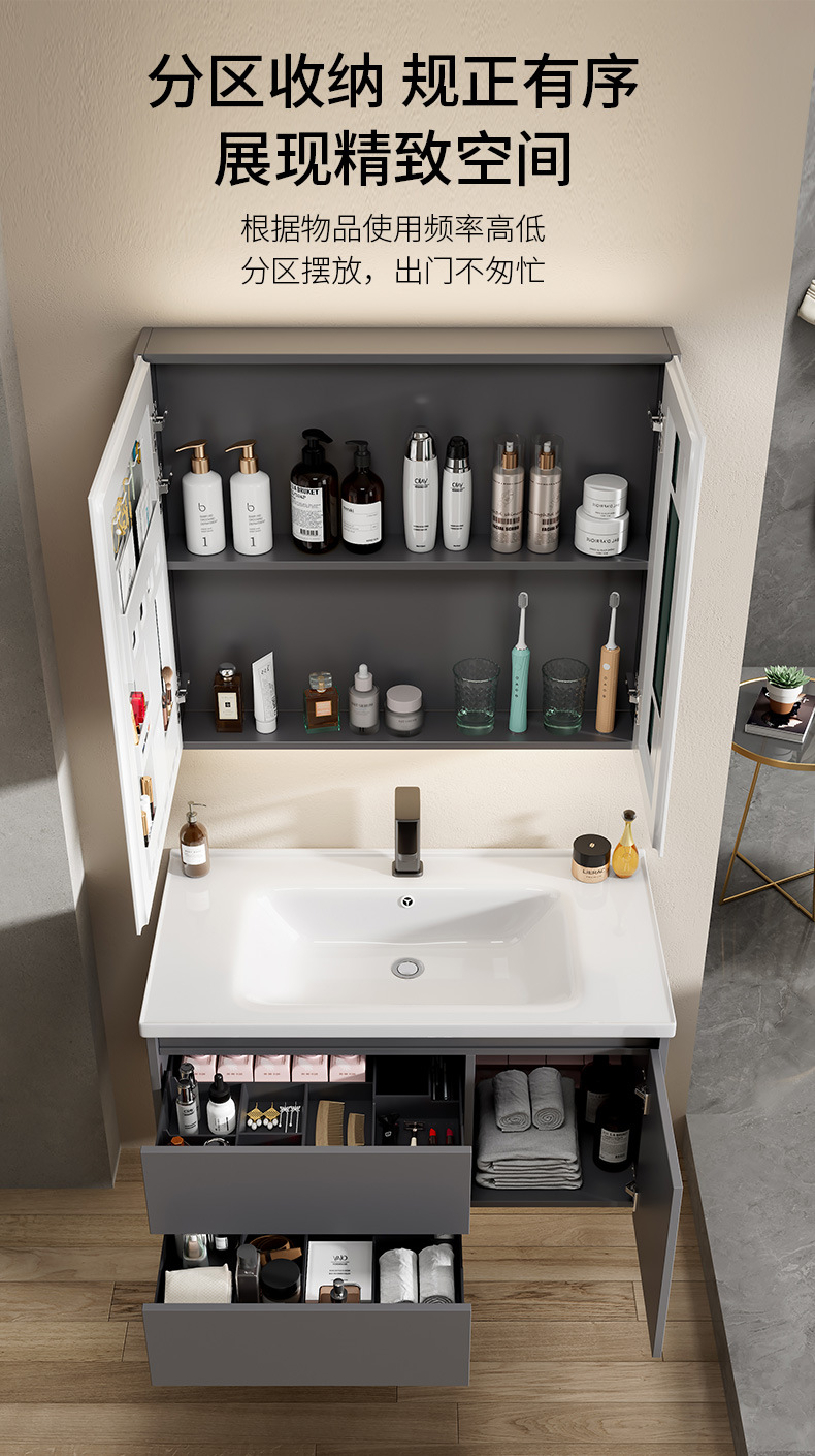 Cajón de aluminio de aluminio espacial gabinete de baño cerámica todo en una bañera sellado inteligente gabinete de espejo de almacenamiento conjunto de gabinete de lavabo de baño