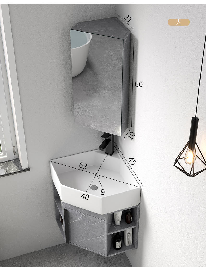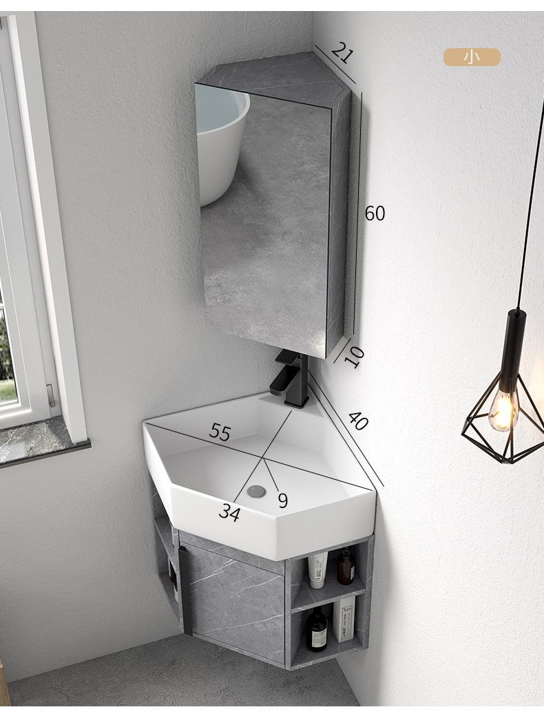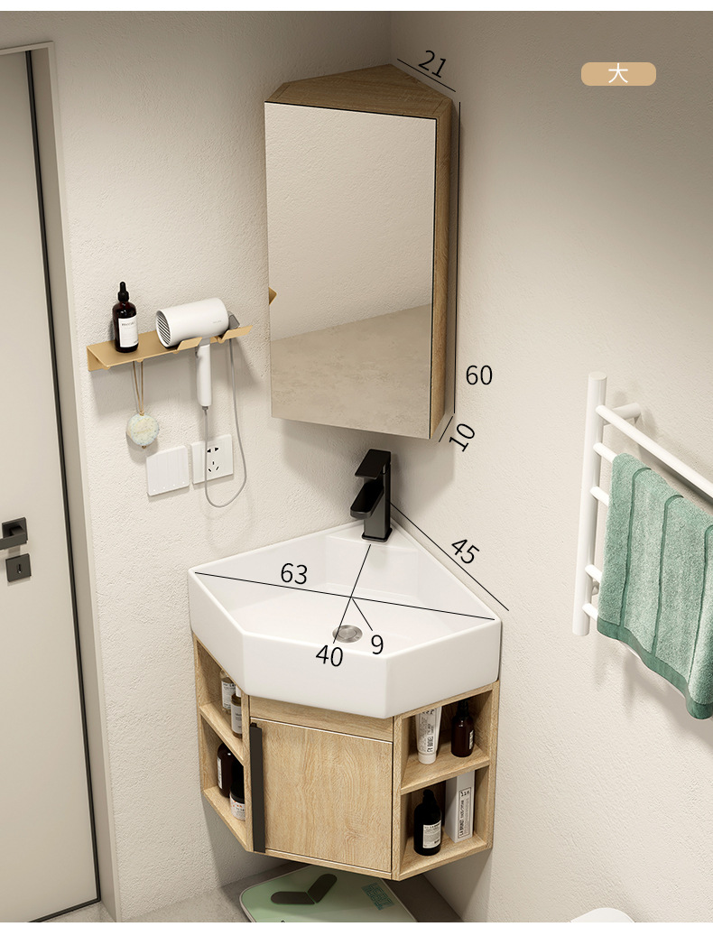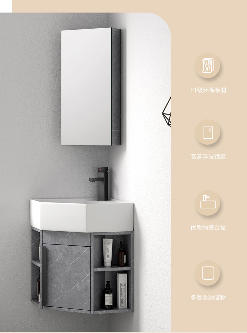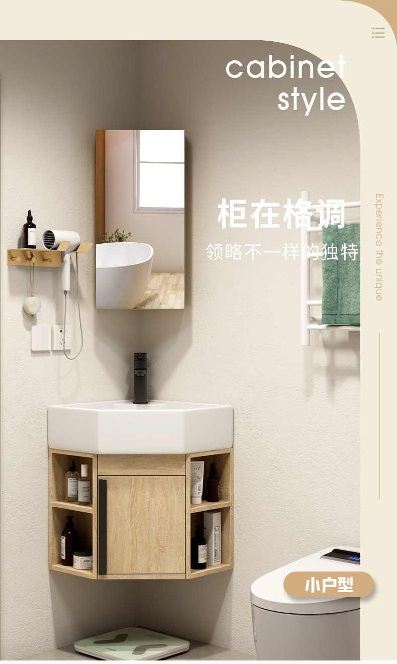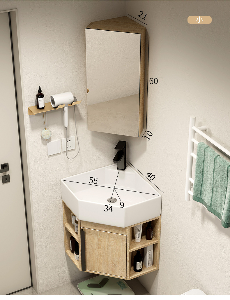 PVC de color tronco pequeño tipo triángulo gabinete de baño combinación cerámica de esquina de baño gabinete lavabo