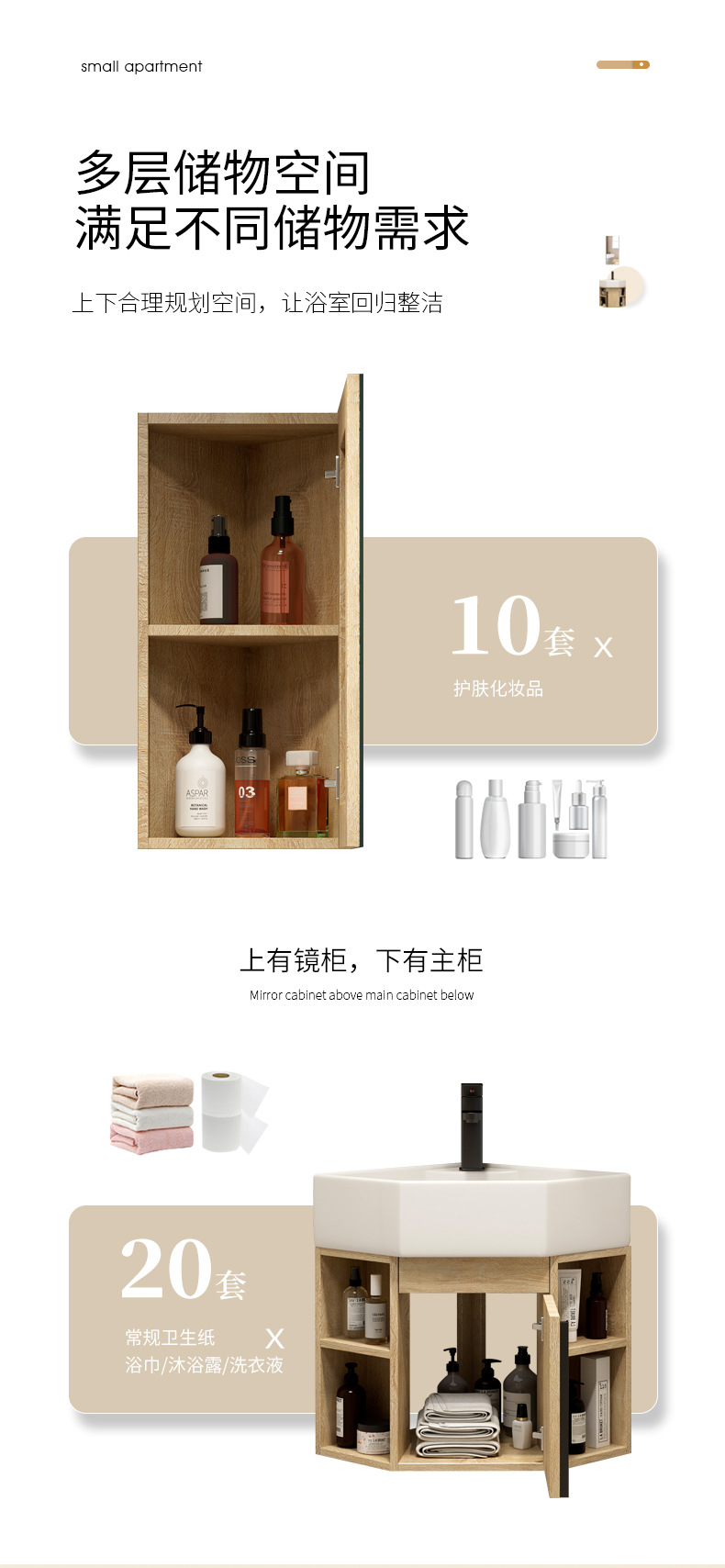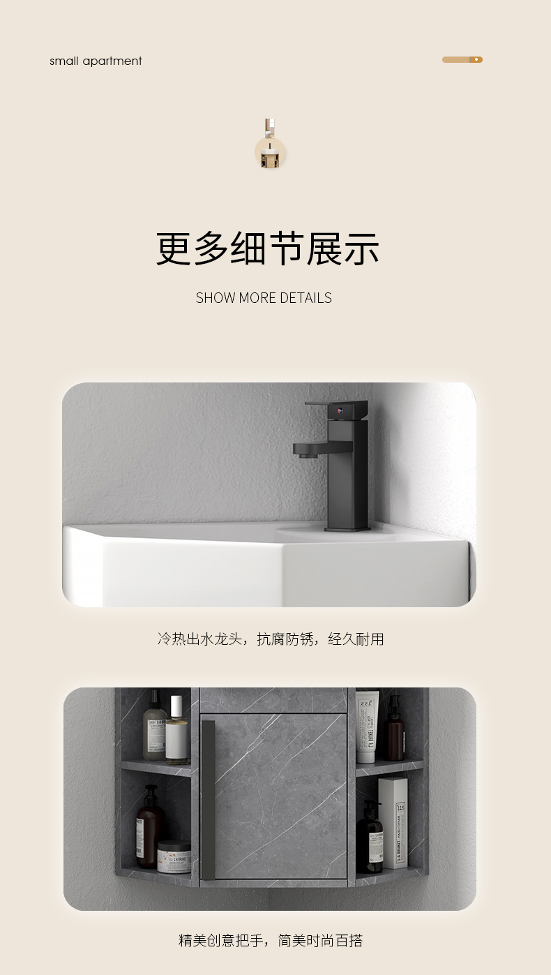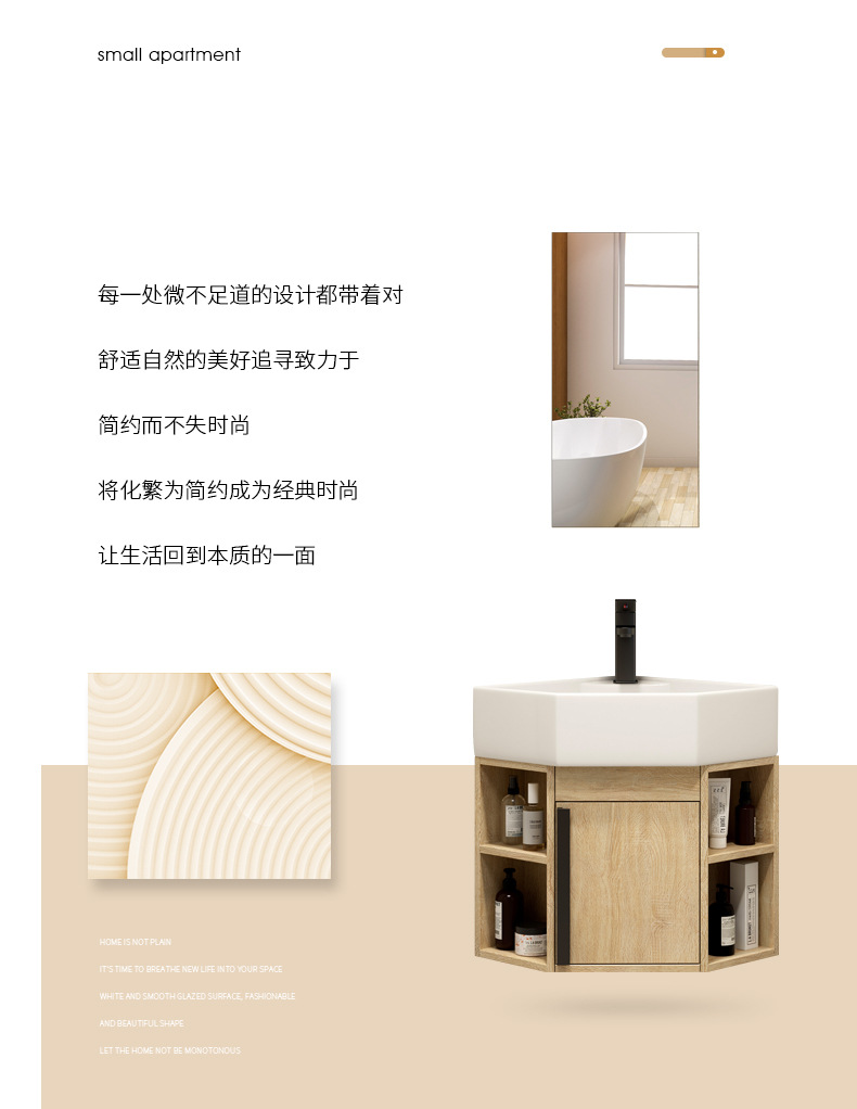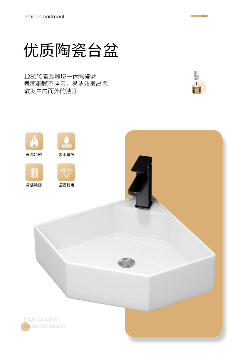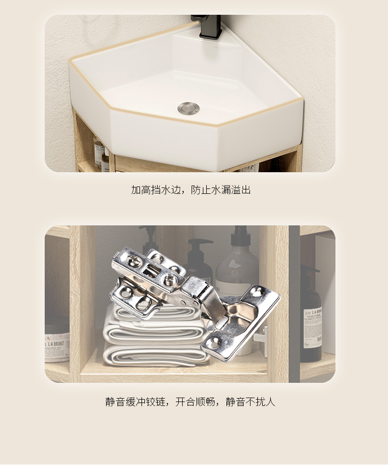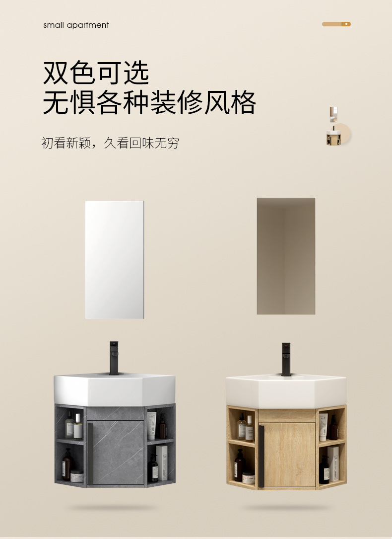 PVC de color tronco pequeño tipo triángulo gabinete de baño combinación cerámica de esquina de baño gabinete lavabo