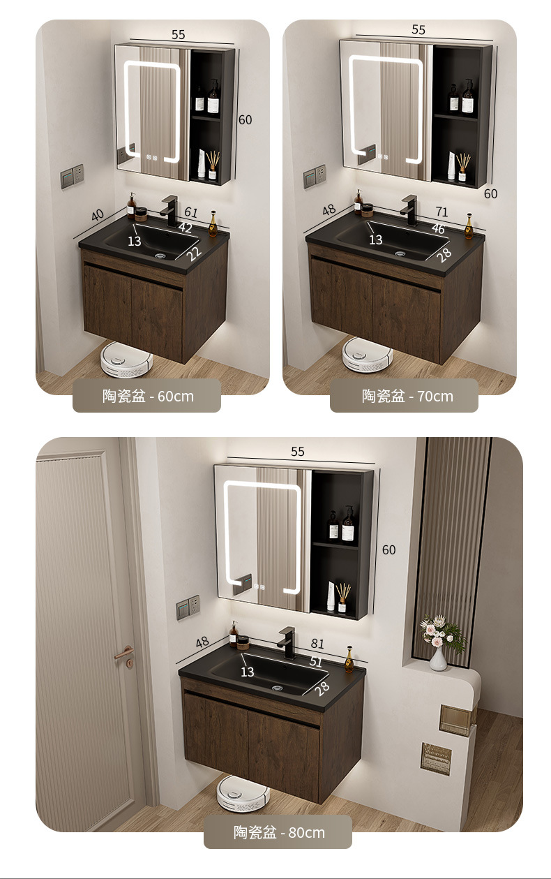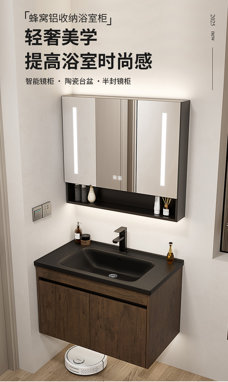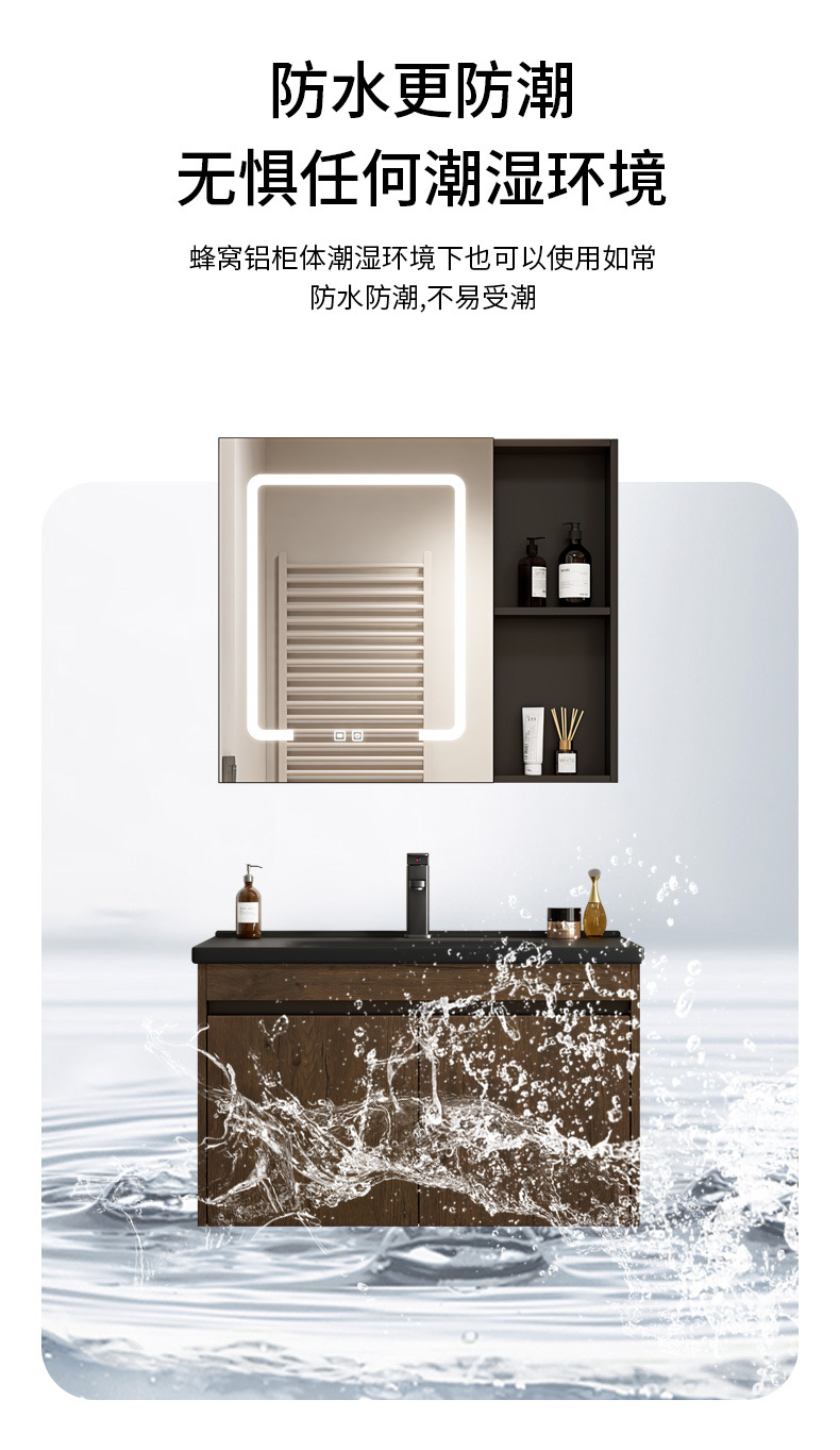 Nuevo gabinete de baño de color nuez gabinete de lavabo hotel pequeño baño en lavabo de aluminio espacio