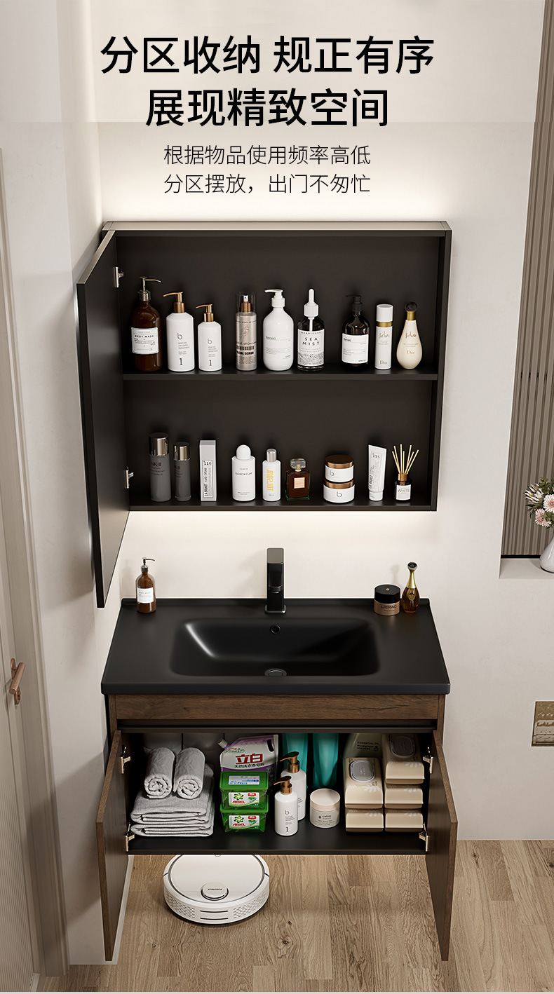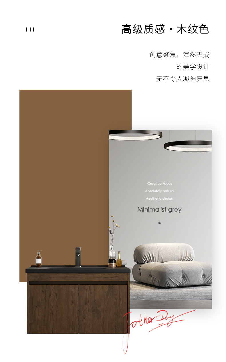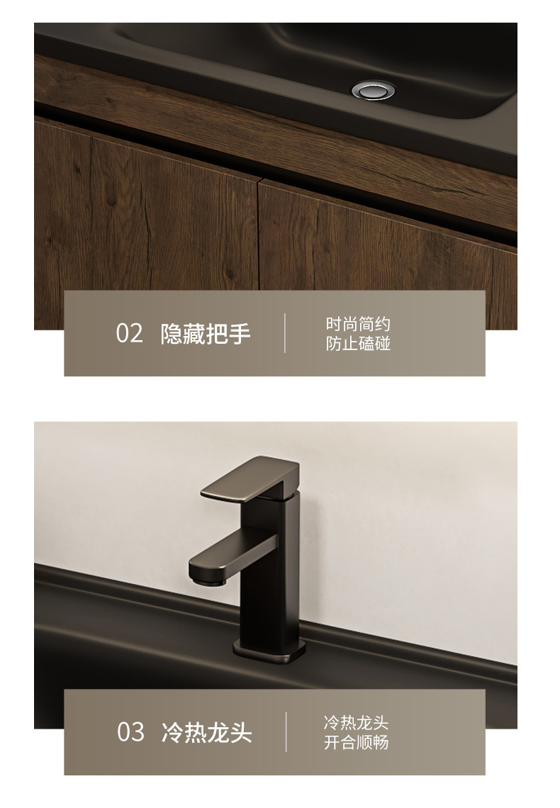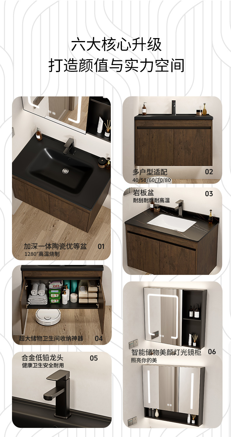 Nuevo gabinete de baño de color nuez gabinete de lavabo hotel pequeño baño en lavabo de aluminio espacio