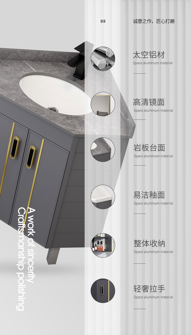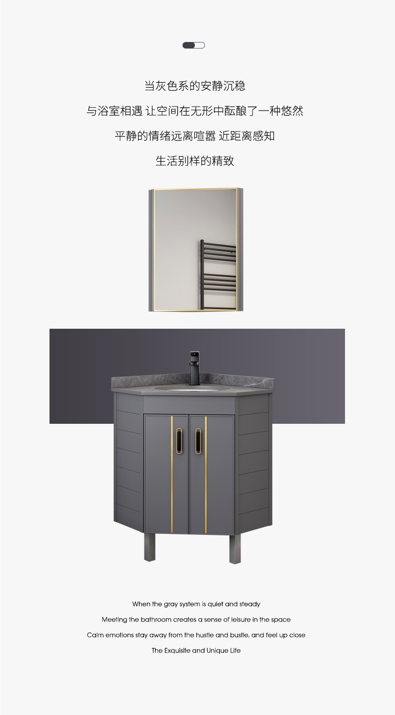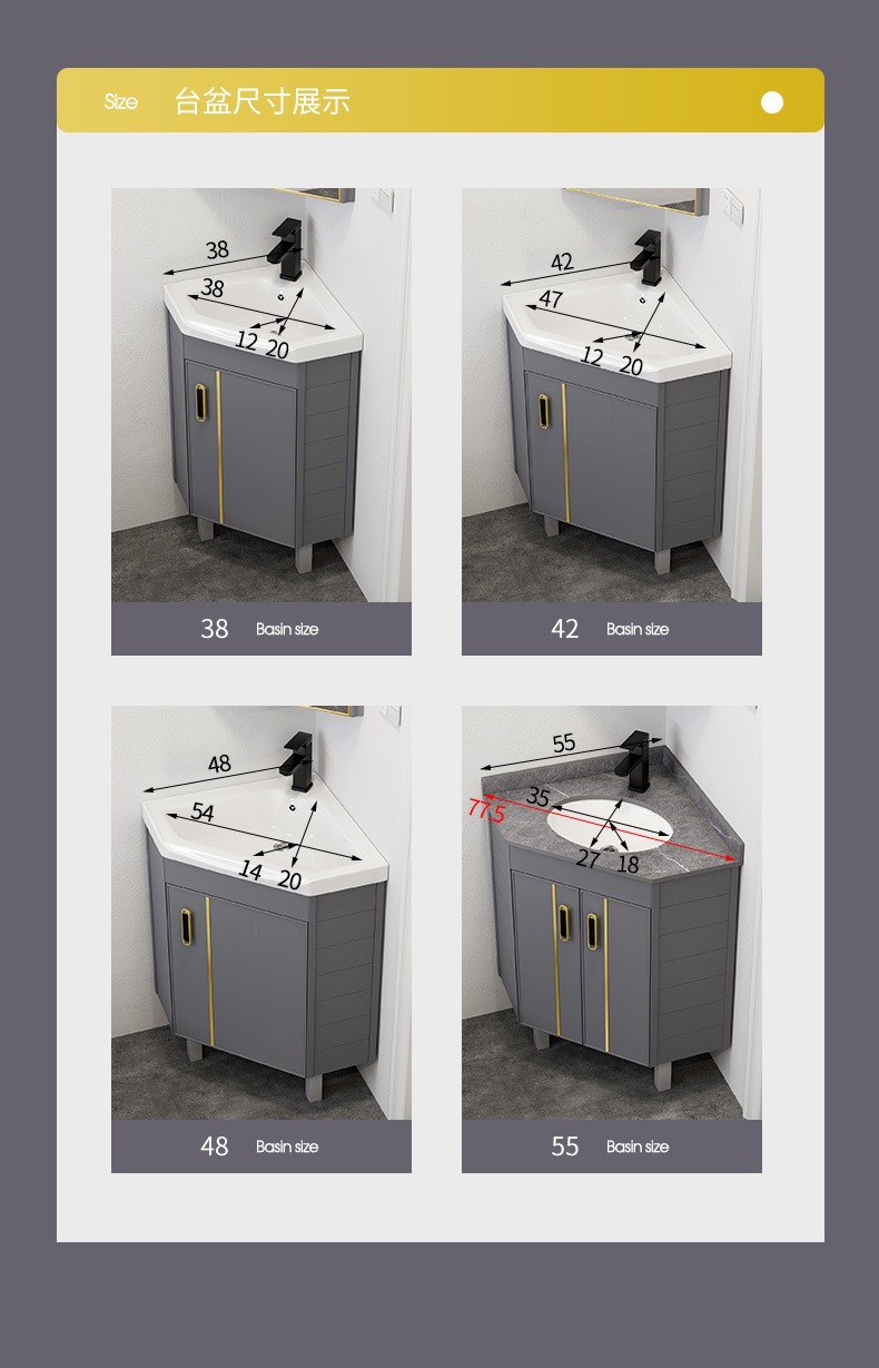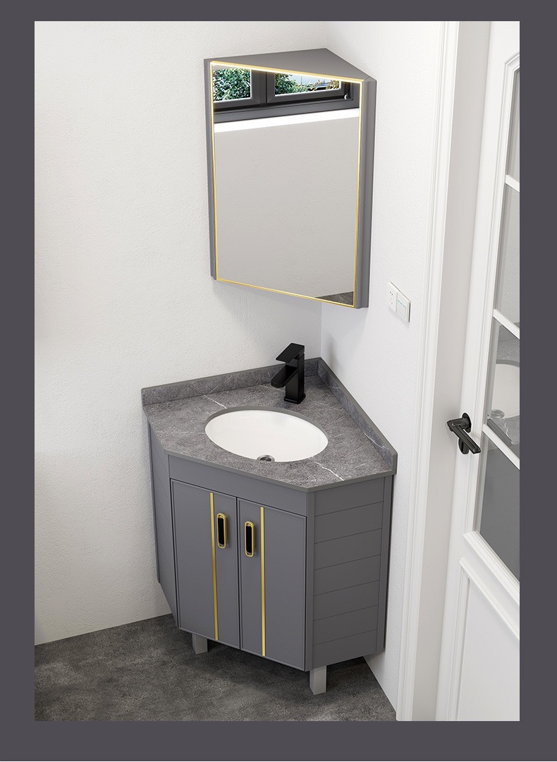 gabinete de baño de aluminio espacial tipo piso combinado tipo pequeño baño lavabo de triángulo lavabo esquina lavabo