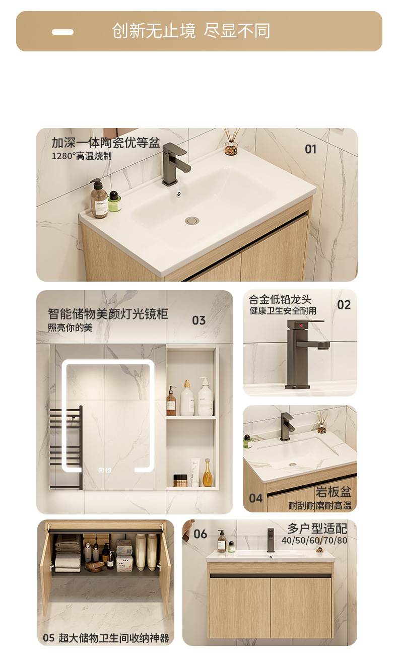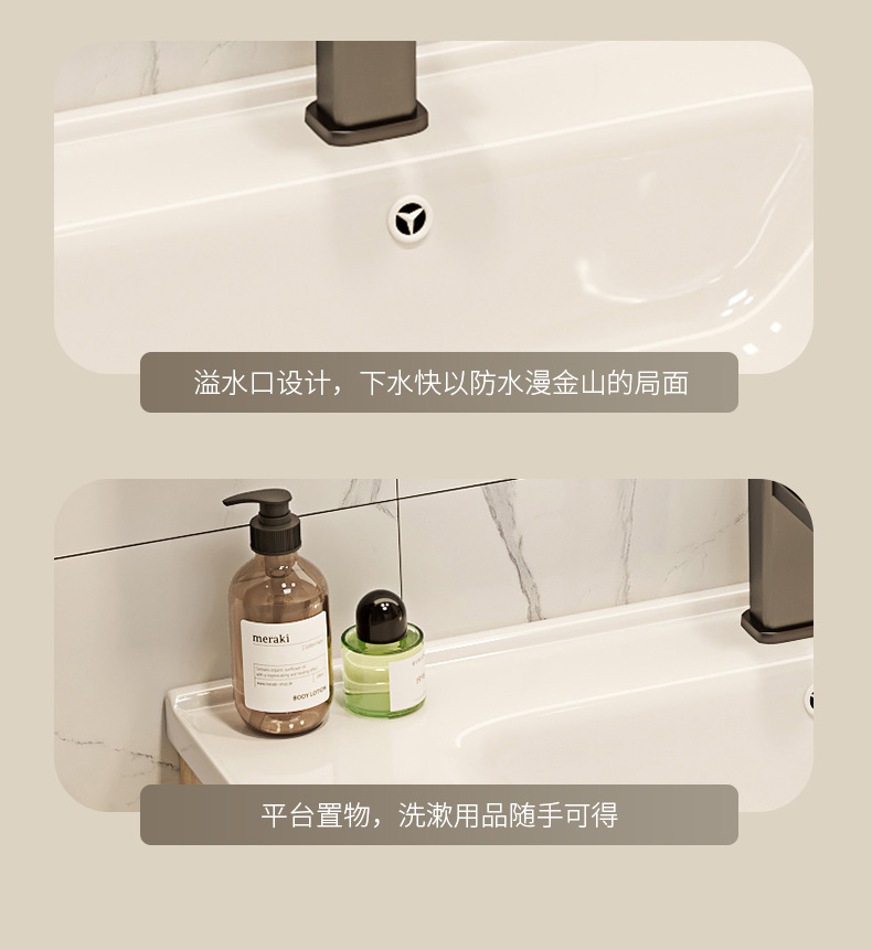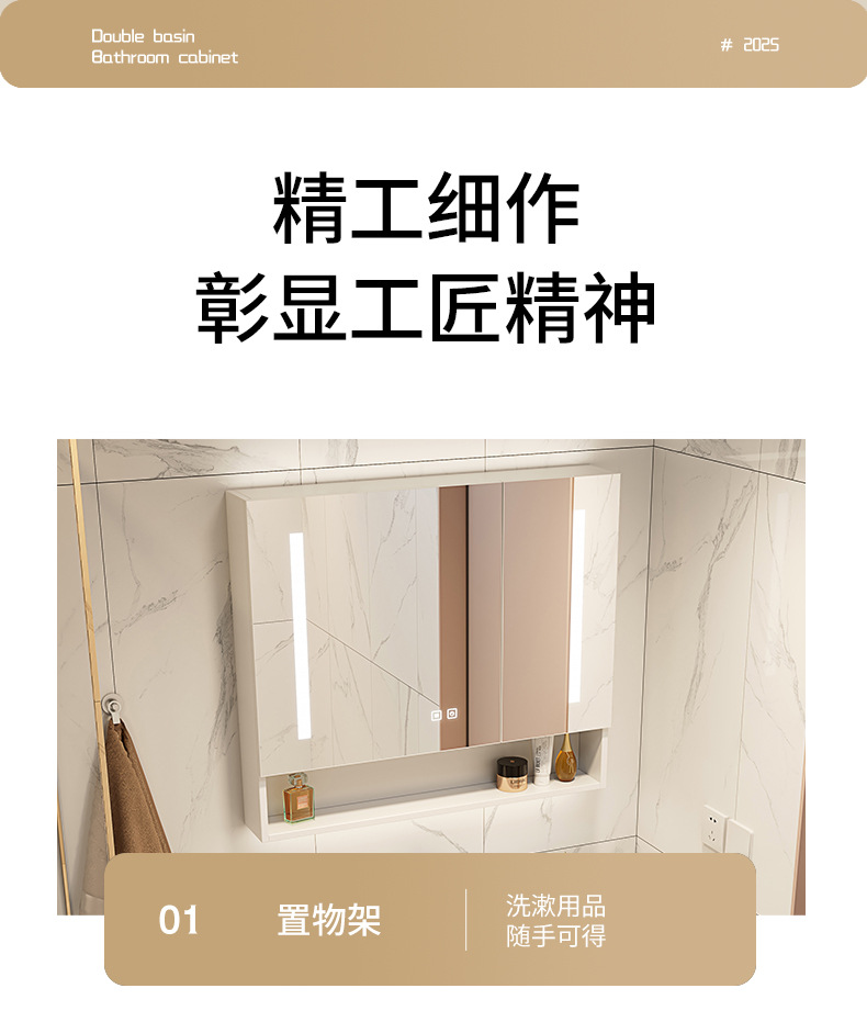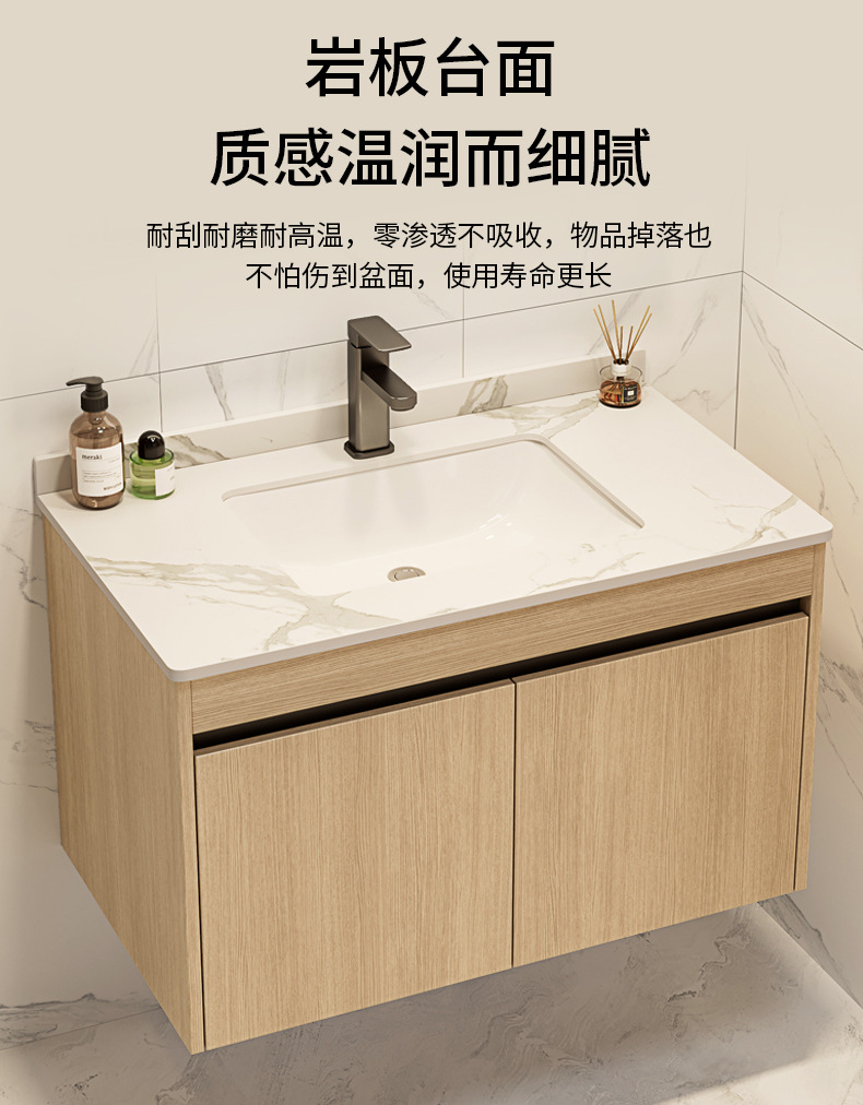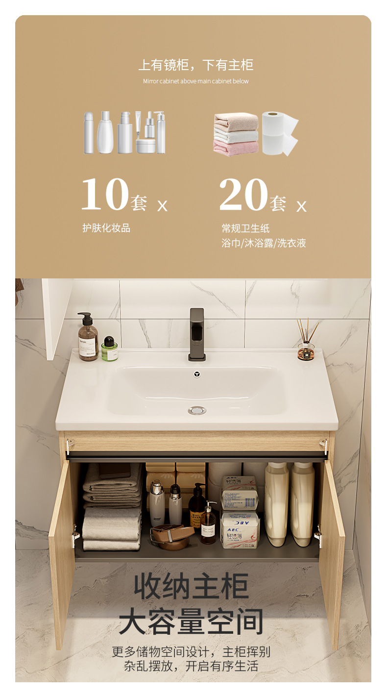 | Atributos | Gabinete de color de madera simple + cuenca de cerámica de alta temperatura + gabinete de lente de almacenamiento inteligente con luz anti-nebble |
