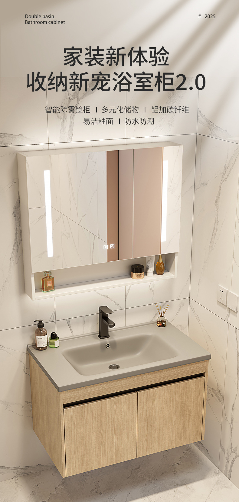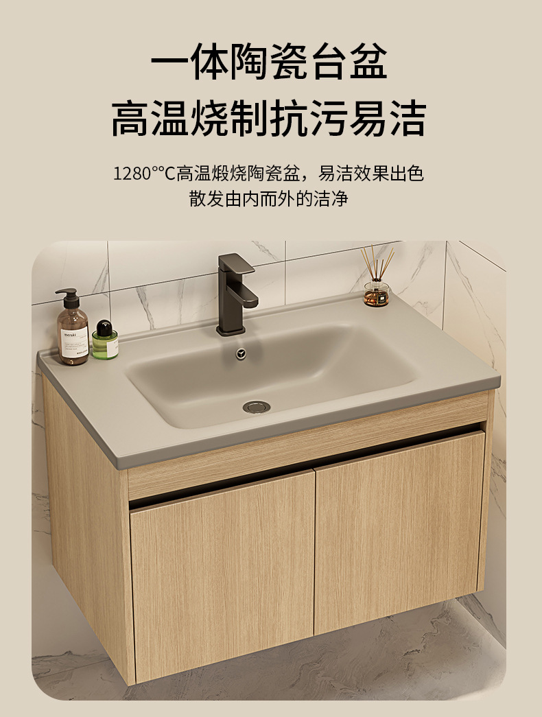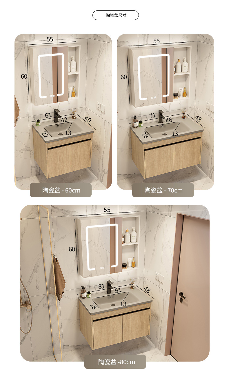 | Atributos | gabinete de color tronco simple + cuenca de cerámica de alta temperatura + gabinete de espejo inteligente de luz anti-nebula |