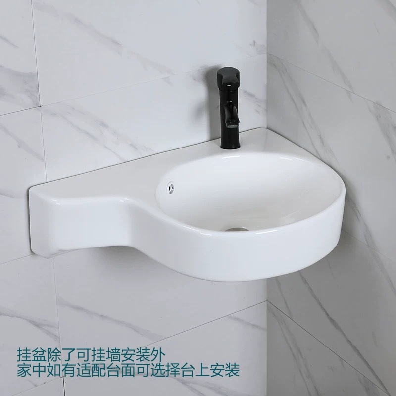Baño pequeño lavabo doméstico esquina colgante de pared cerámica balcón irregular lavabo triángulo único lavabo