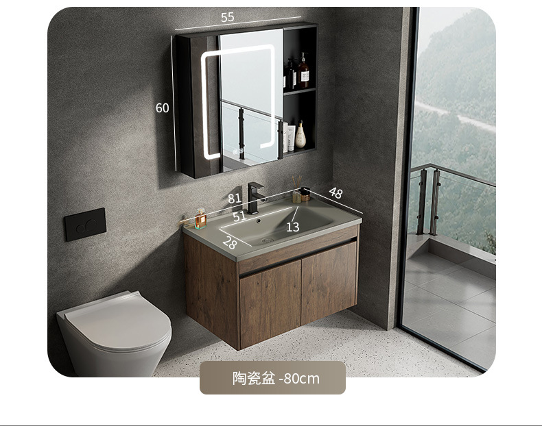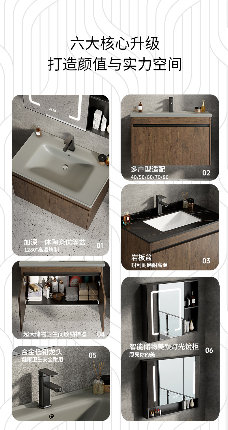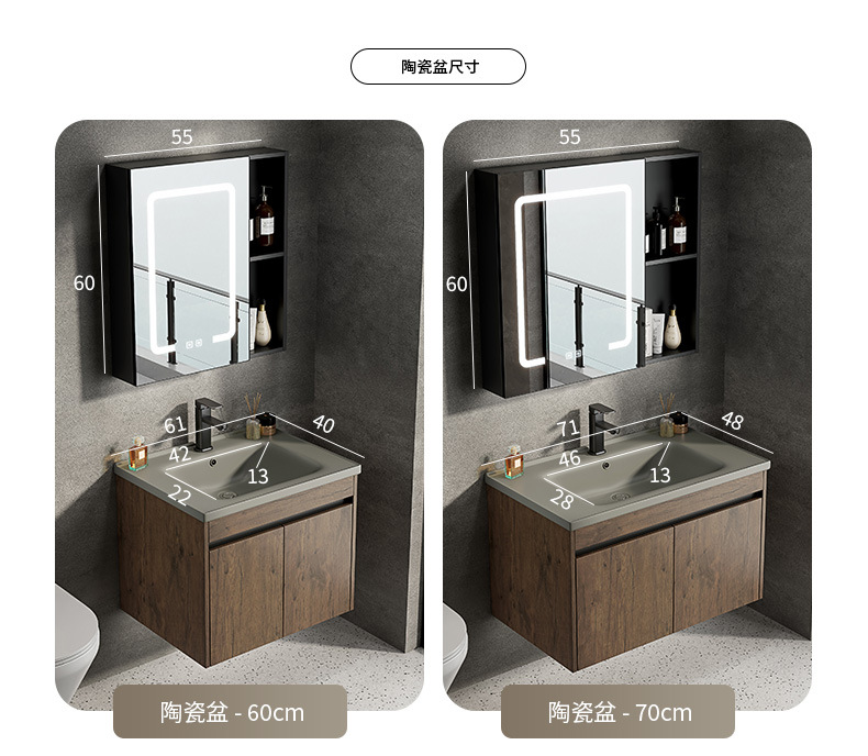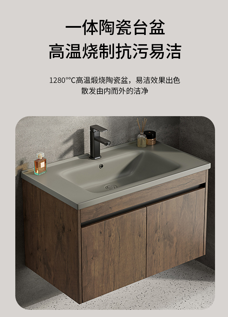 Nórdico de color nuez gabinete de baño comercio exterior todo en cerámica gabinete lavabo pequeño tipo de hotel baño lavado de manos lavado