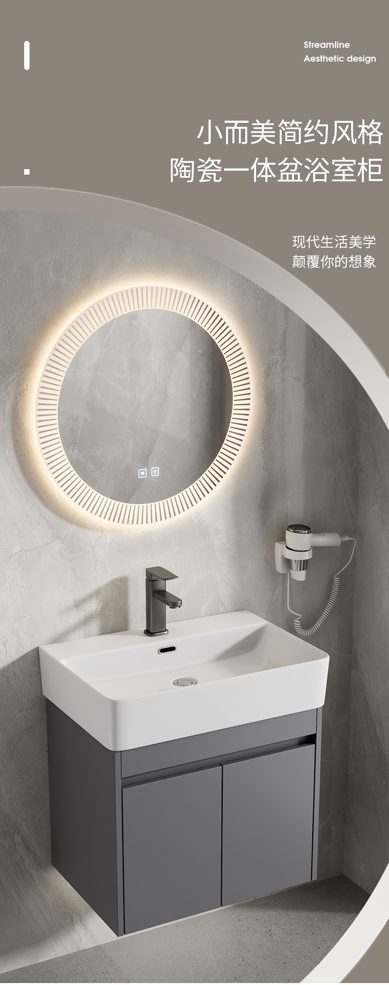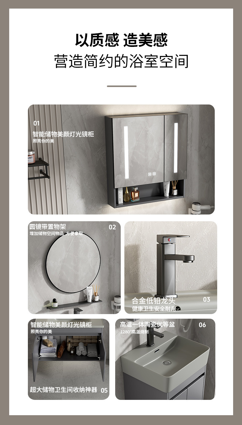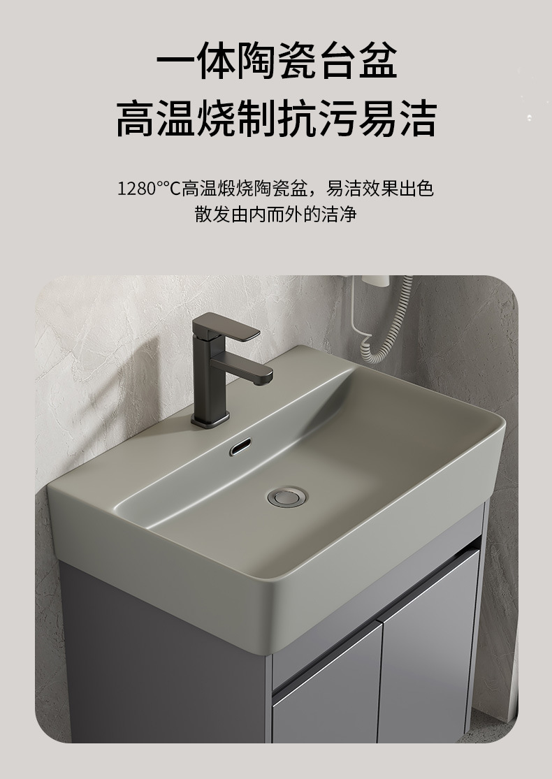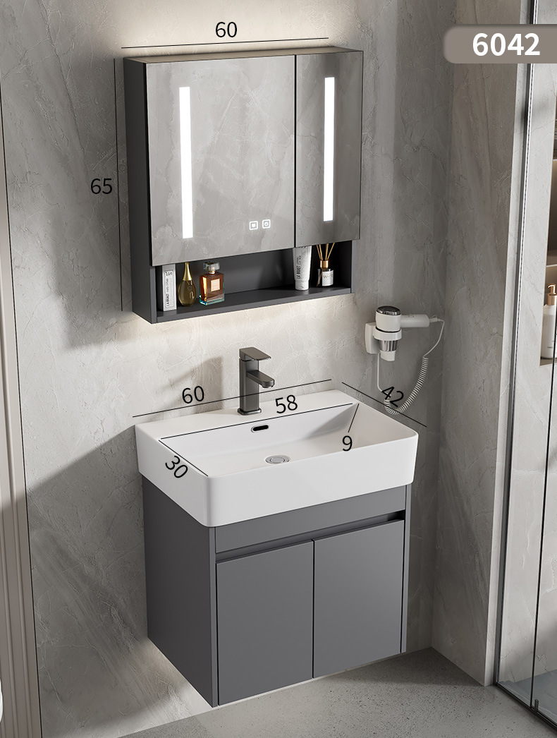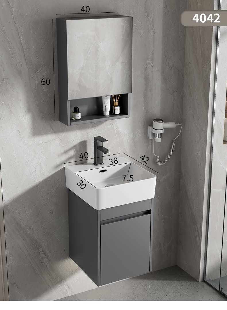 Gabinete de baño de aluminio espacial combinación de cerámica gris lavabo de lavado de mano lavabo comercio exterior pequeño tipo de lavabo ultra estrecho