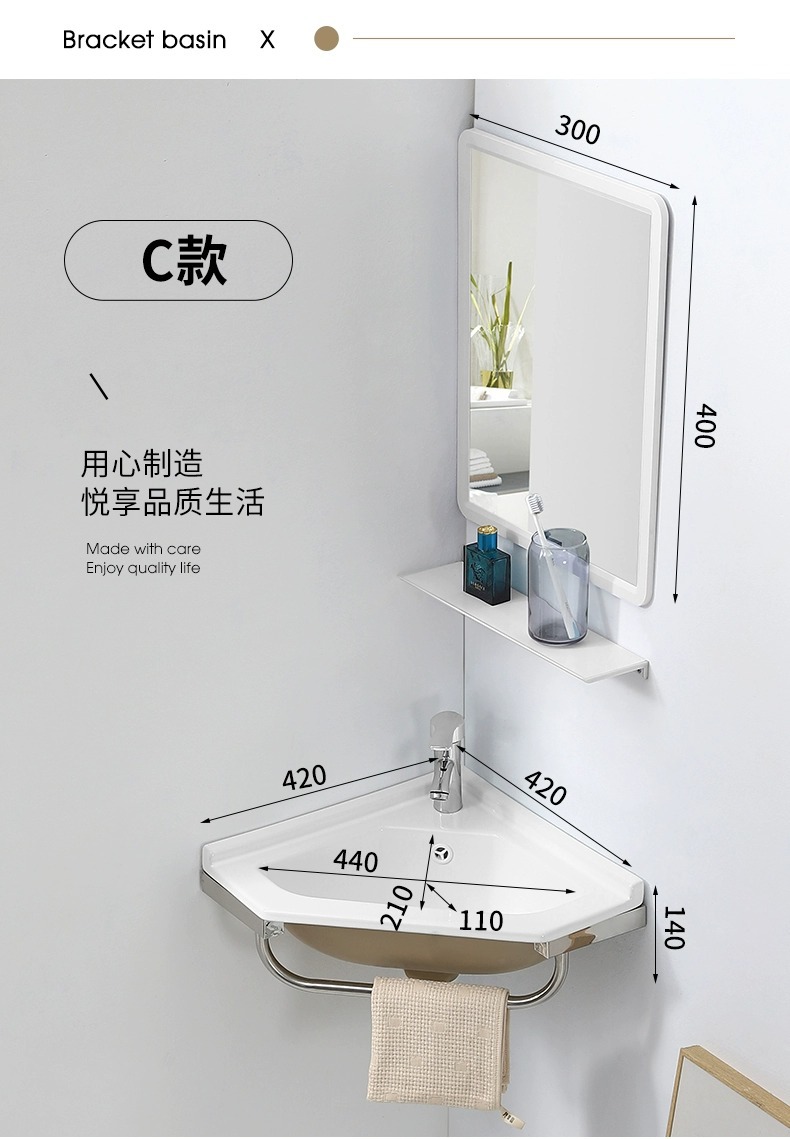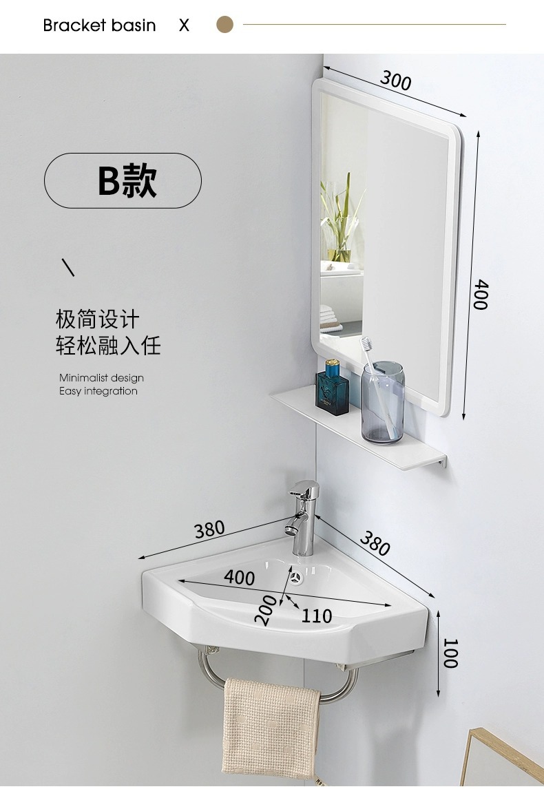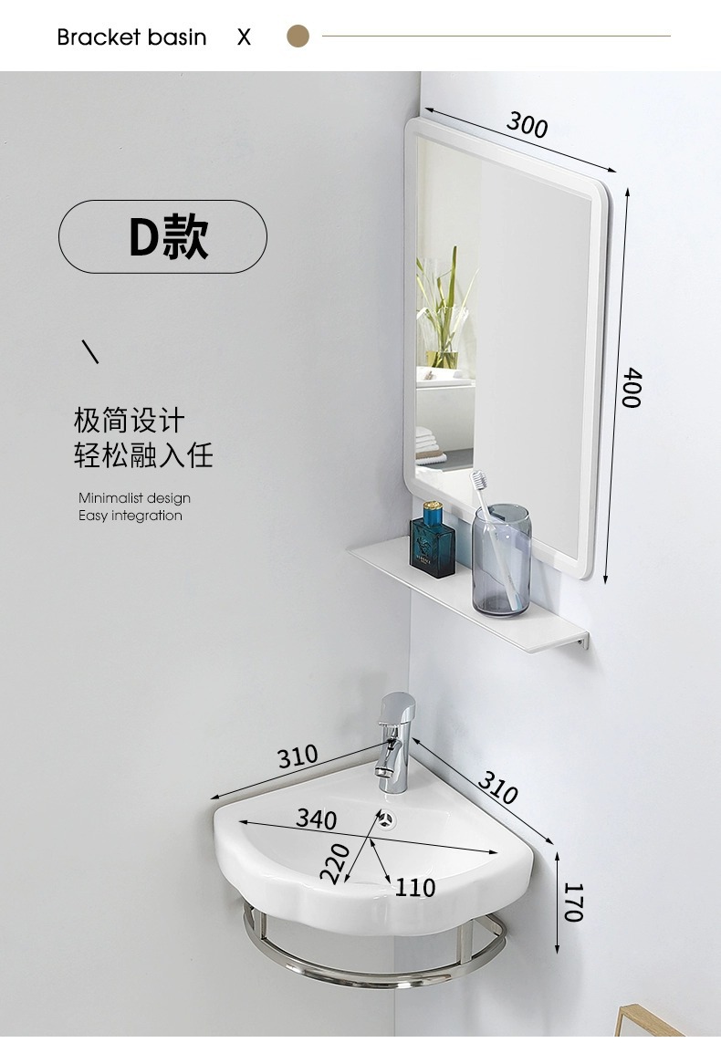 Una gran cantidad de lavabo tipo pared al por mayor gabinete de baño combinación mini lavabo triángulo balcón cerámica simple