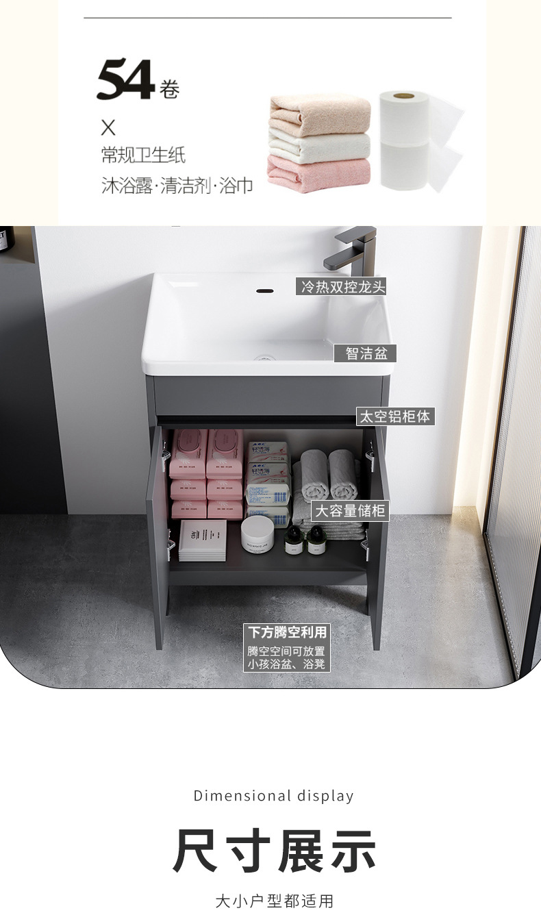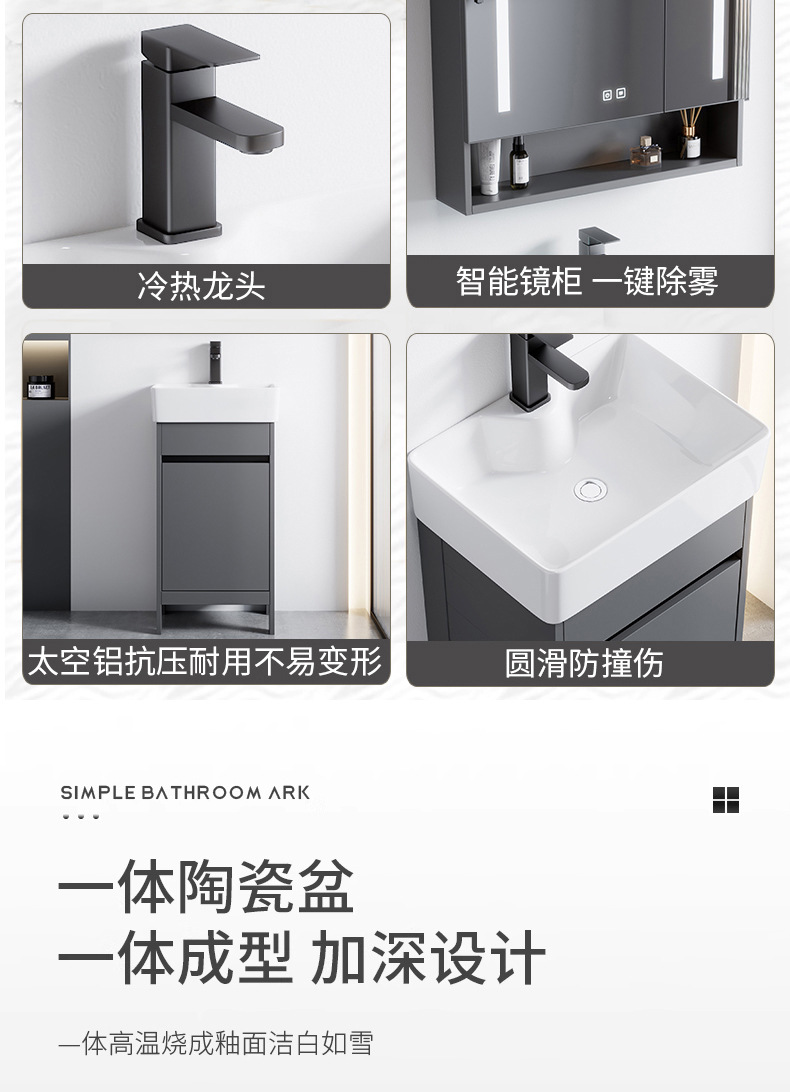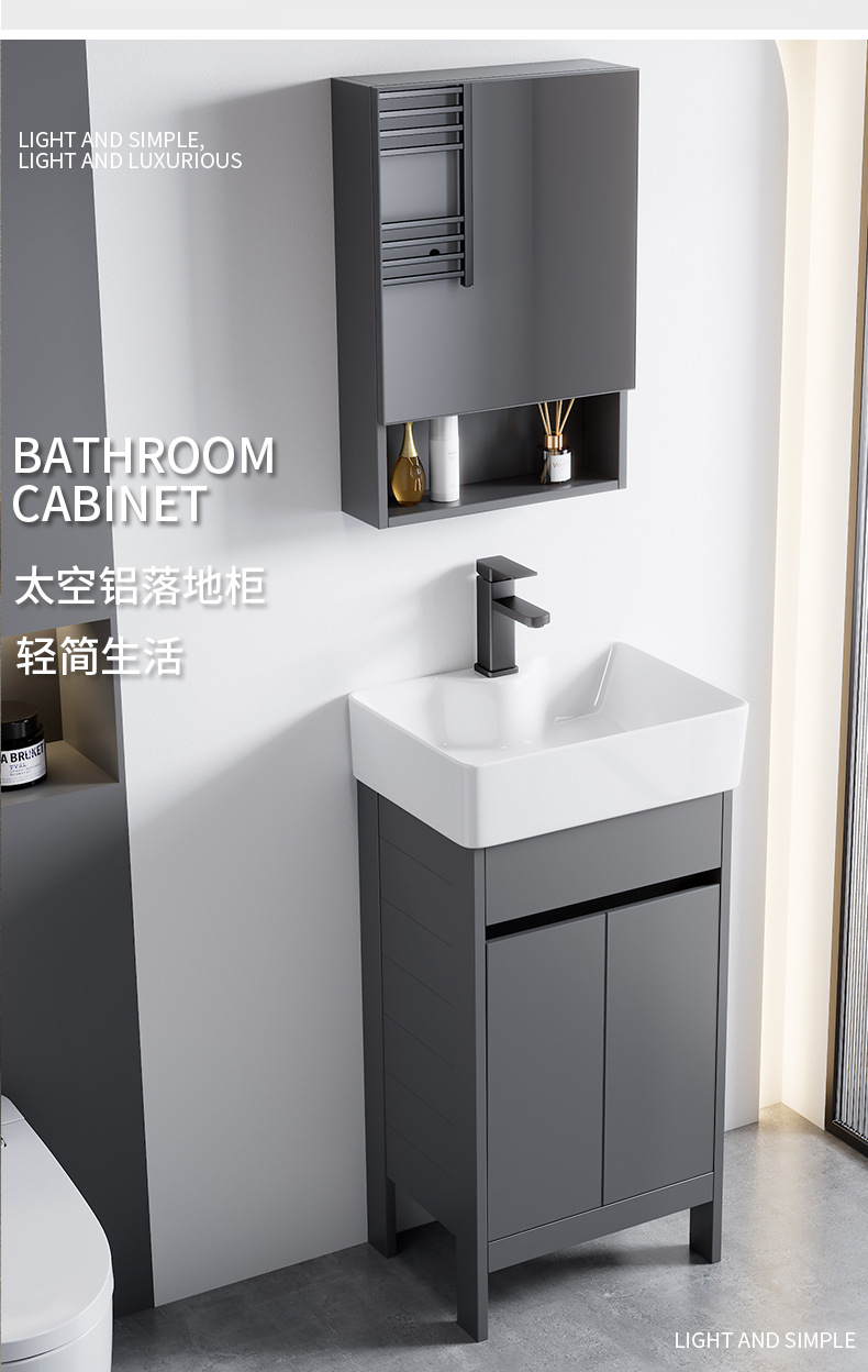 Cerámica integrada lavabo piscina pequeña casa espacio de aluminio tipo piso gabinete de baño combinación lavabo de mano lavabo facial