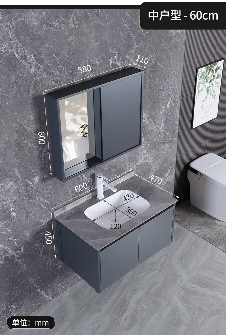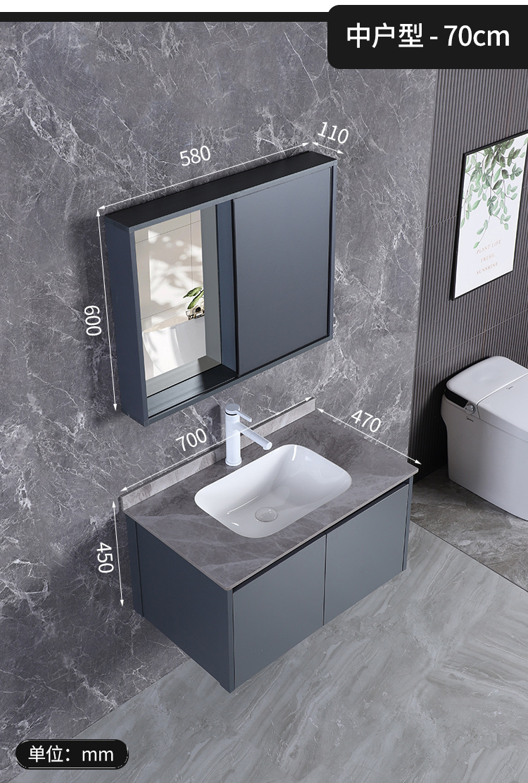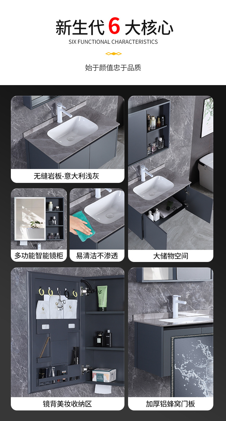 Mezcla de aleación de polietileno de abeja gabinete de baño de hotel lavabo gabinete lavabo de cerámica de pizarra de roca lavabo integrado