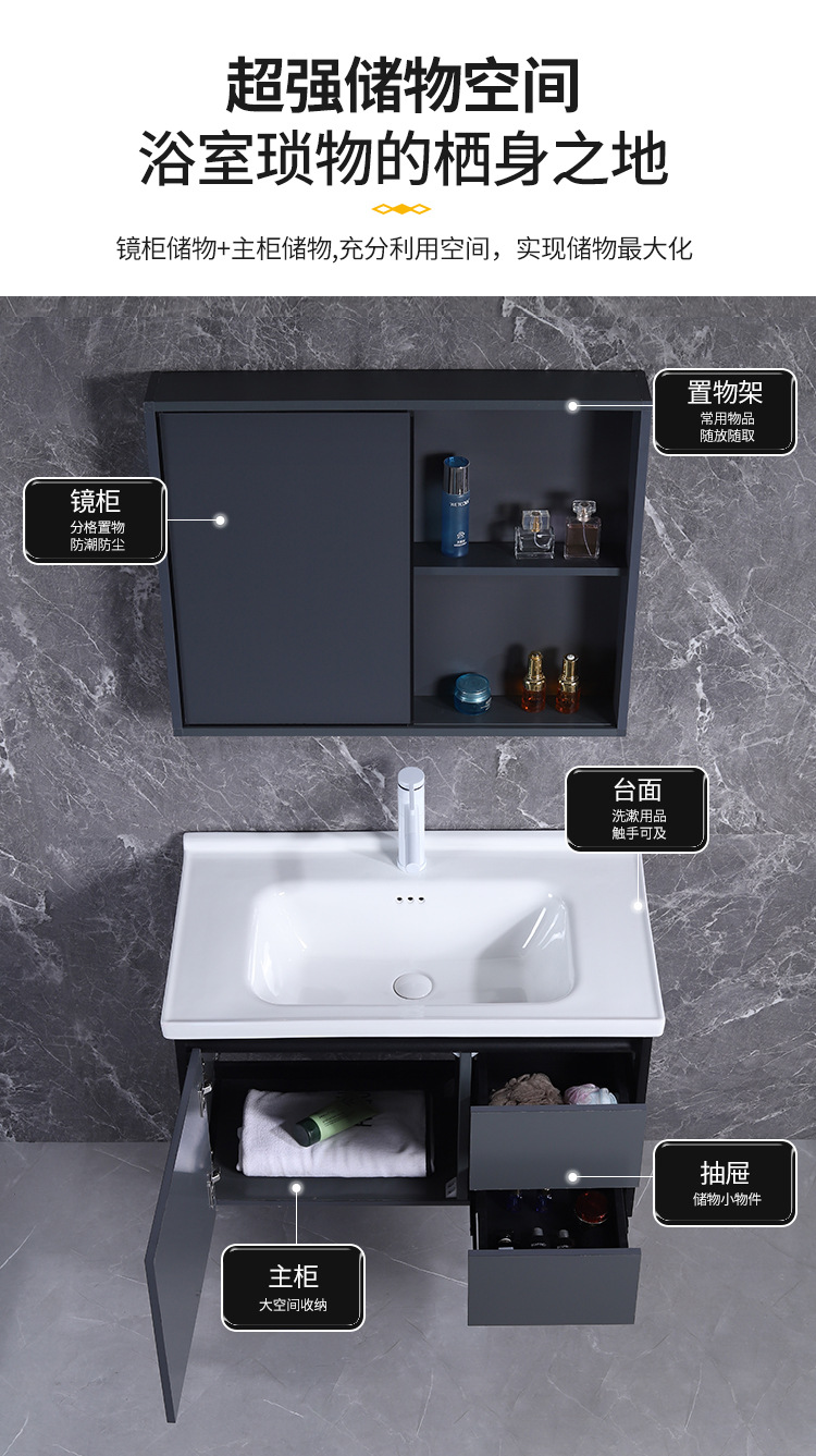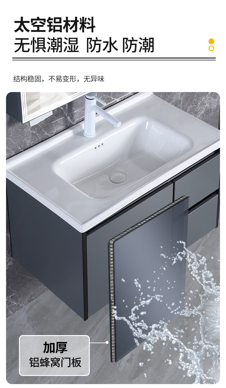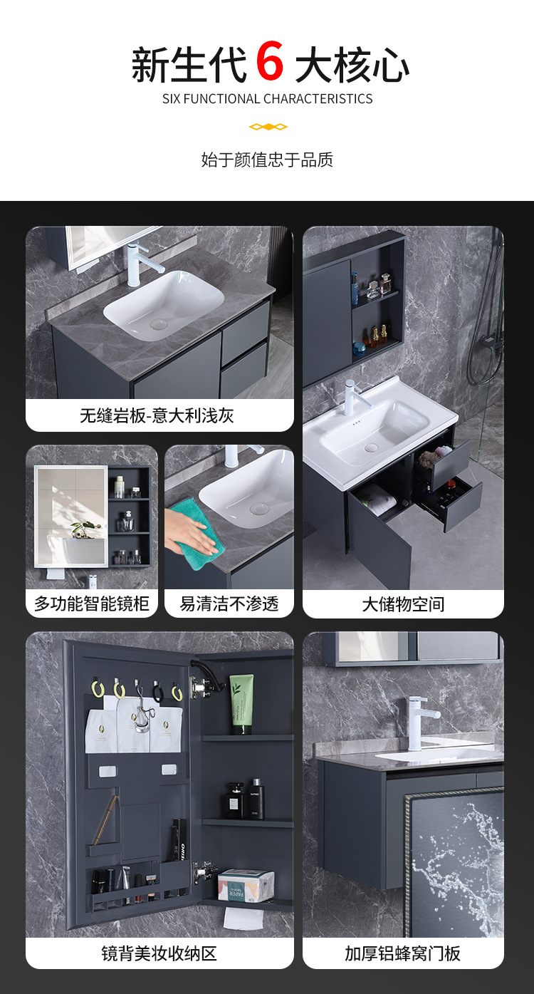 Mezcla de aleación de polietileno de abeja gabinete de baño de hotel lavabo gabinete lavabo de cerámica de pizarra de roca lavabo integrado