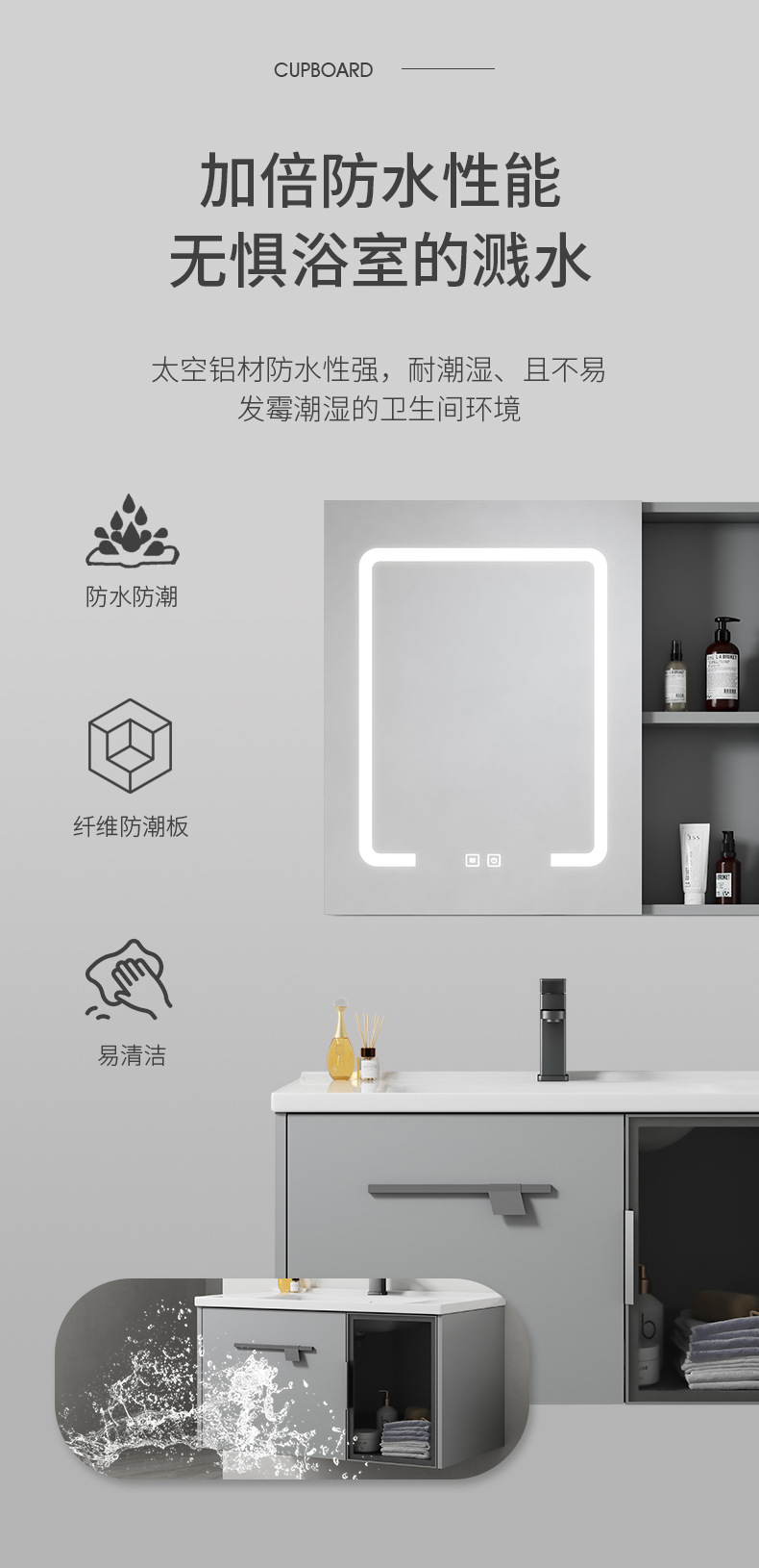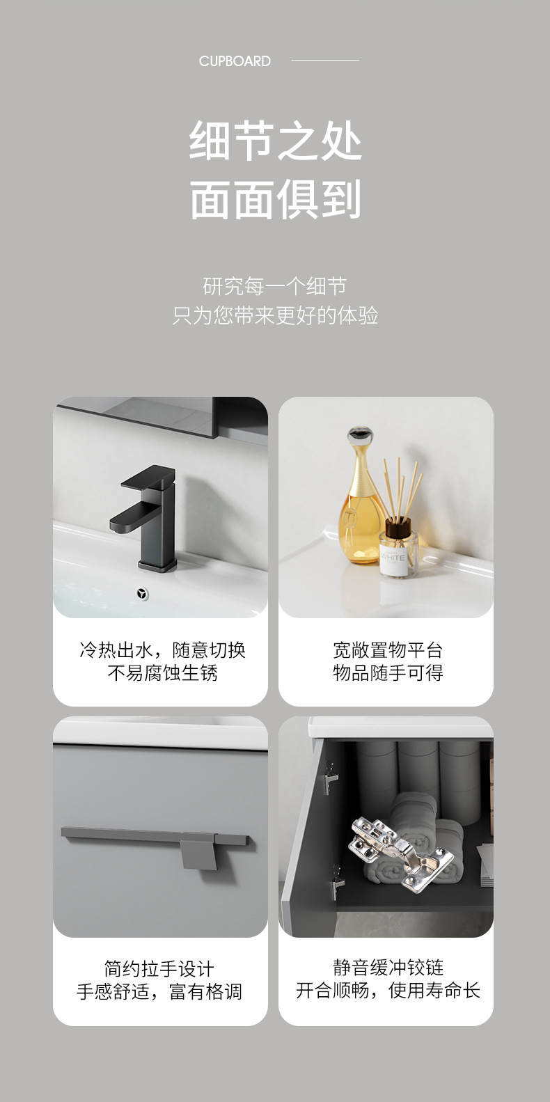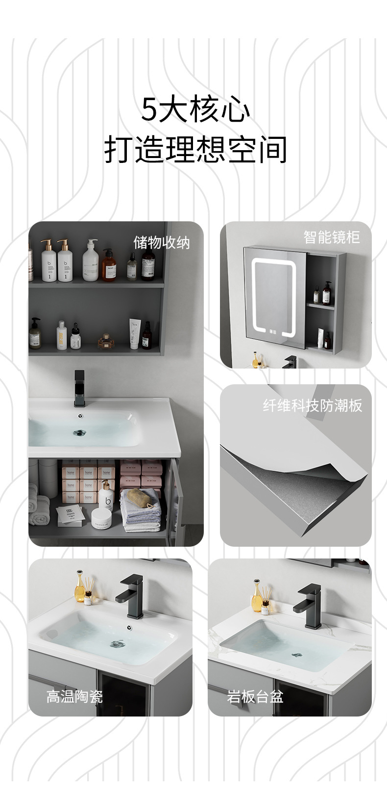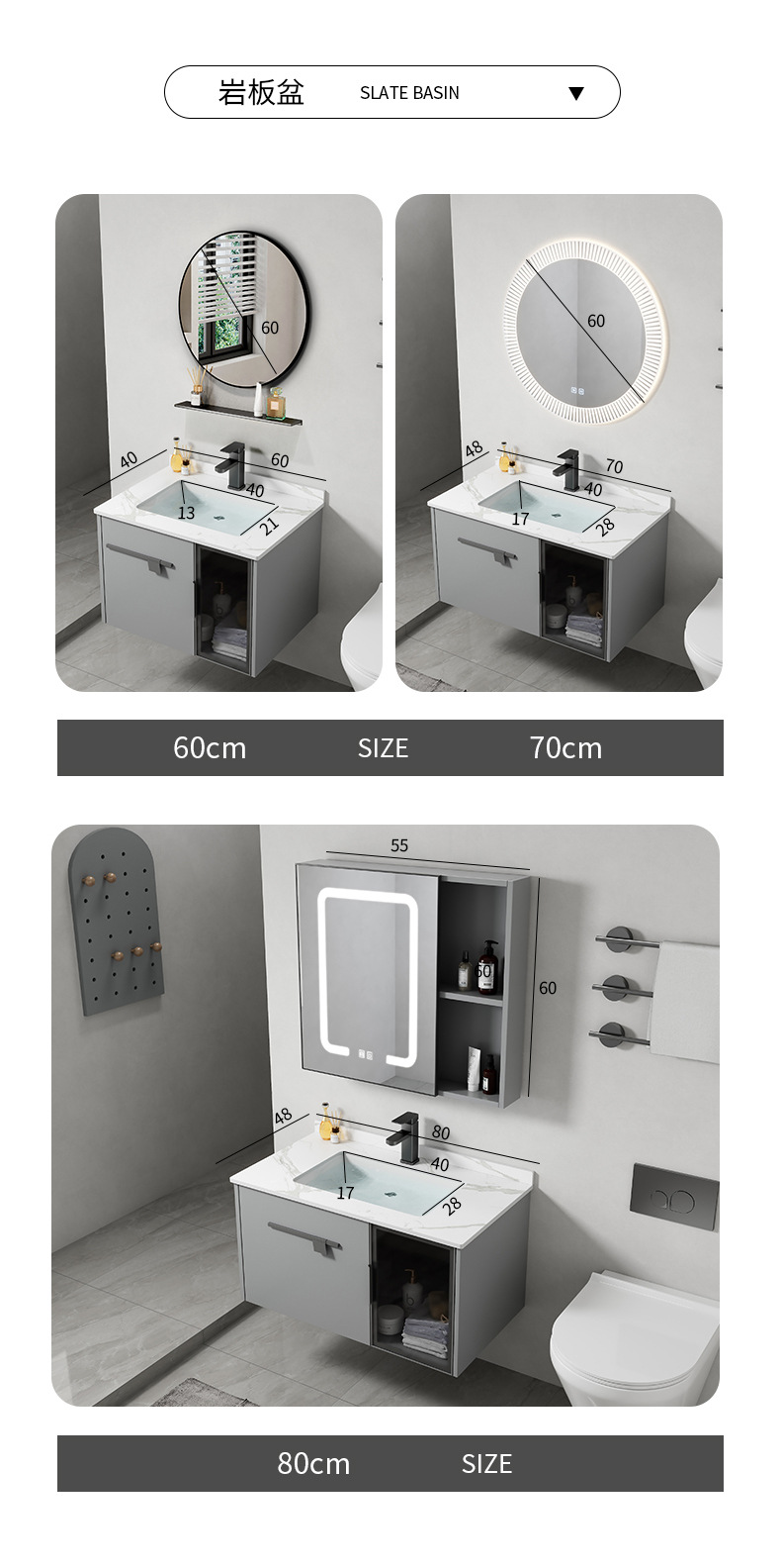 gabinete de baño de tablero de roca de aluminio espacial combinación de lavabo de inodoro de casa pequeña lavabo de lavabo de baño integrado lavabo