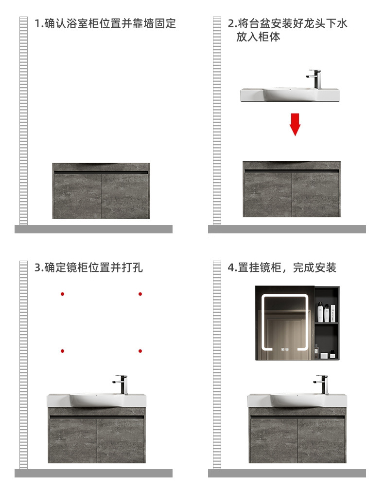 | Forma combinada | Un solo gabinete, incluido el gabinete lateral, incluido el lavabo de apoyo, incluido el gabinete de espejo |