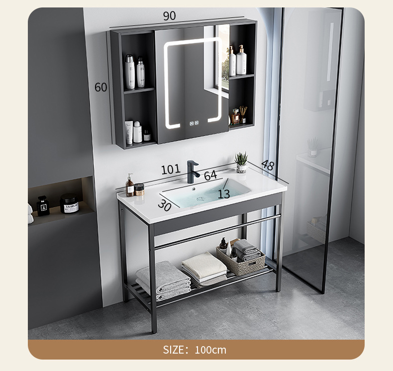 100 gabinete de cuenca de cerámica + gabinete de espejo inteligente